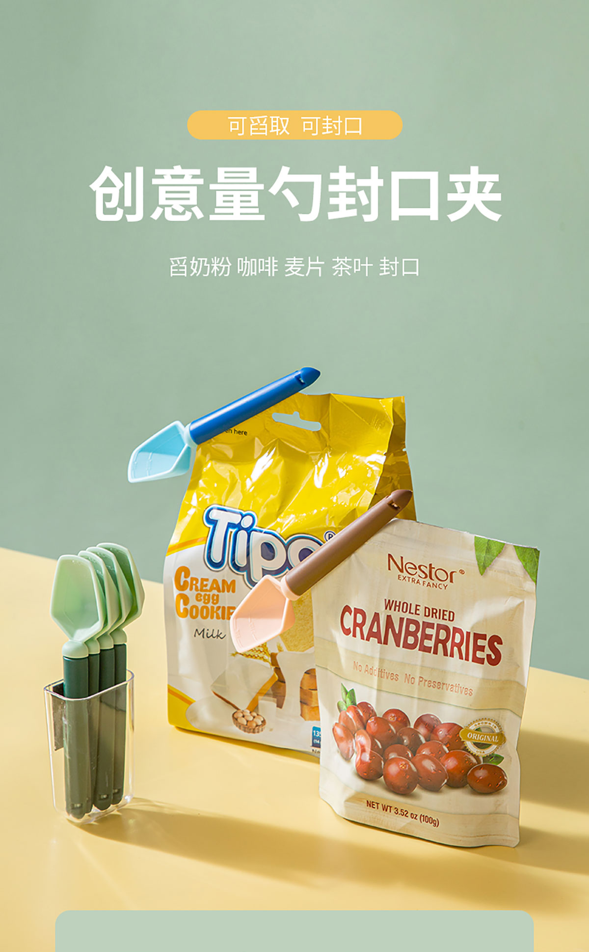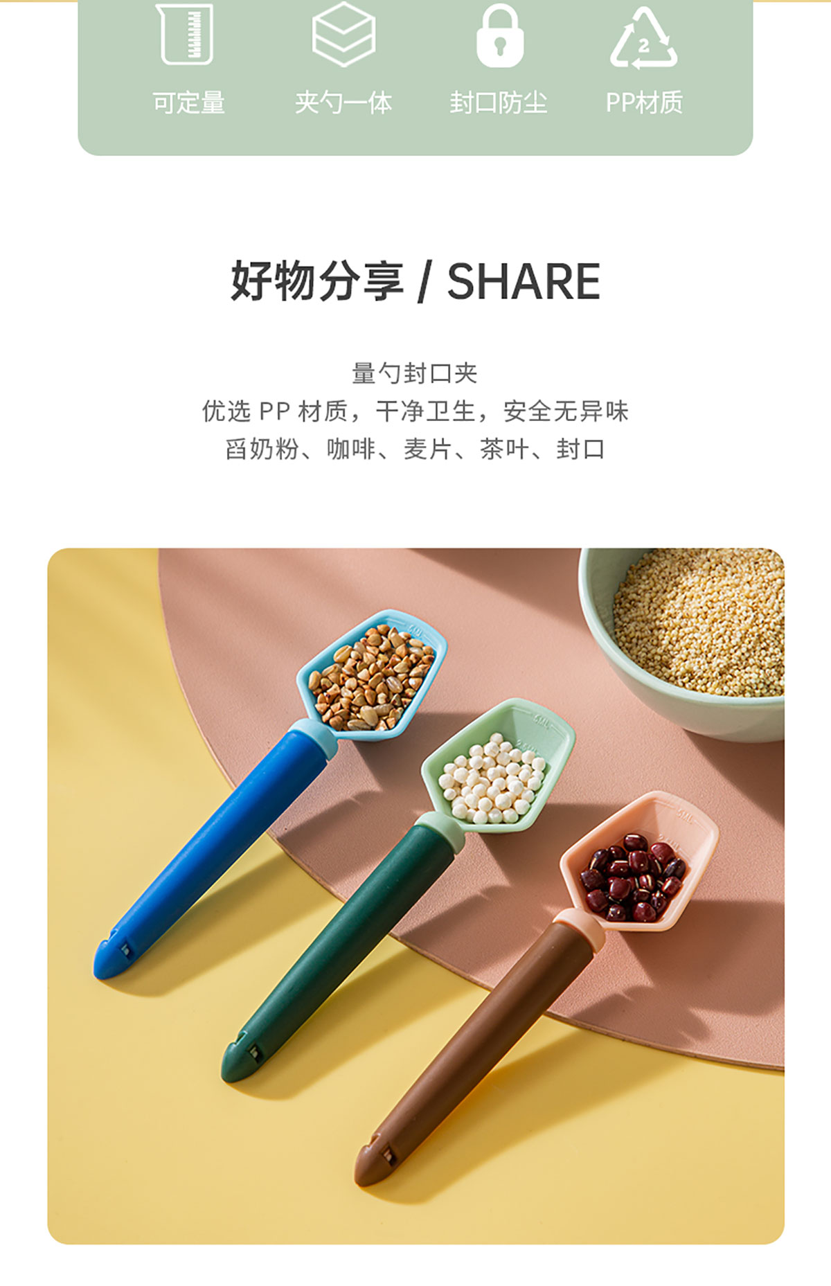 量勺封口夾 粉色/藍色/綠色款