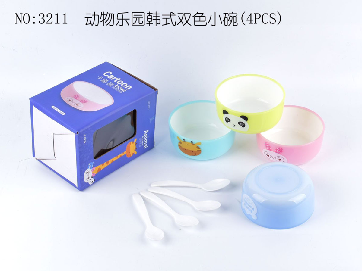 動(dòng)物樂園韓式雙色大碗(4pcs)(贈(zèng)4pcs湯匙)
