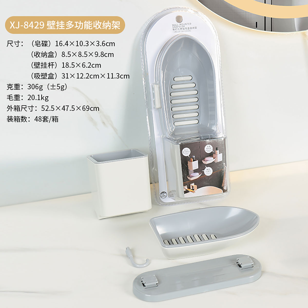 Size: 單個產品:85*85*98mm 164*103*36mm 壁掛桿:185*62mm