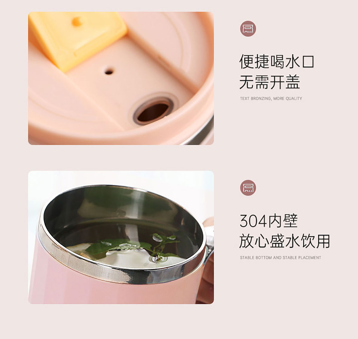 400ml馬卡龍翻扣304不銹鋼馬克杯(帶手柄鍍銀)