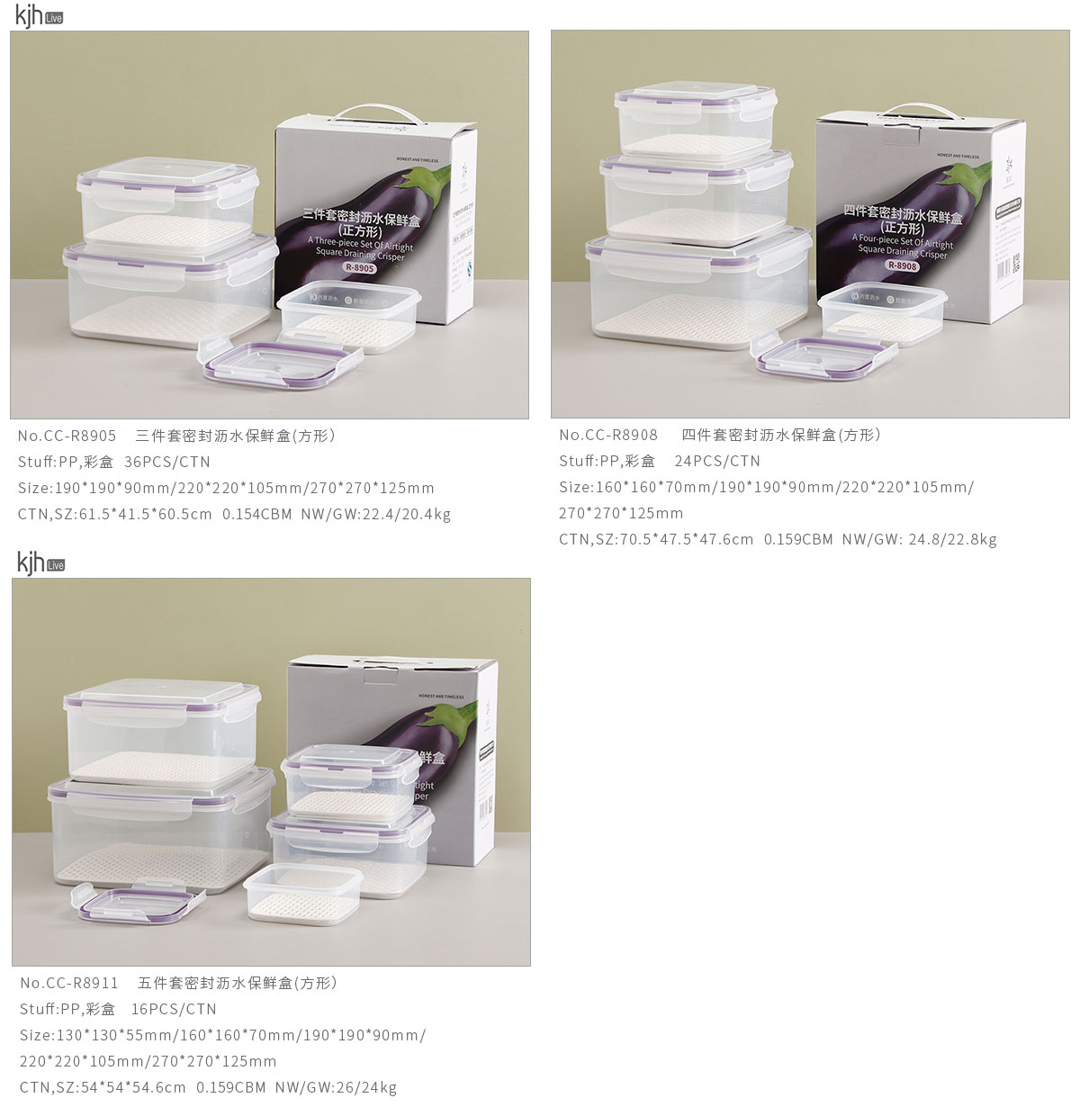 三件套/四件套/五件套密封瀝水保鮮盒(方形)