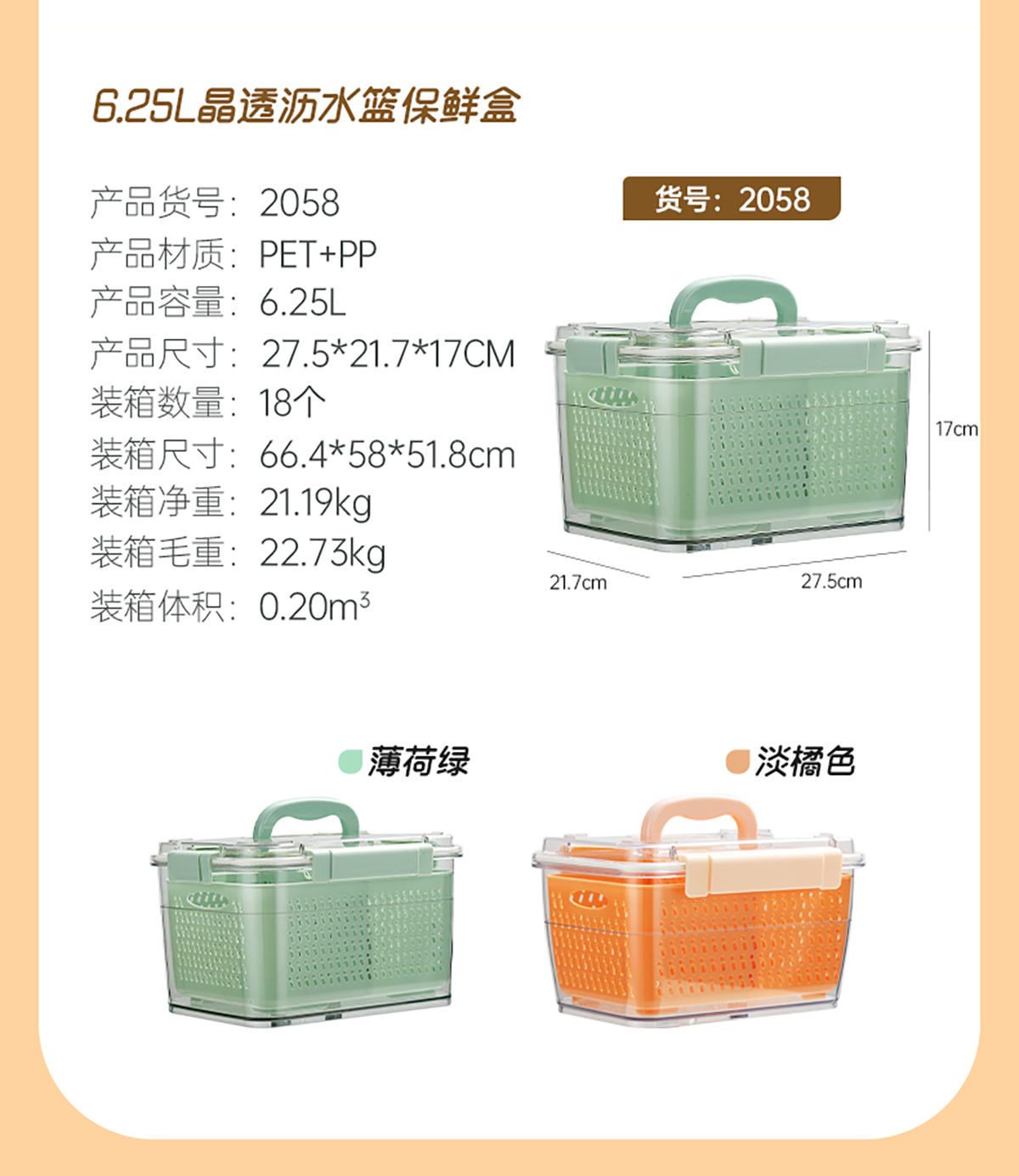 晶透瀝水籃保鮮盒(2.72L/6.25L)2023新色