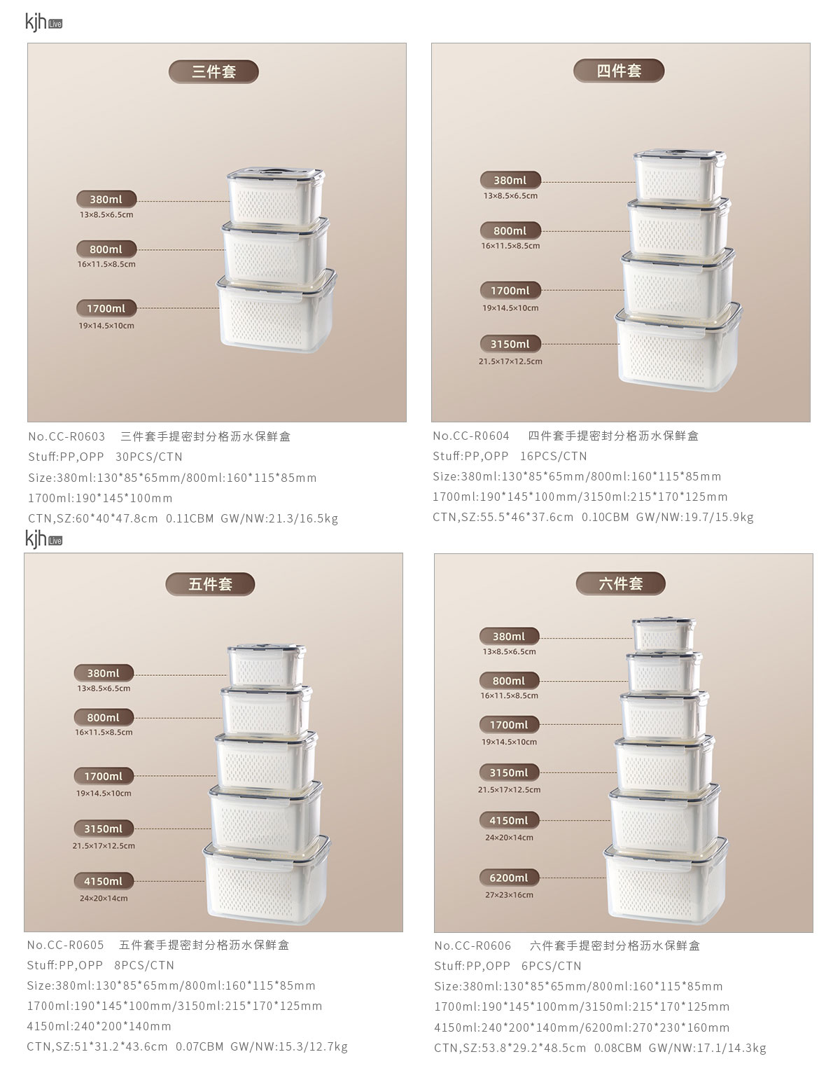 三件套/四件套/五件套/六件套/七件套/九件套/十一件套手提密封分格瀝水保鮮盒