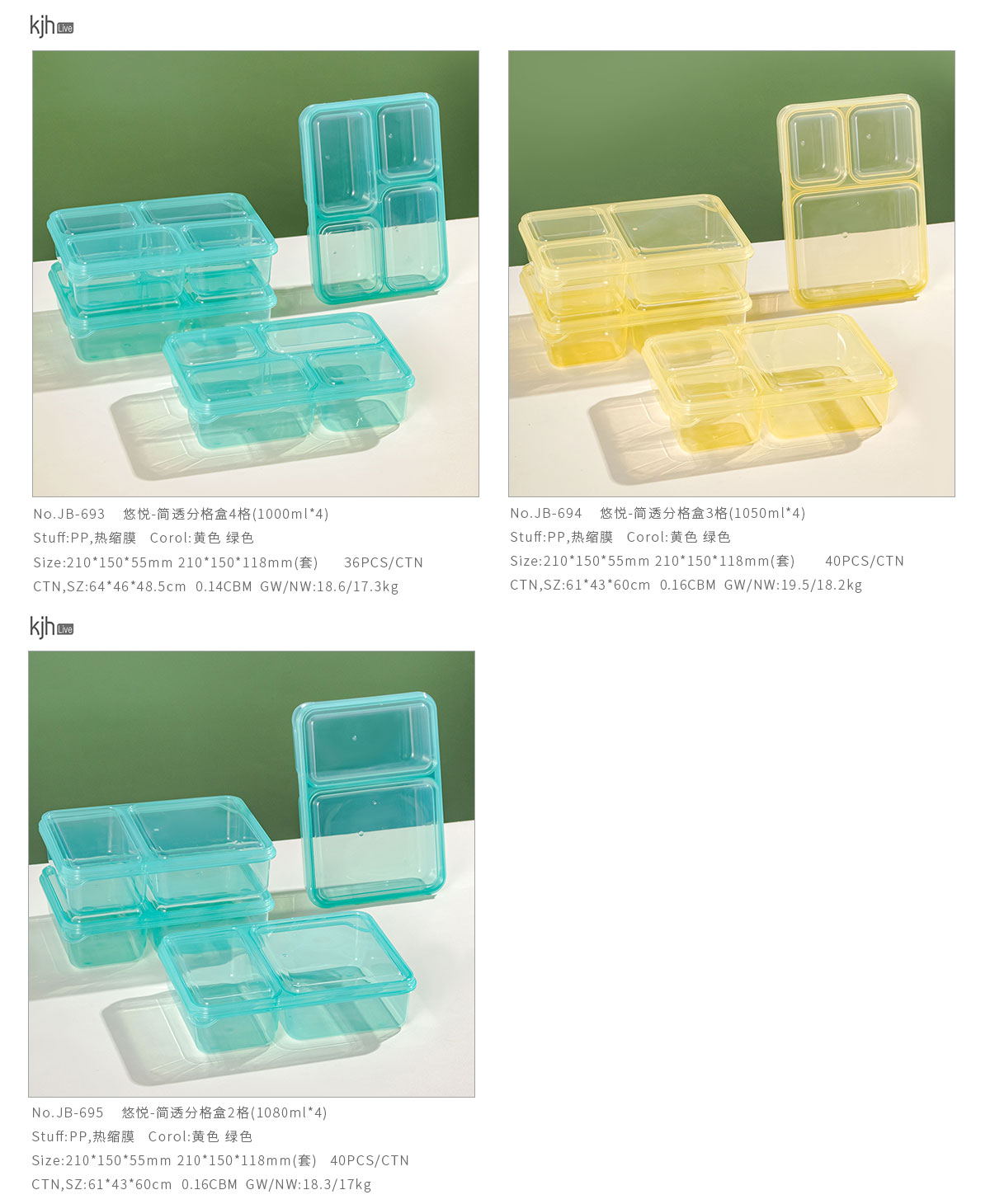 JB-694(3格):210*150*55mm 210*150*118mm(套)