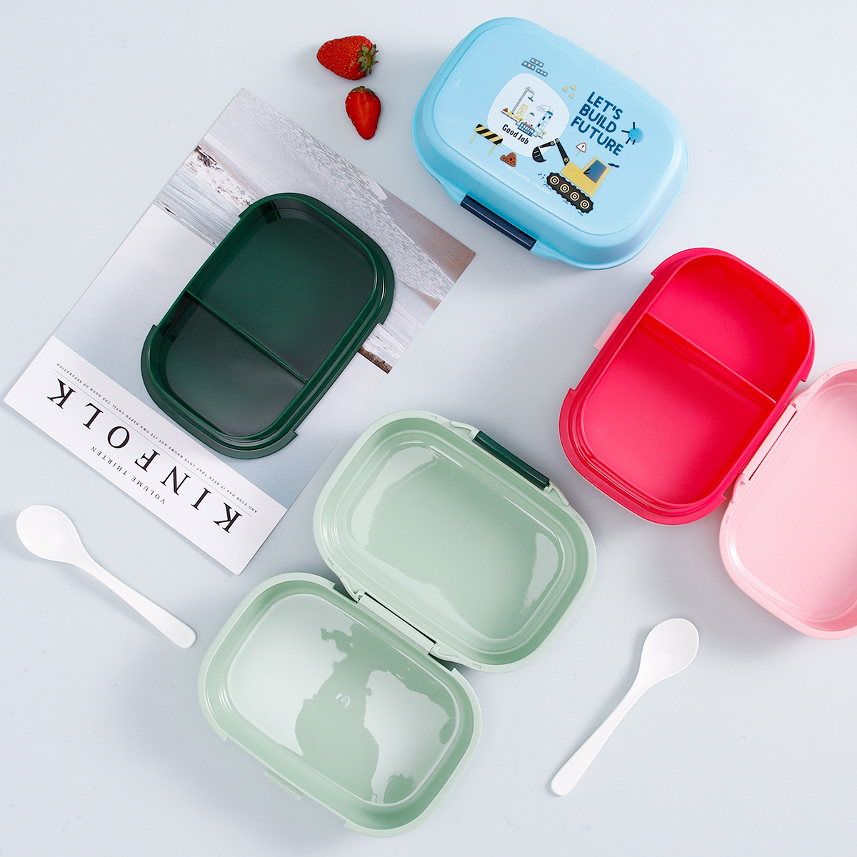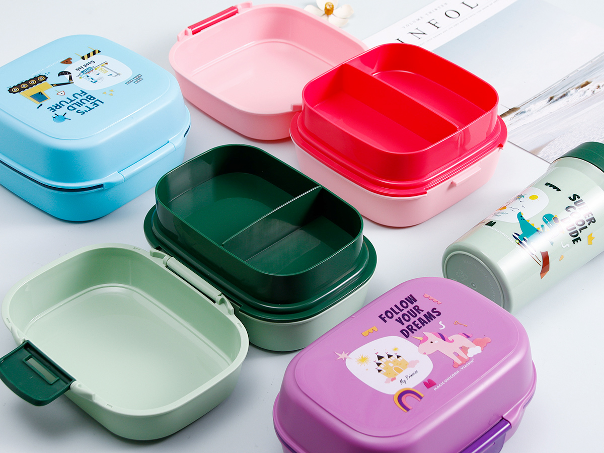 童彩翻蓋便當(dāng)盒+運(yùn)動(dòng)水壺套裝(長方形/正方形1000ml+水杯350ml)