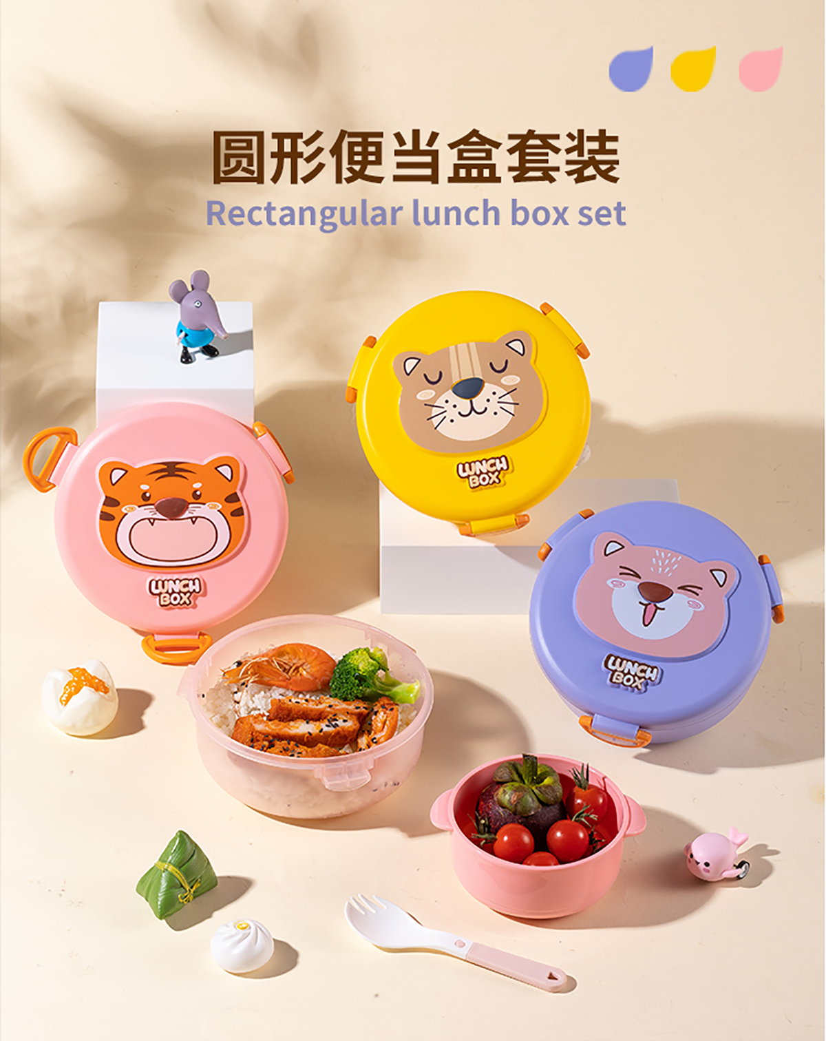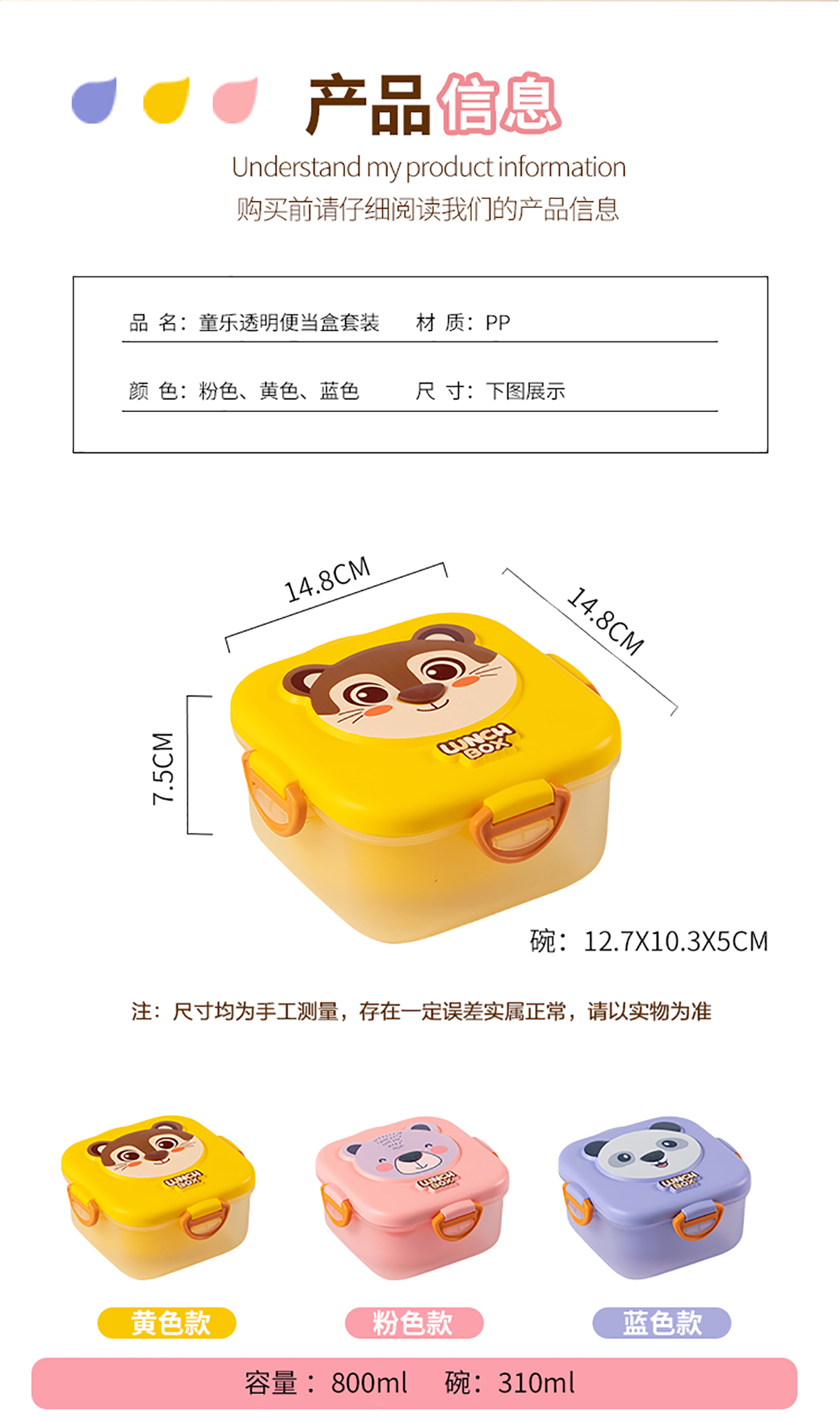 童樂(lè)透明長(zhǎng)方形/圓形/正方形便當(dāng)盒套裝