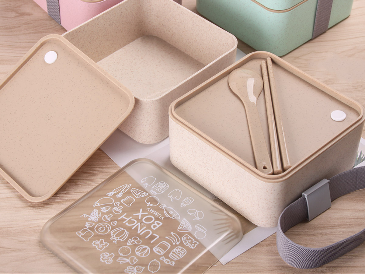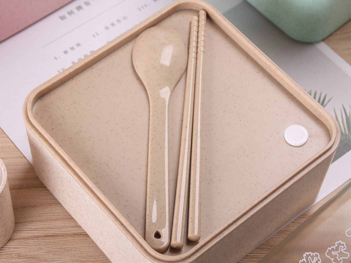 麥秸稈透明蓋方形飯盒