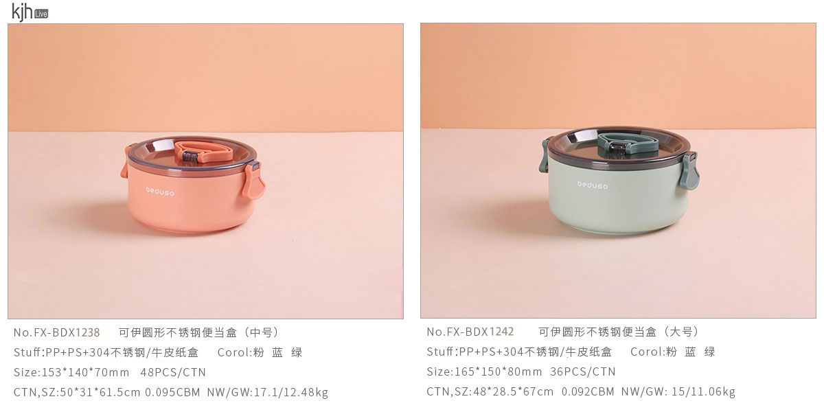可伊圓形不銹鋼便當(dāng)盒(中號(hào)/大號(hào))