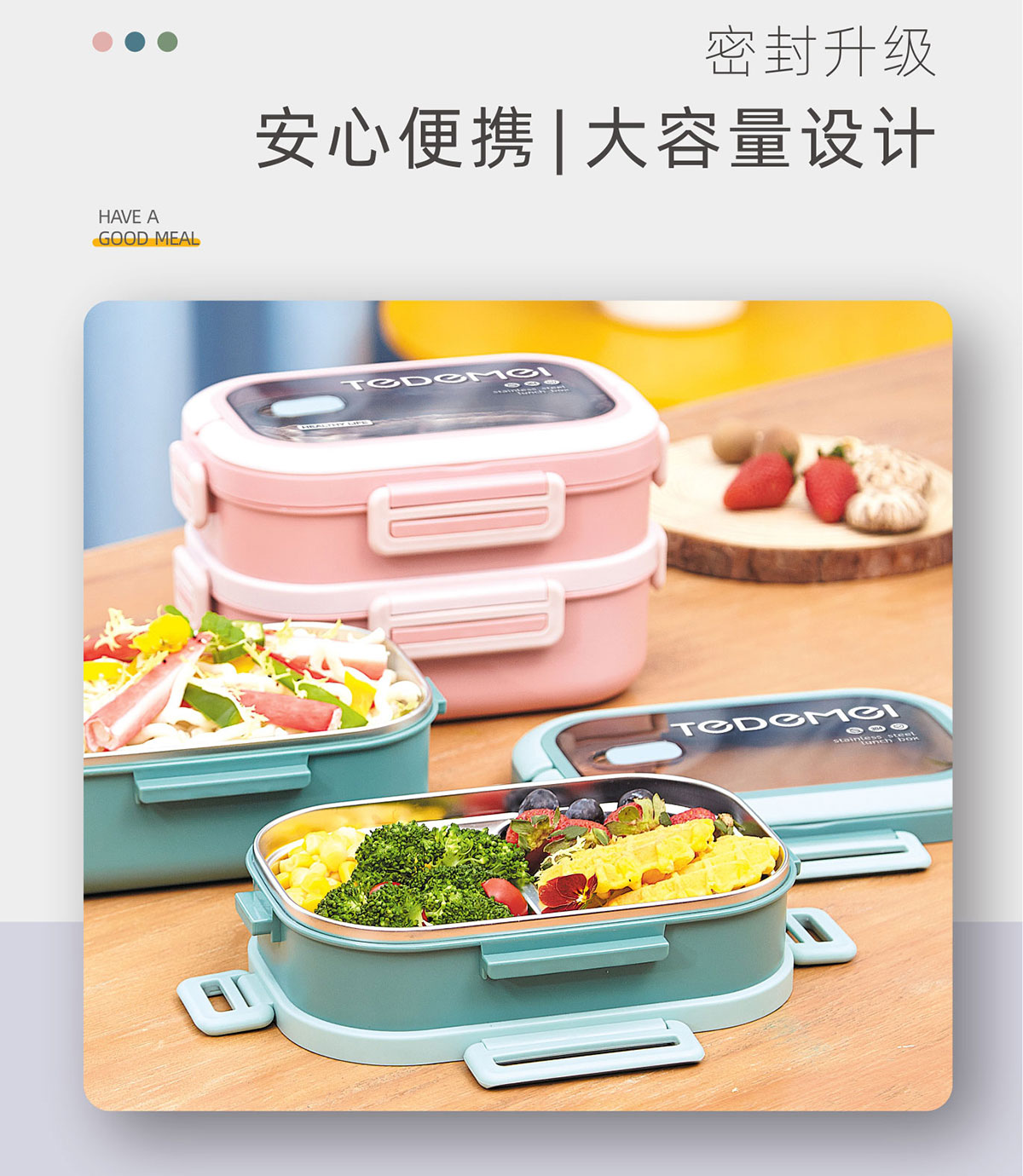 長方形不銹鋼餐盒(單層/雙層/三層)