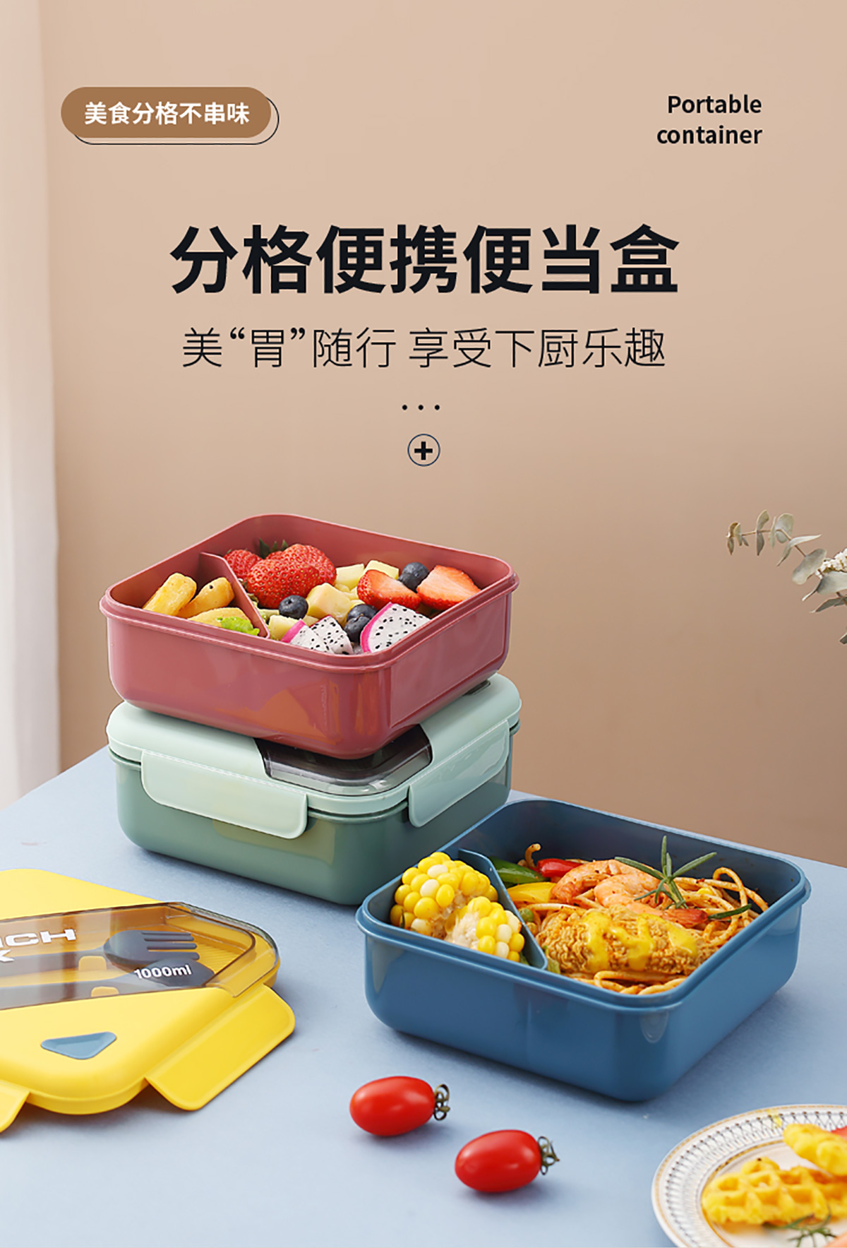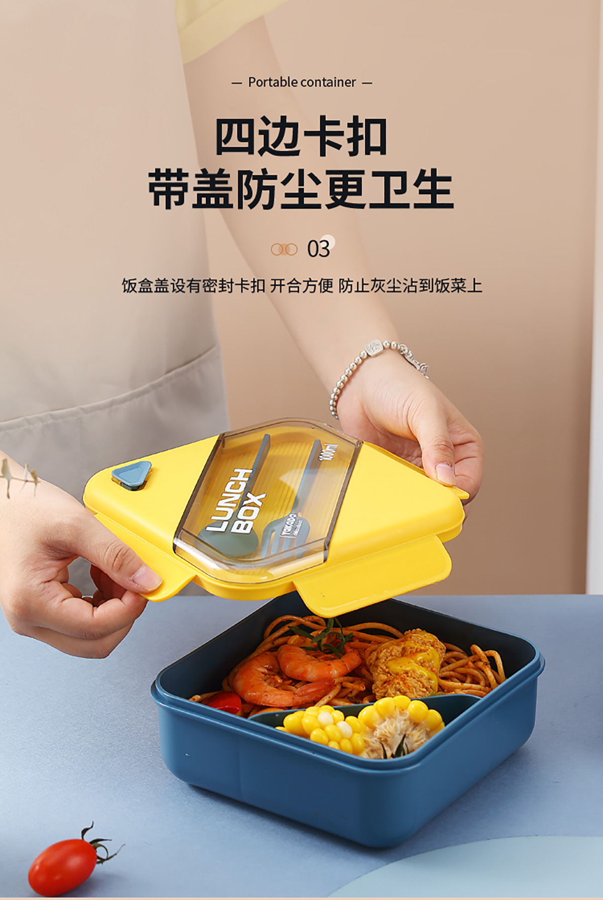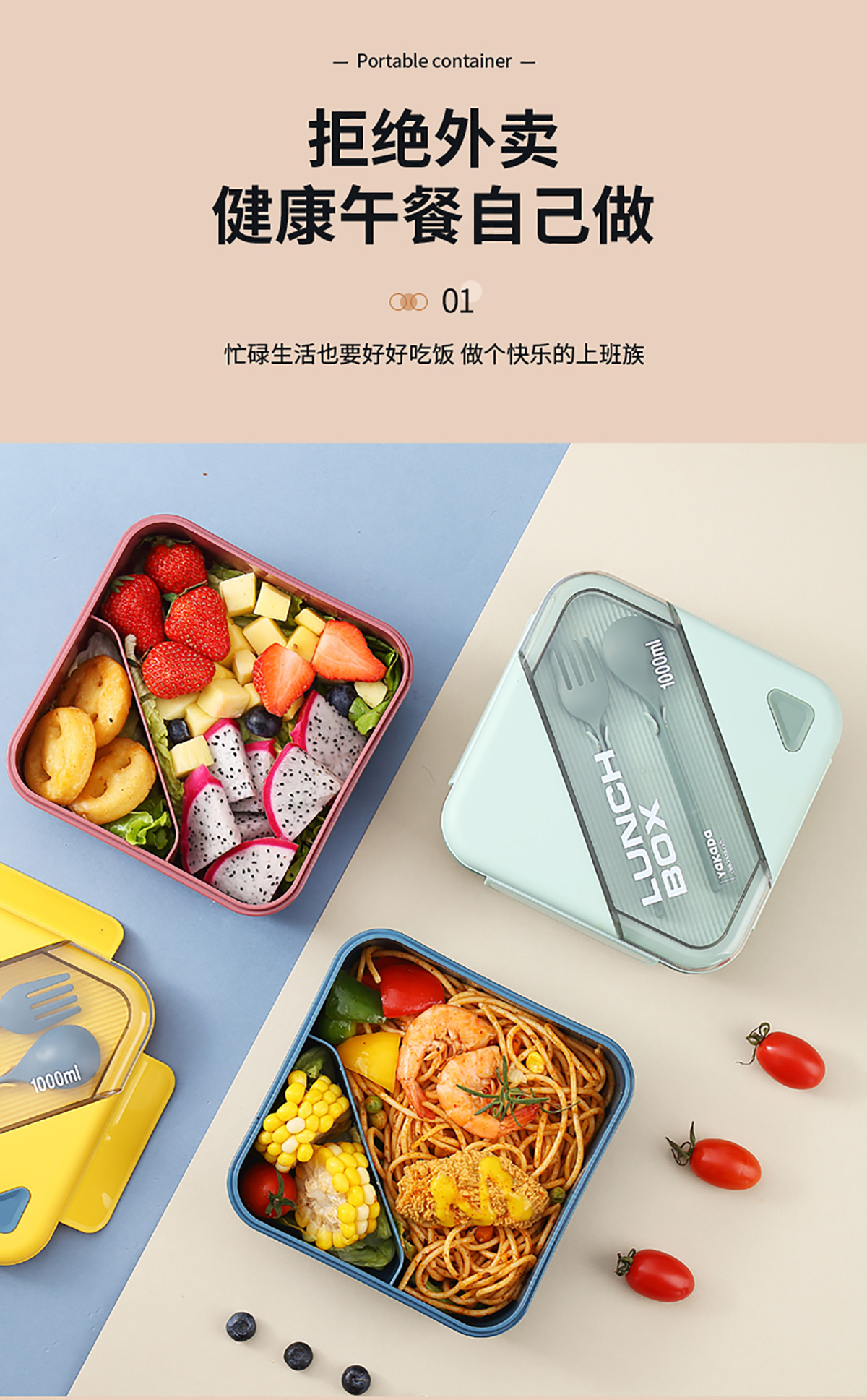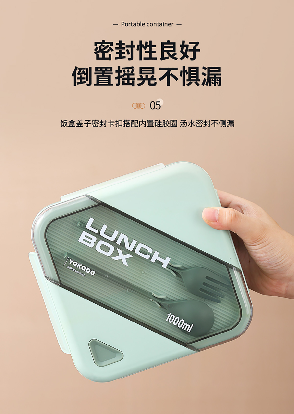 四方長(zhǎng)條透明蓋飯盒1000ml