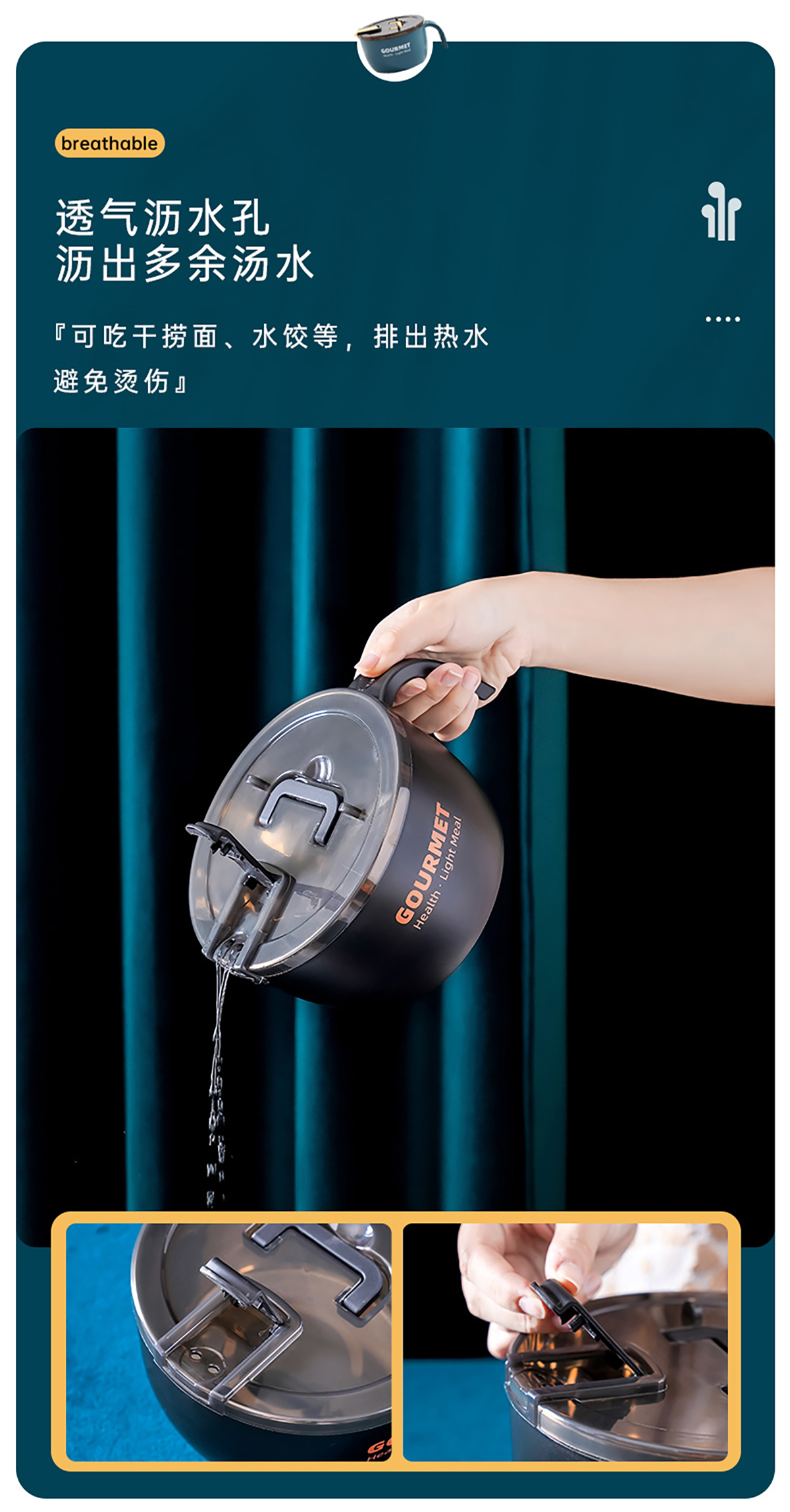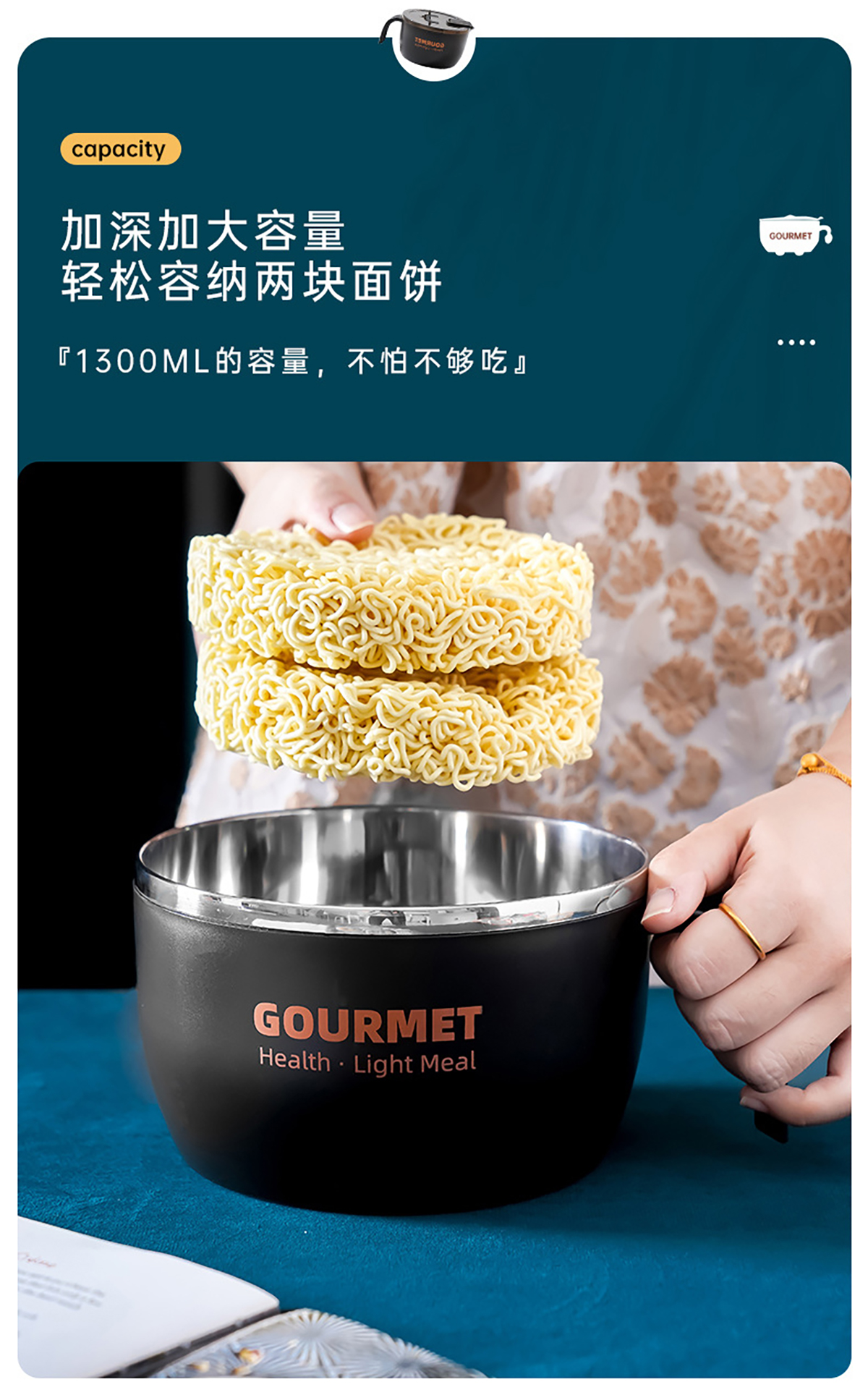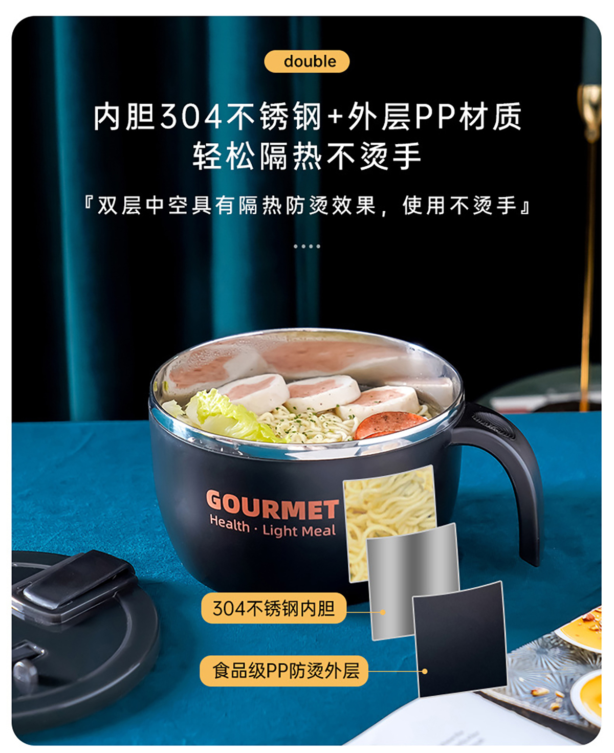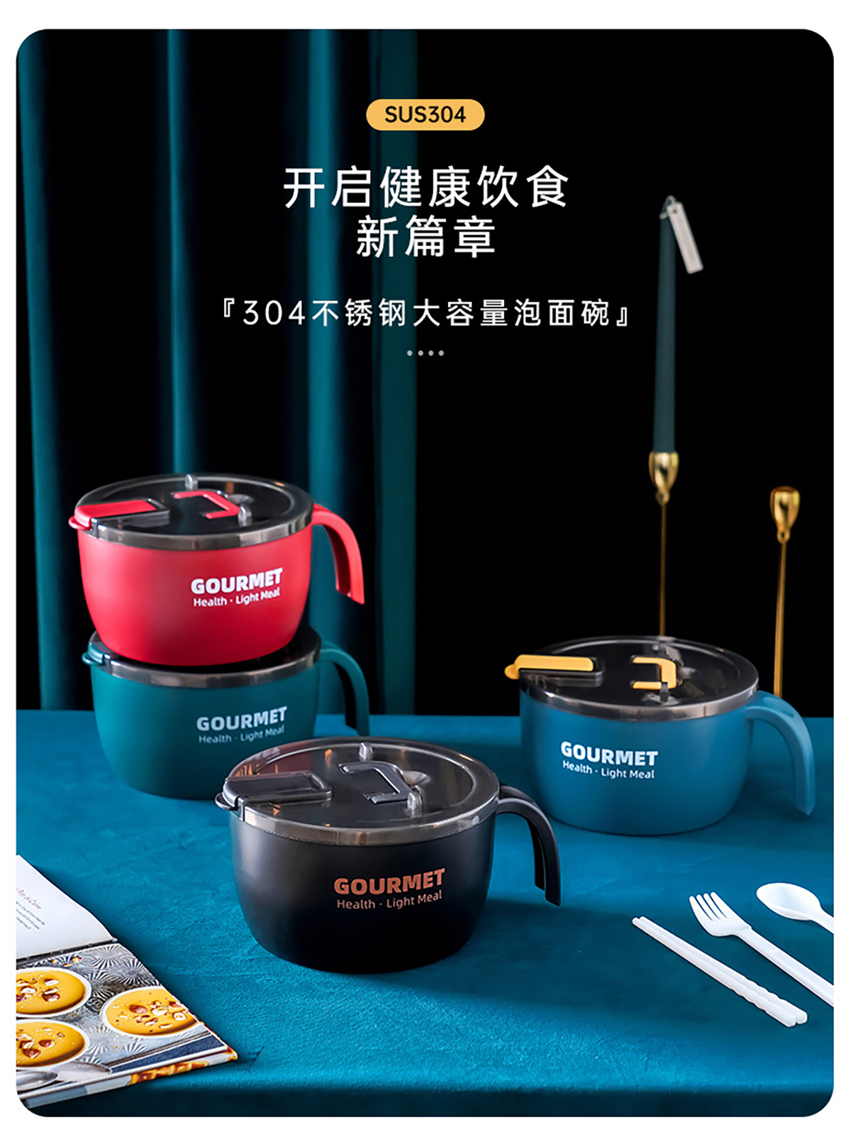 極味304泡面碗(含盒含餐具三件套)1300ml