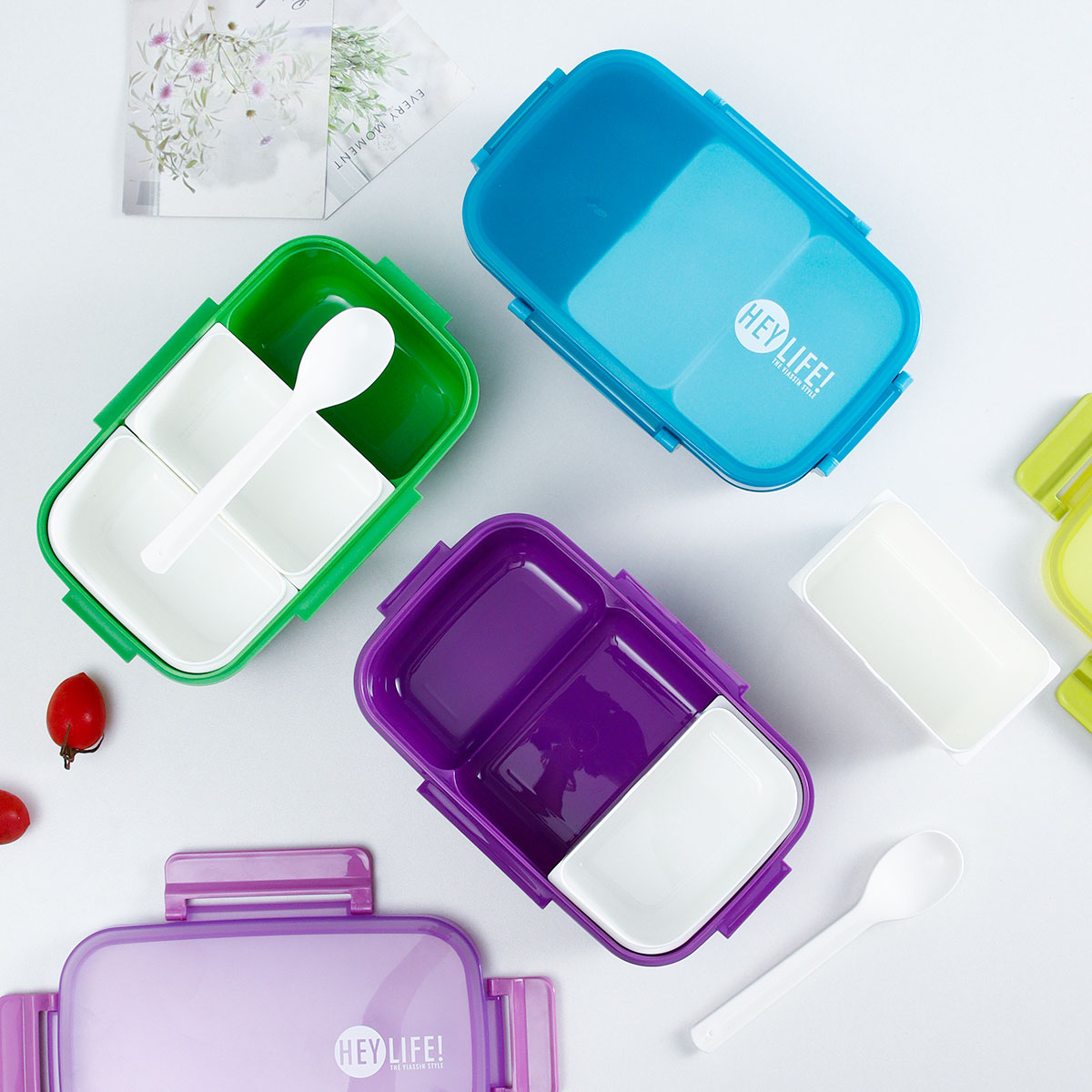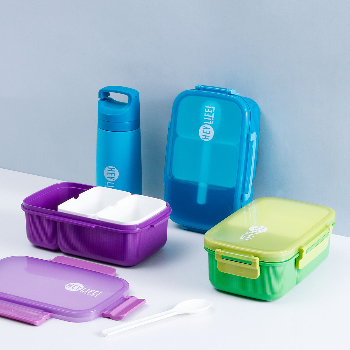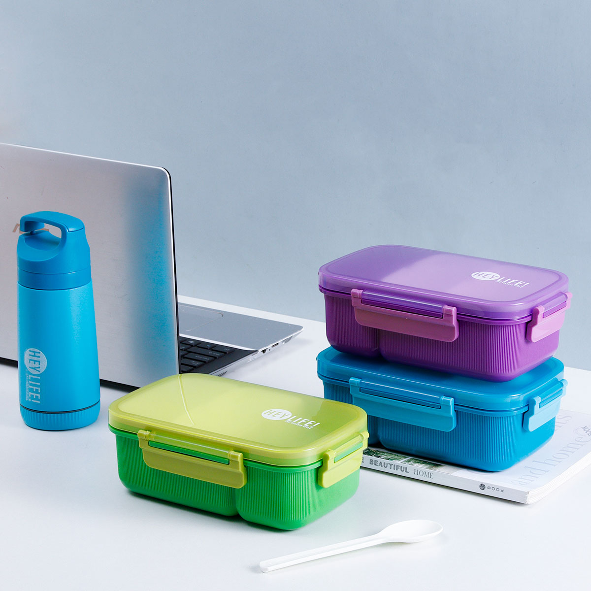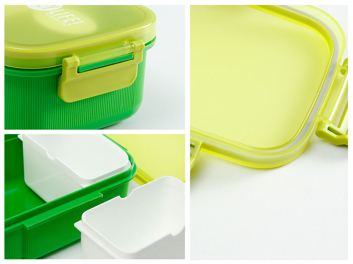 紋彩密封3格飯盒+水壺套裝(長方高款)