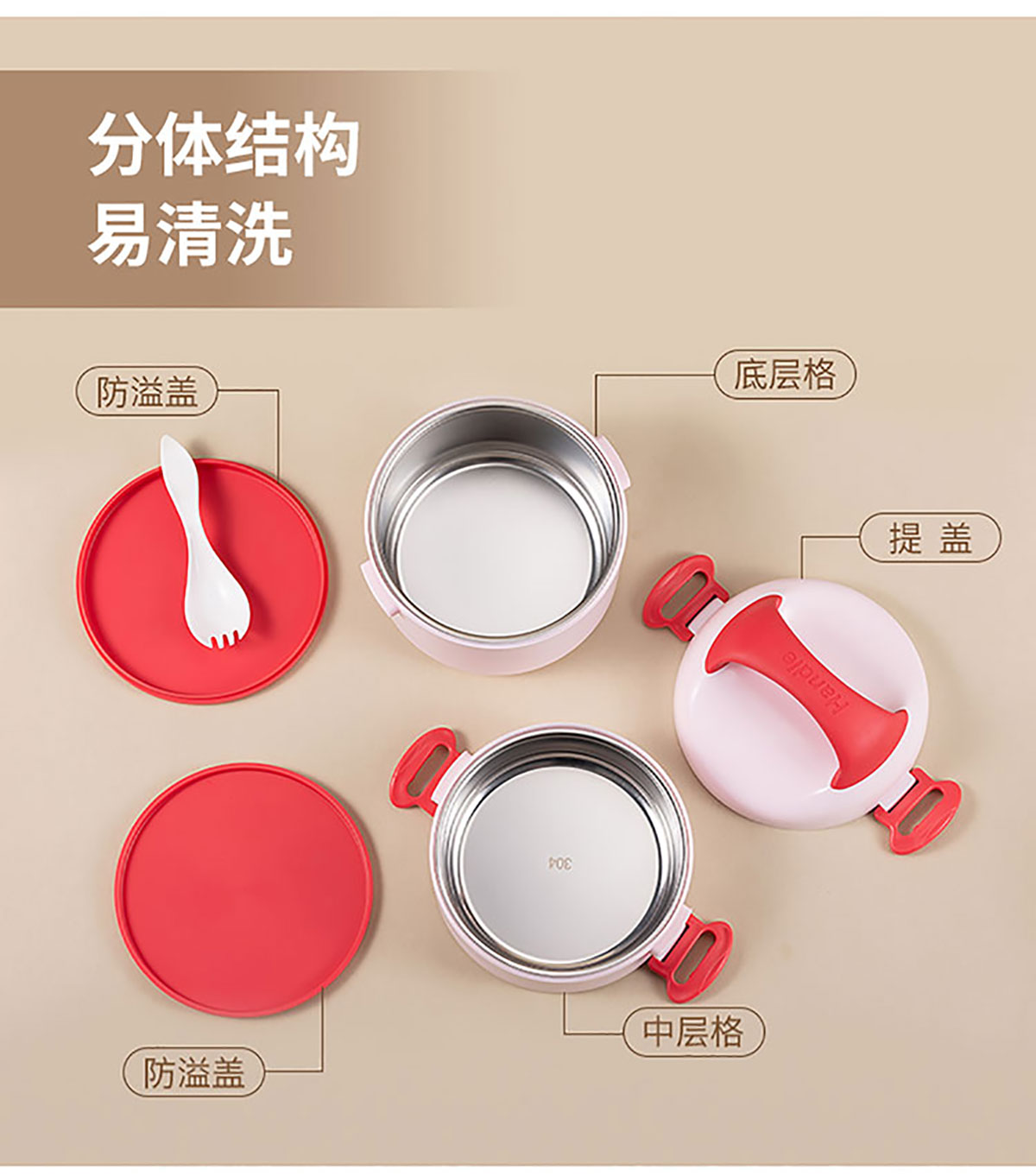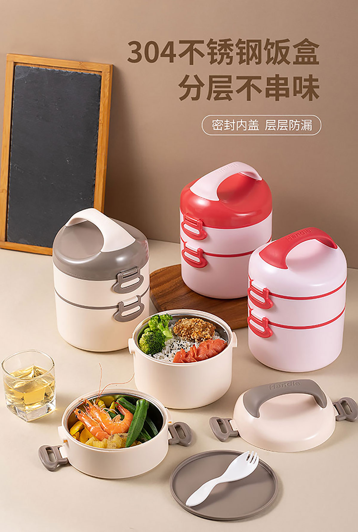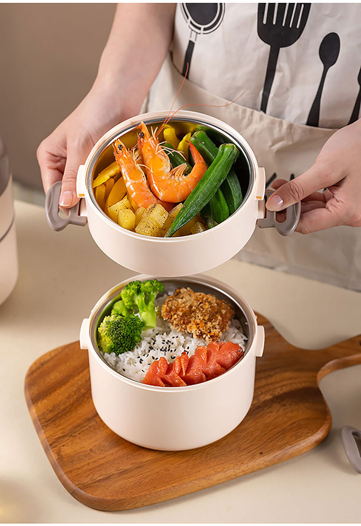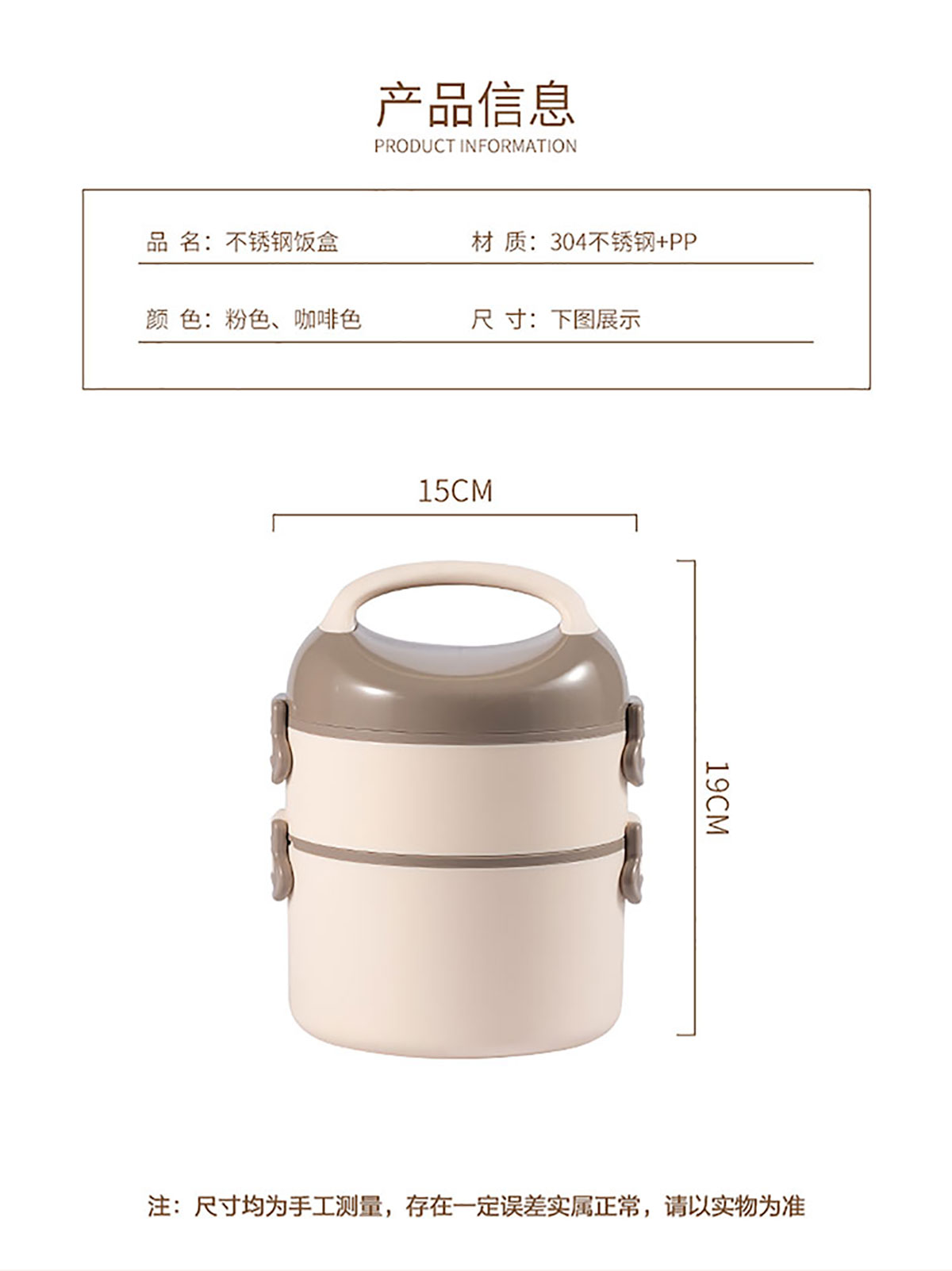 悅味不銹雙層圓形飯盒1000ml+500ml