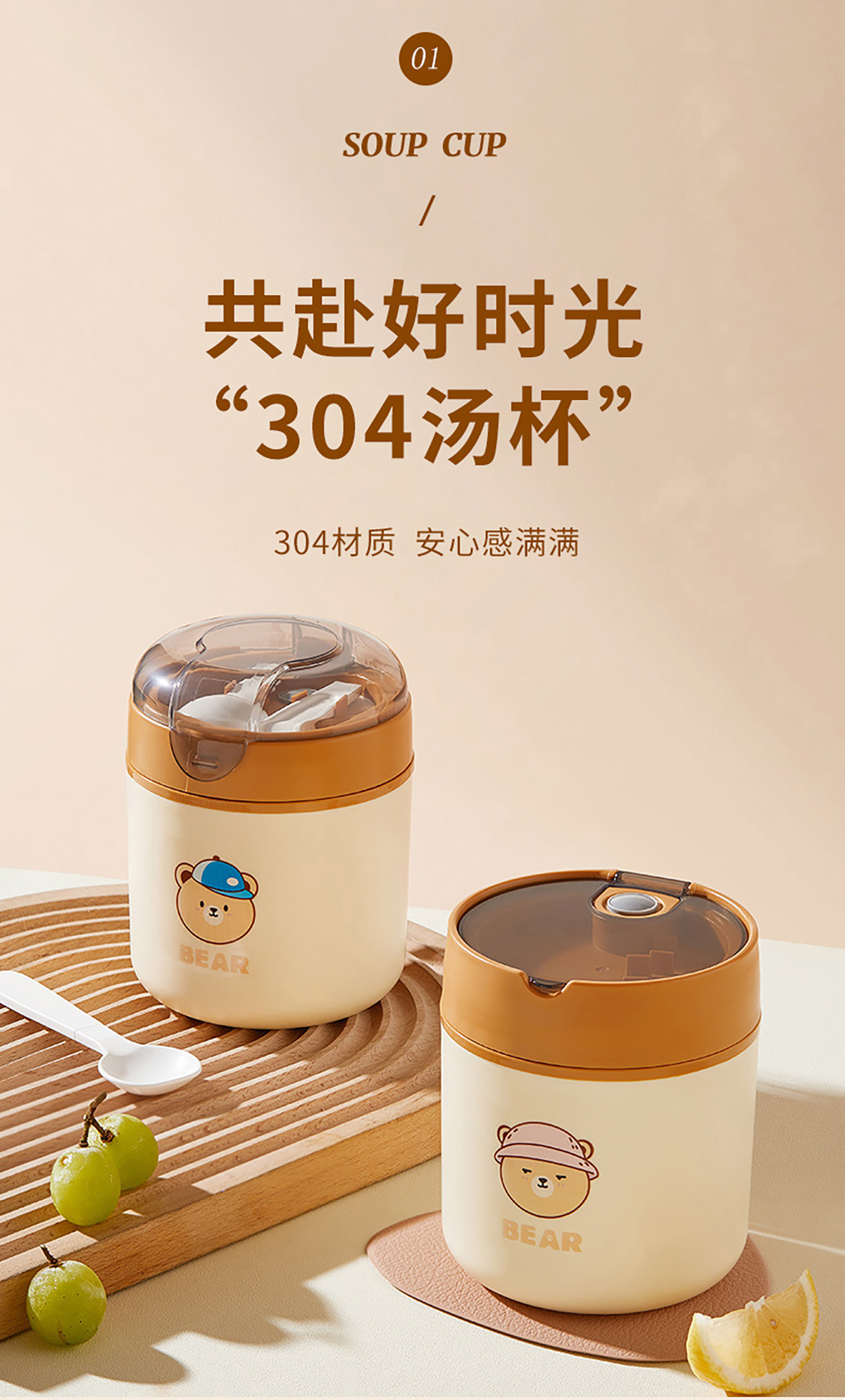 逗逗熊304不銹鋼湯杯530ml(平蓋/高蓋)【女孩/男孩】