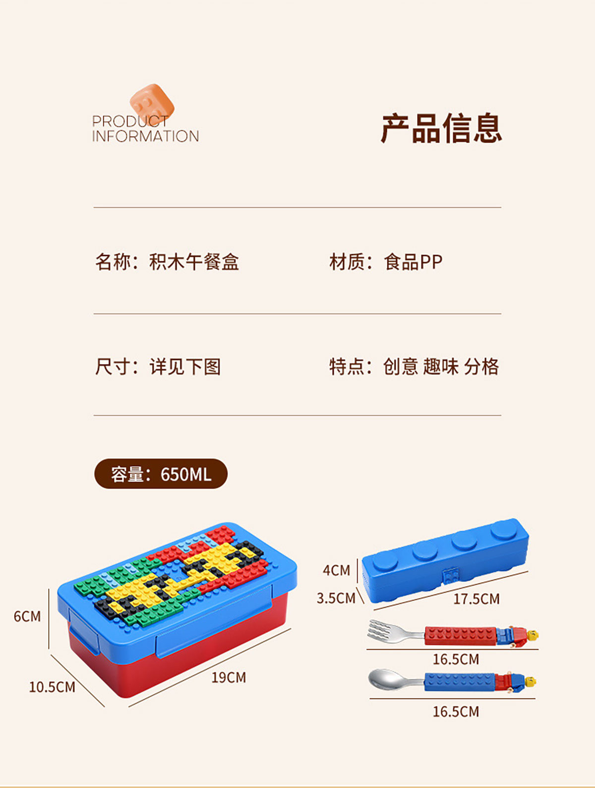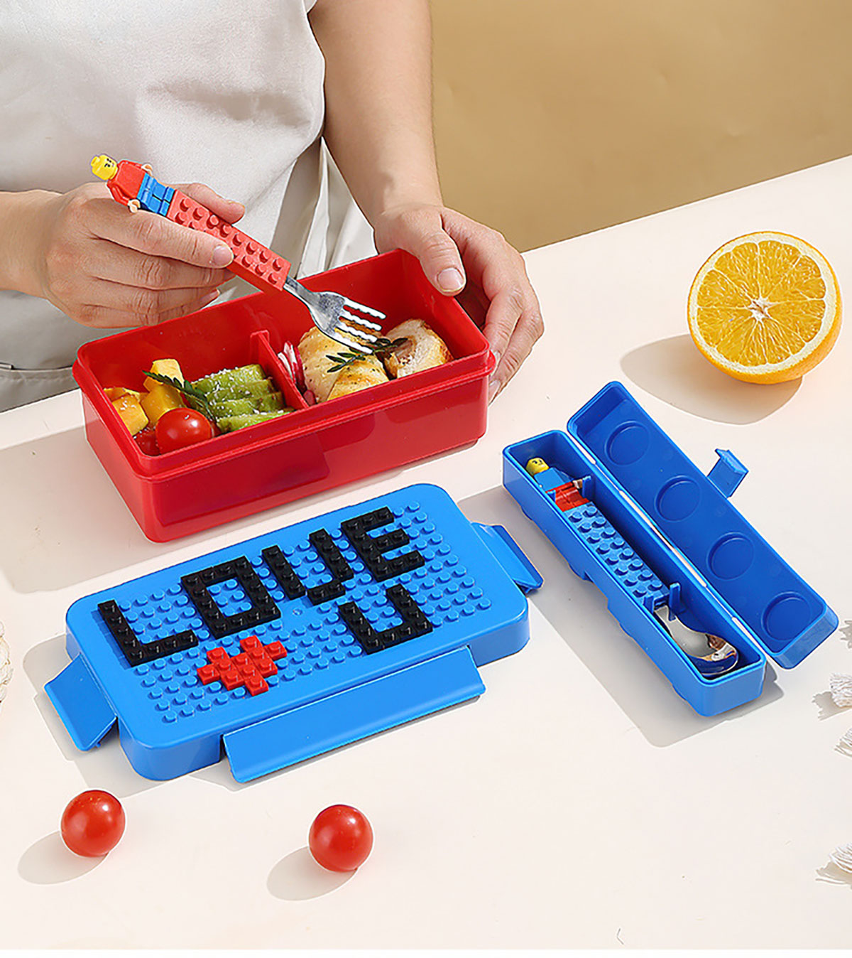 小點(diǎn)積木飯盒(配兩個(gè)分裝盒)1150ml