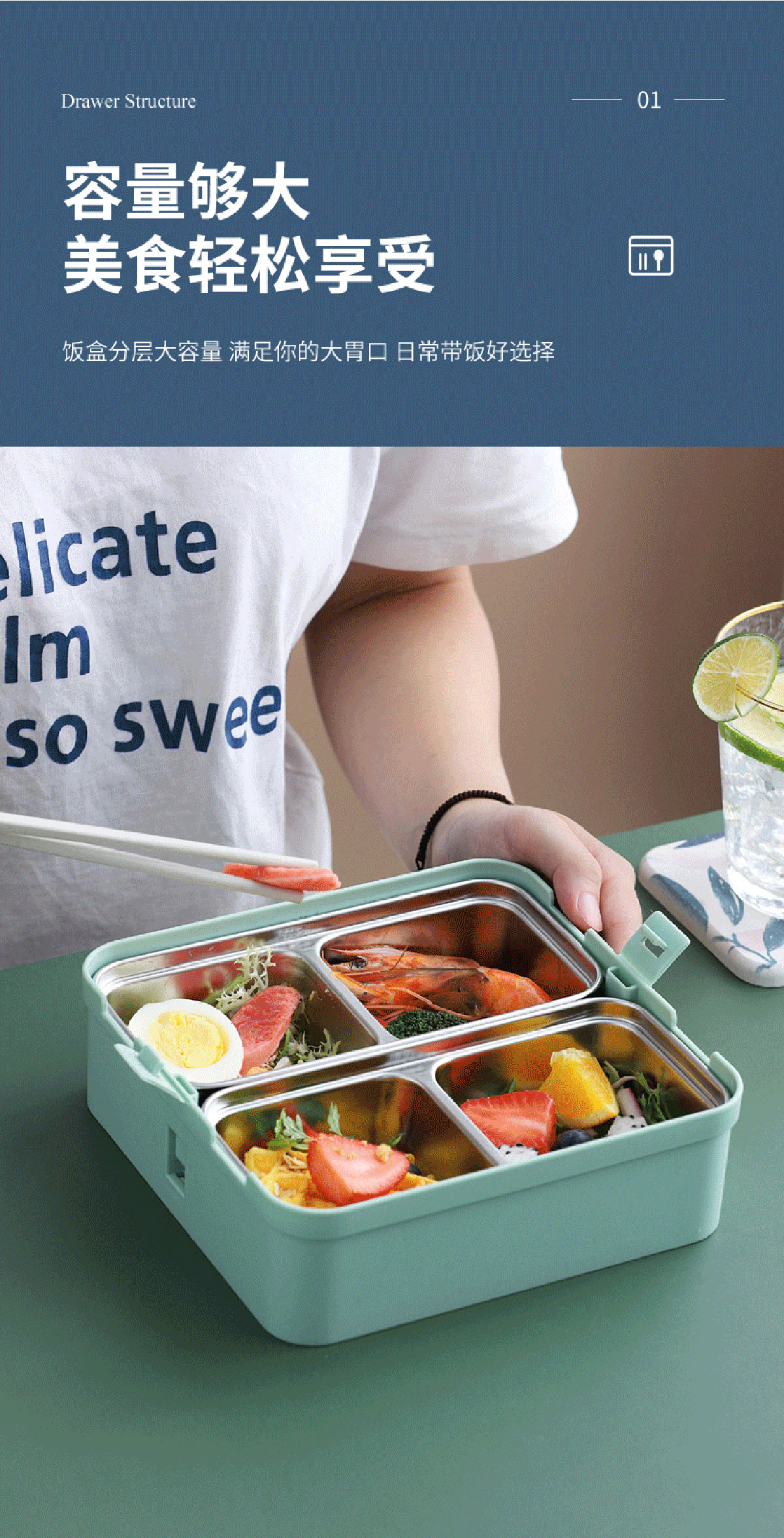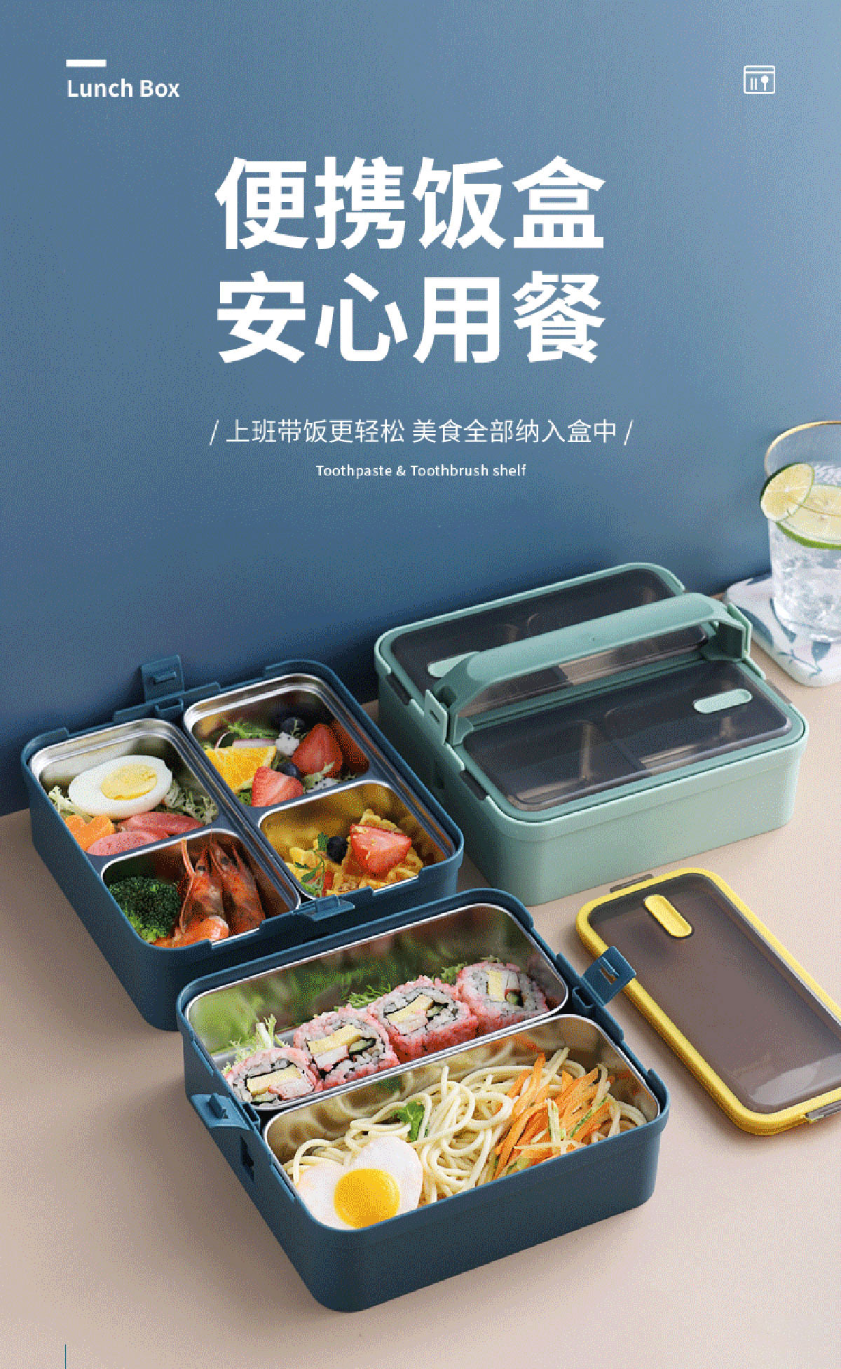 提手單層雙格不銹鋼飯盒1100ml