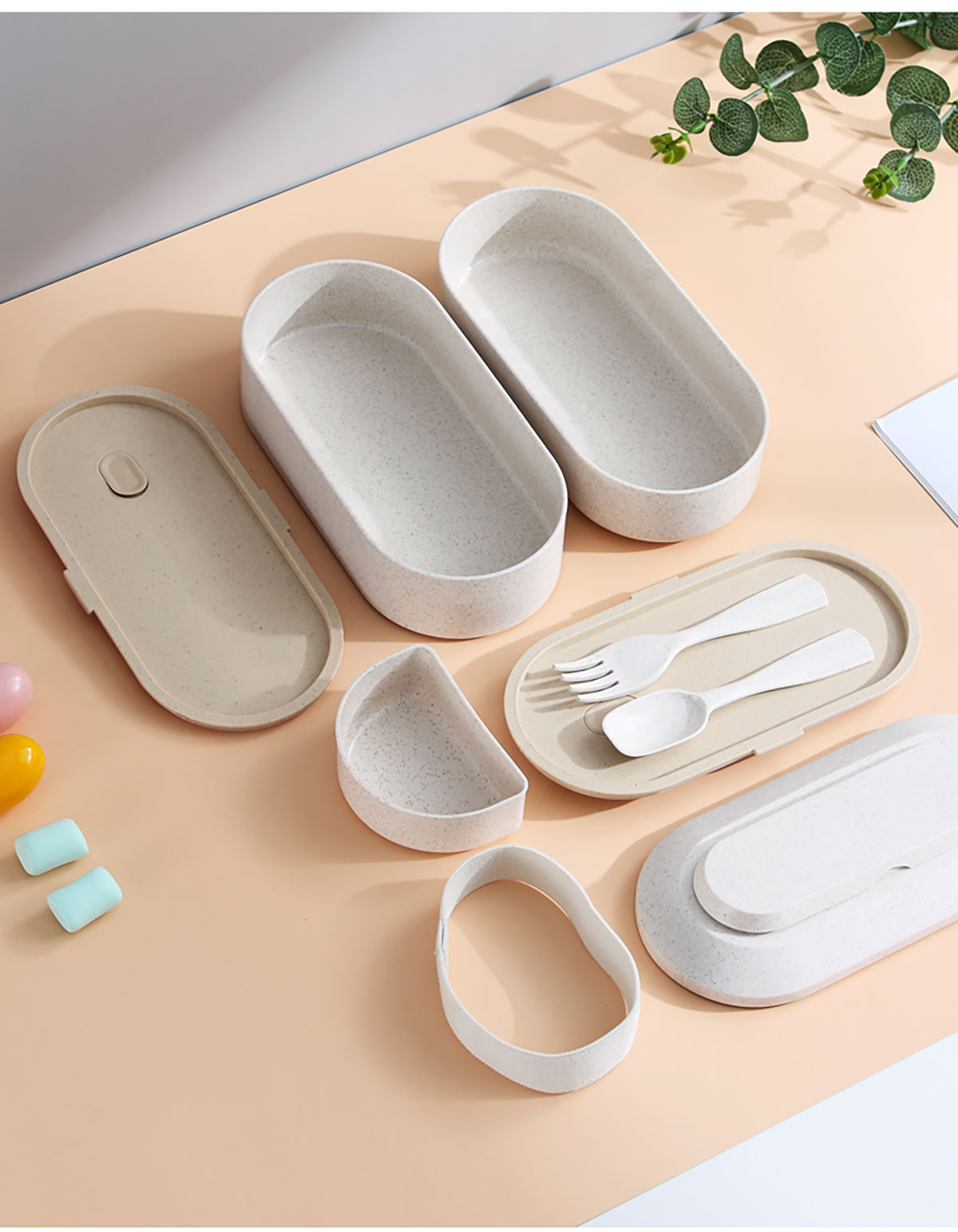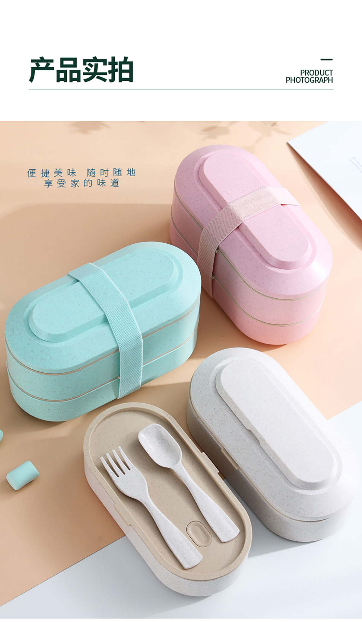 麥桔橢圓綁帶雙層飯盒900ml