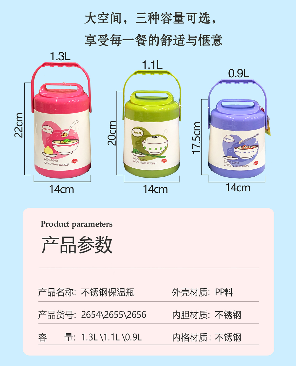 Size: WQ-2654:140*220mm/1300ml