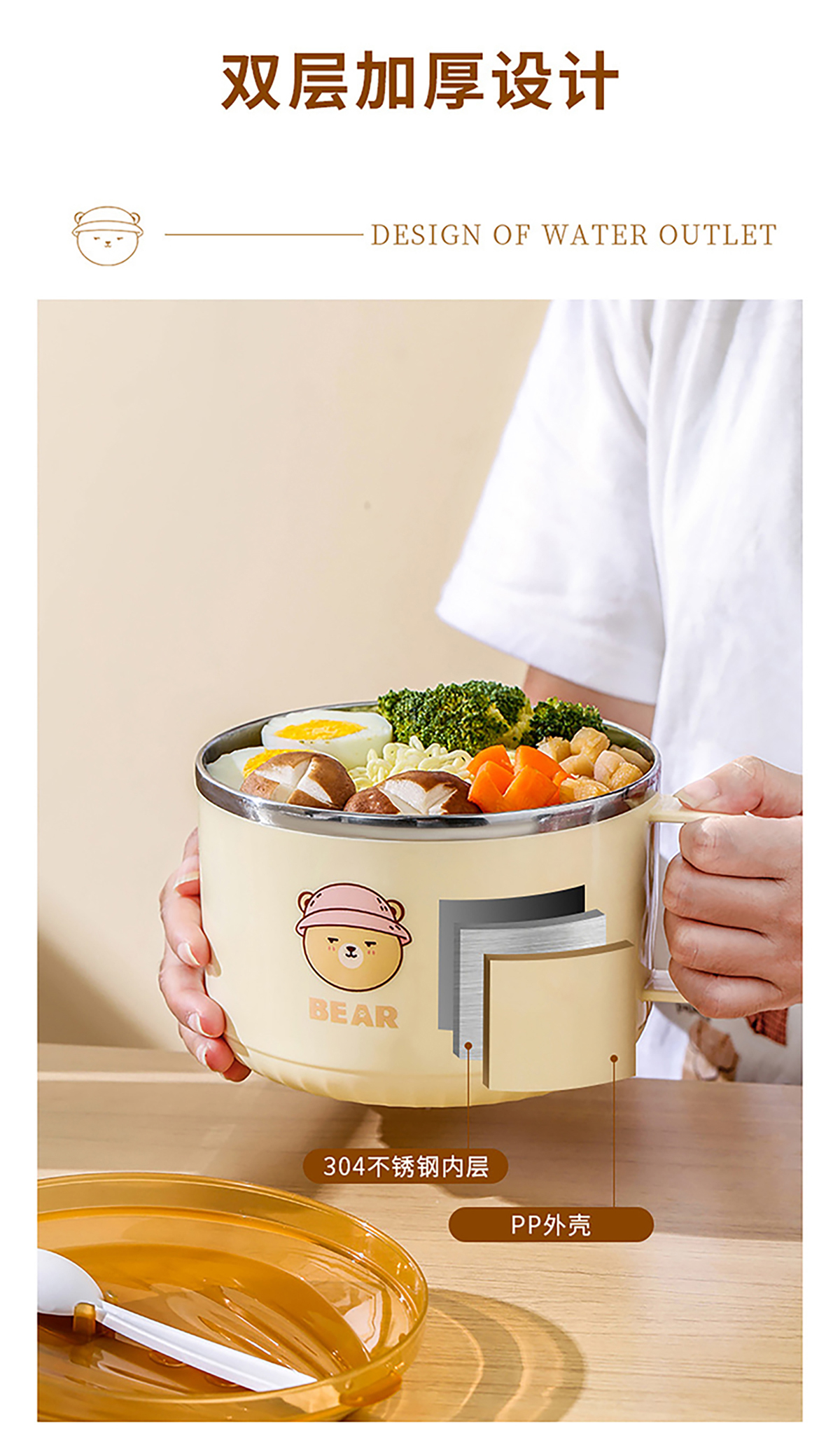 小號逗逗熊304不銹鋼/塑料泡面碗 [男孩/女孩]