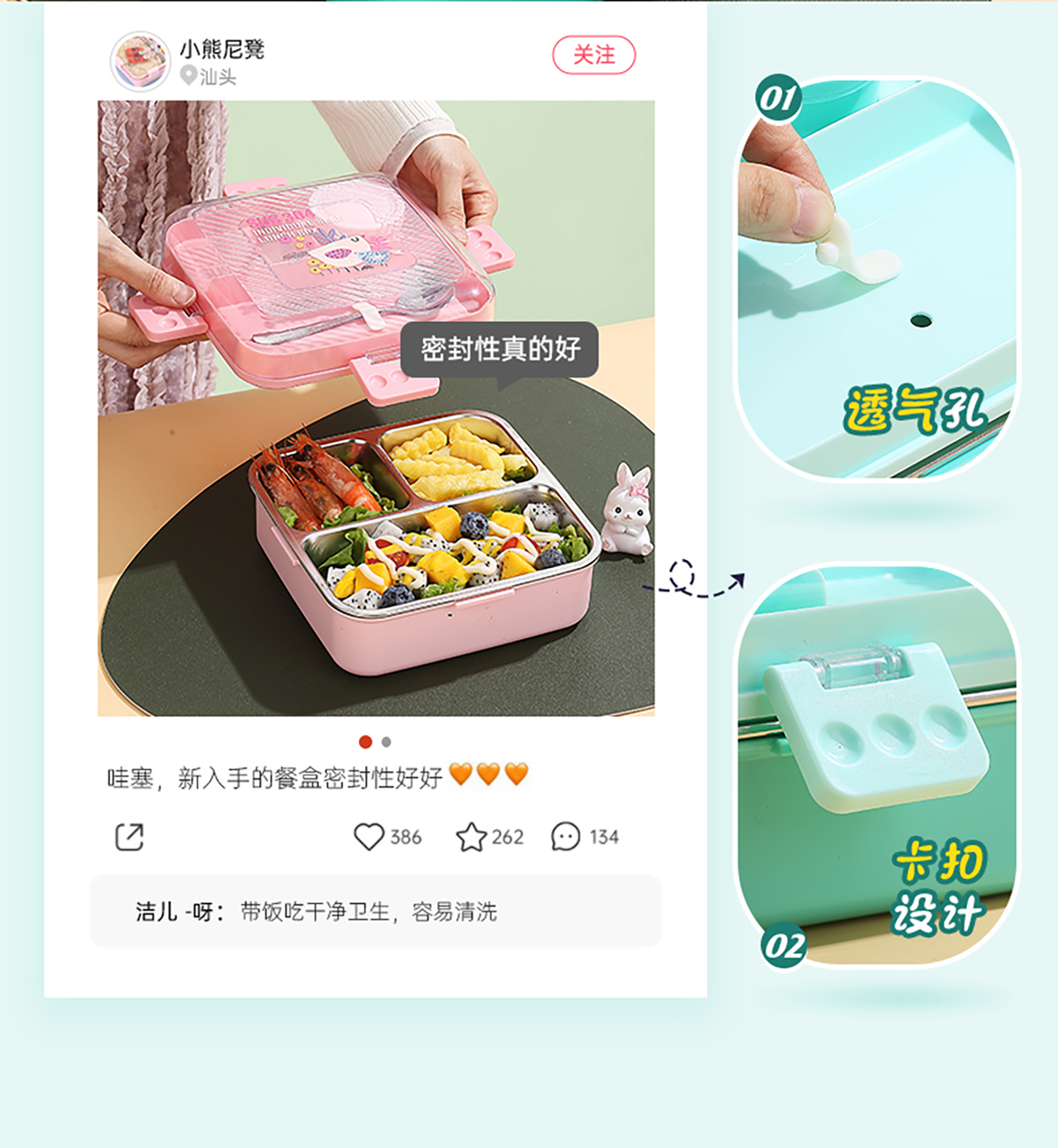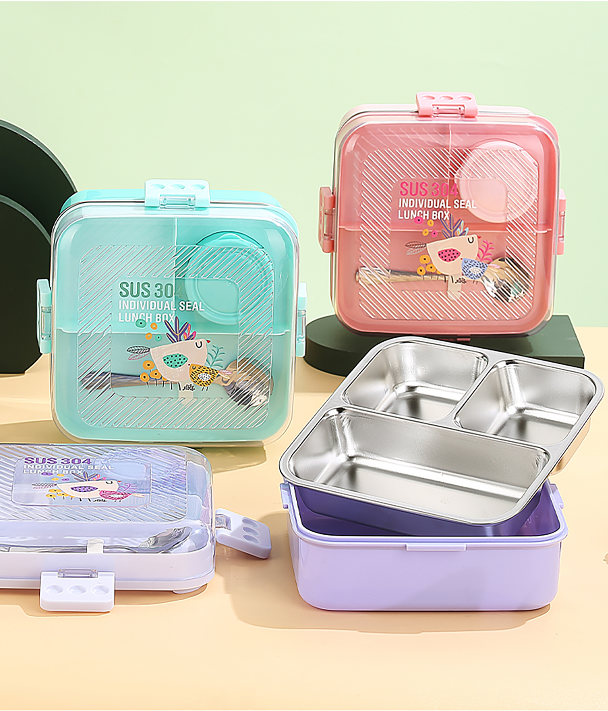 卡通正方形不銹鋼飯盒1120ml+70ml
