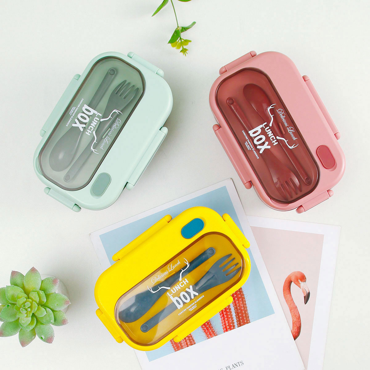 品悅長方單層密封飯盒(1000ml)+圓形/八角隨行杯(500ml)