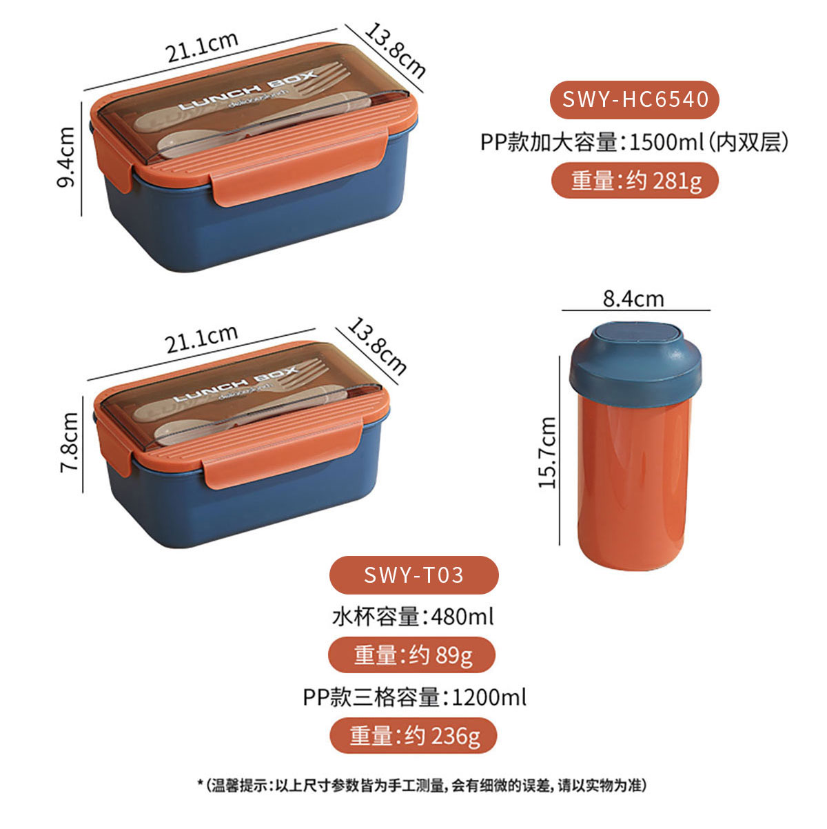 SWY-T03(套裝):211*138*78mm/1200ml 水壺:84*157mm/480ml