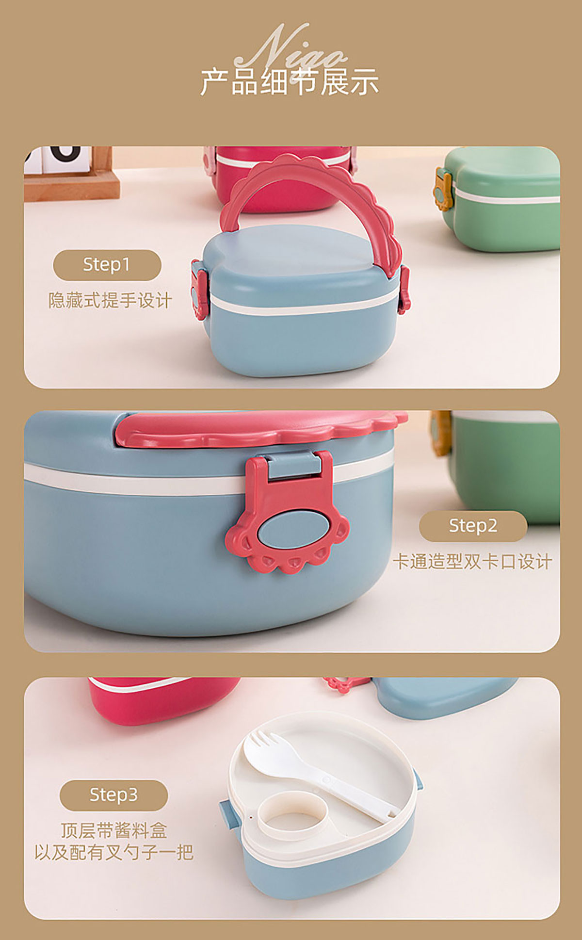 可愛卡通恐龍飯盒800ml