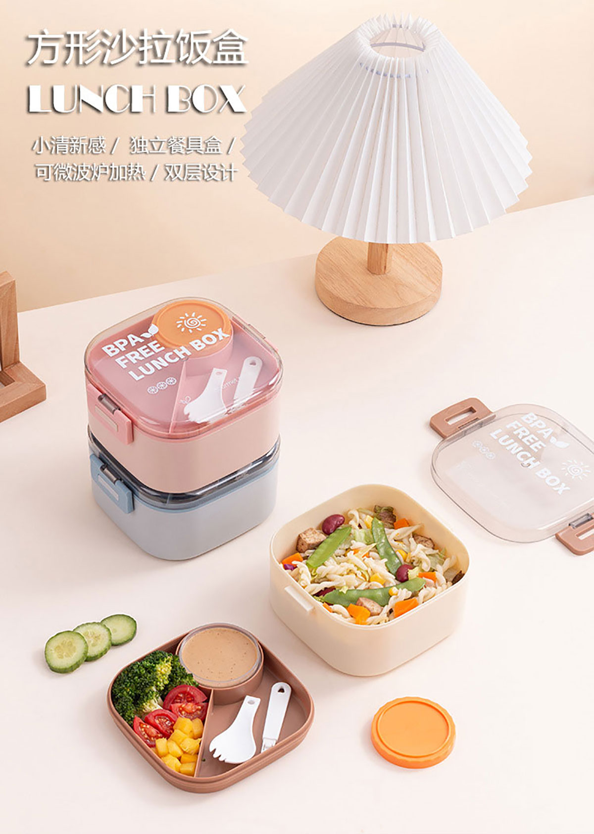方形沙拉飯盒(帶沙拉盒/塑料款)