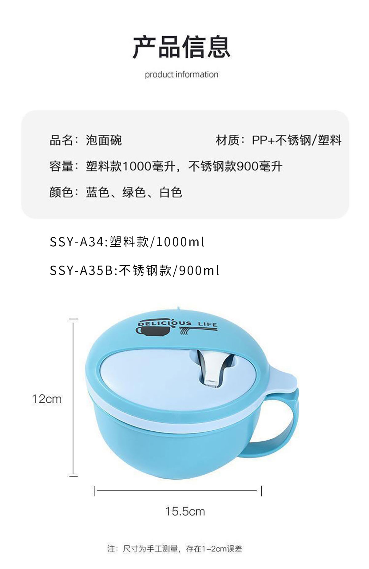 韻味泡面碗 塑料1000ml/不銹鋼900ml