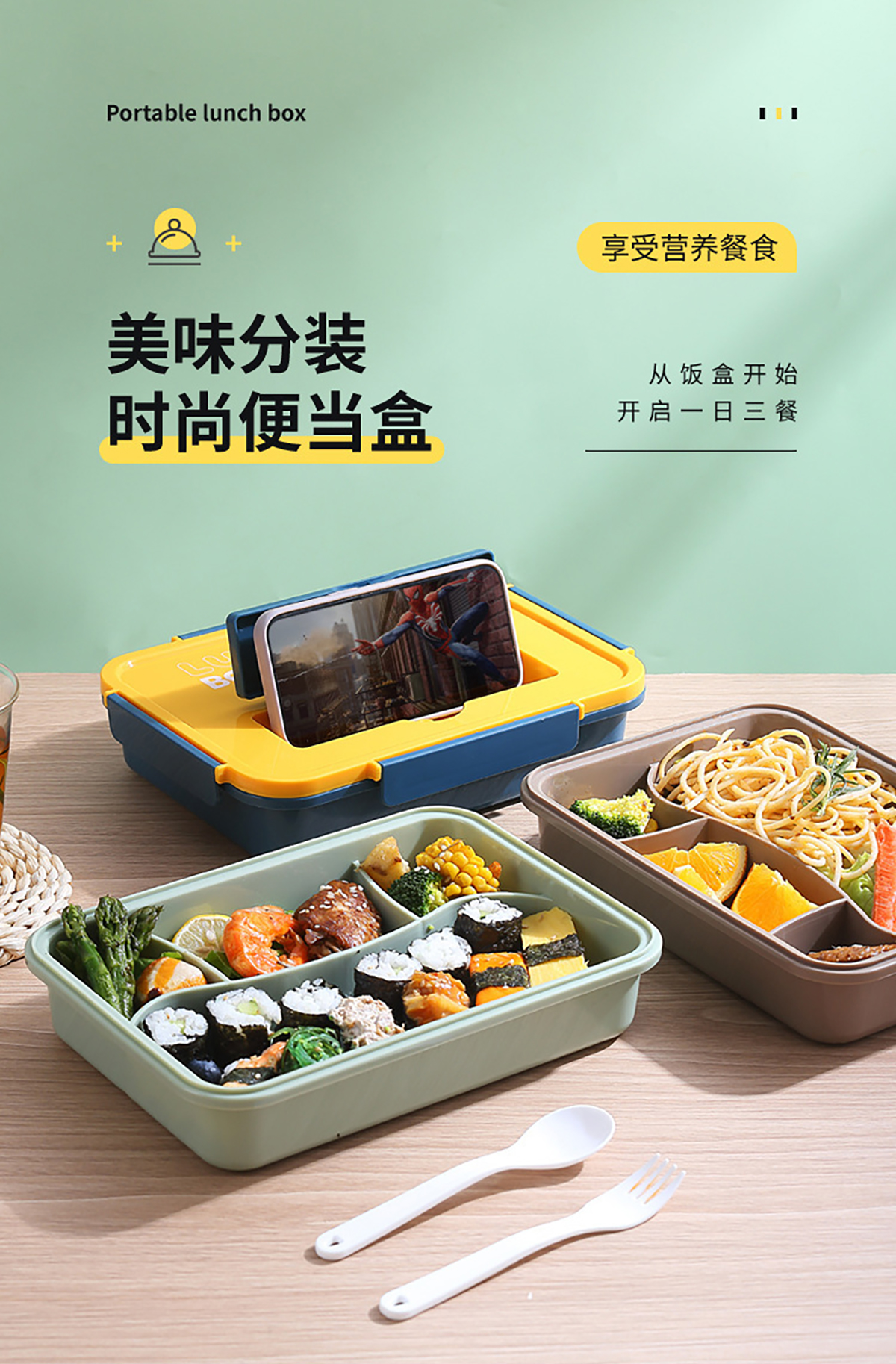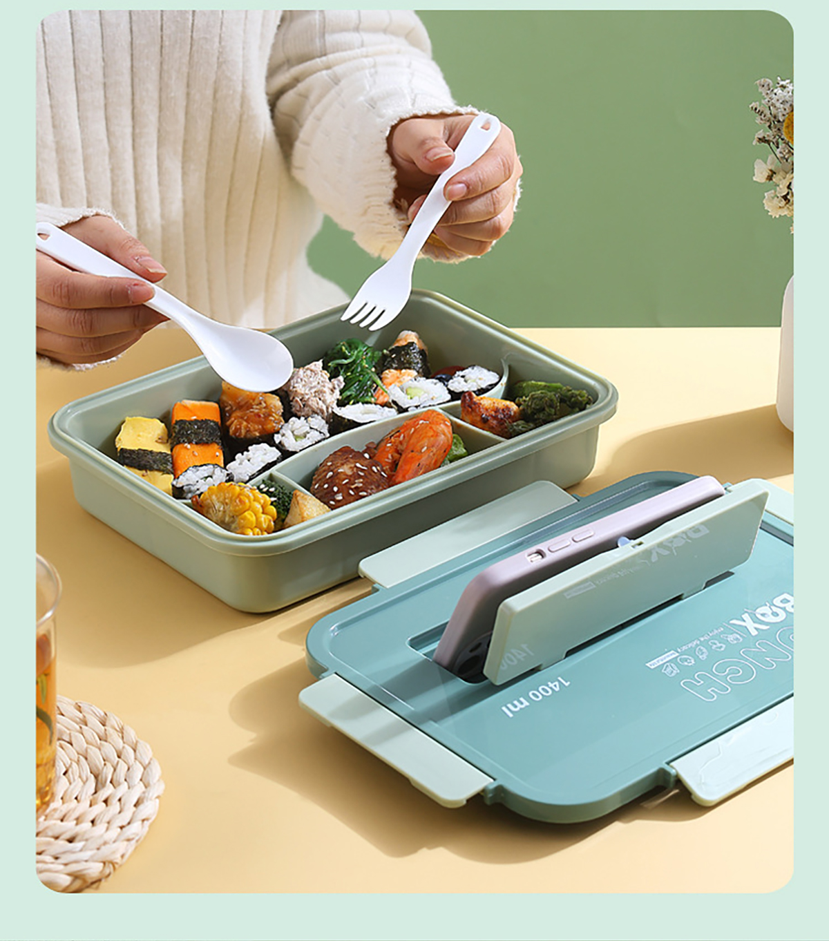 尚品塑料餐盒塑料款1400ml叉勺