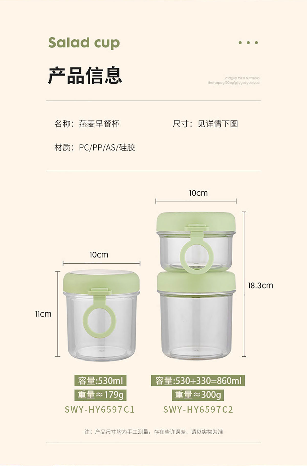 Size: SWY-HY6597C1:?100*110mm/530ml