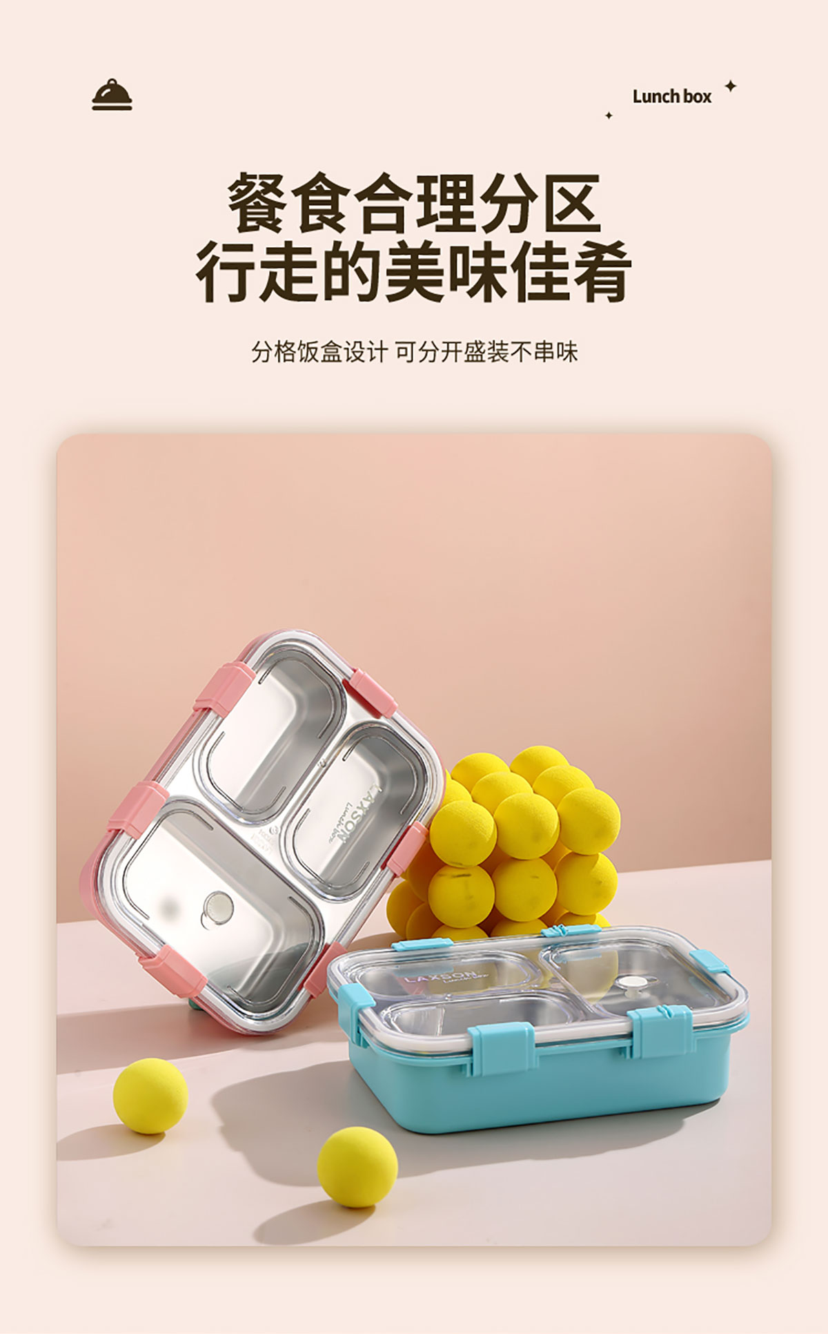 LX-7072A(四格+不銹鋼碗):254*182*65mm