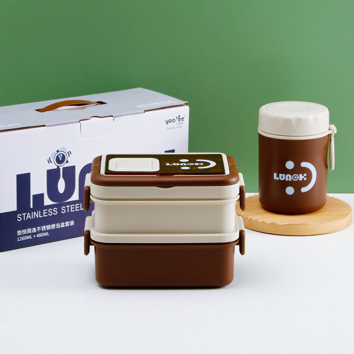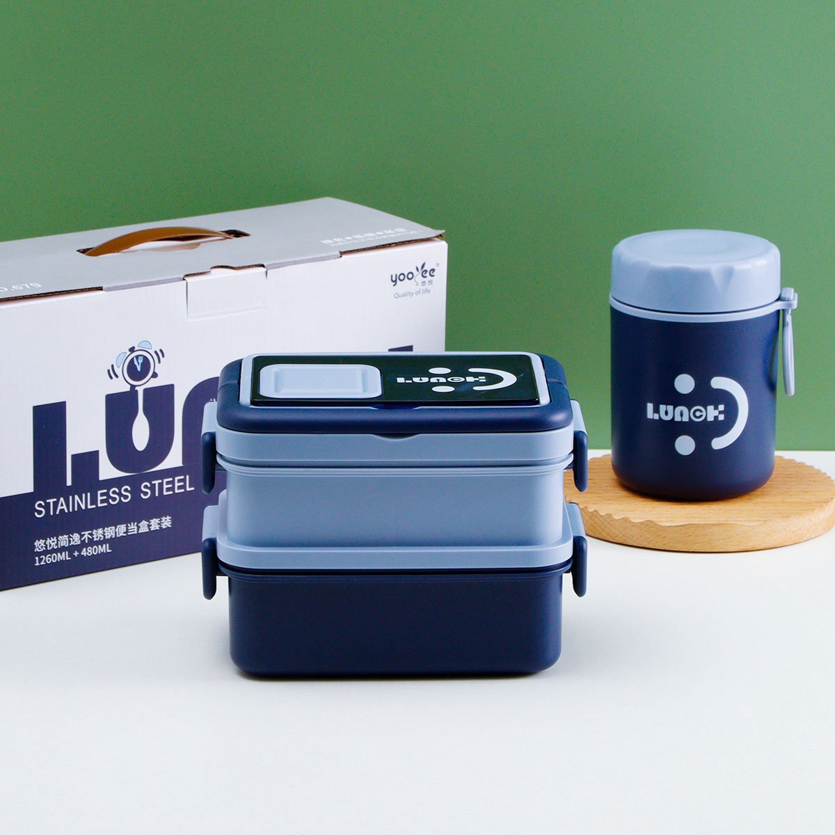 悠悅簡逸不銹鋼便當(dāng)盒套裝(1260ml+480ml)