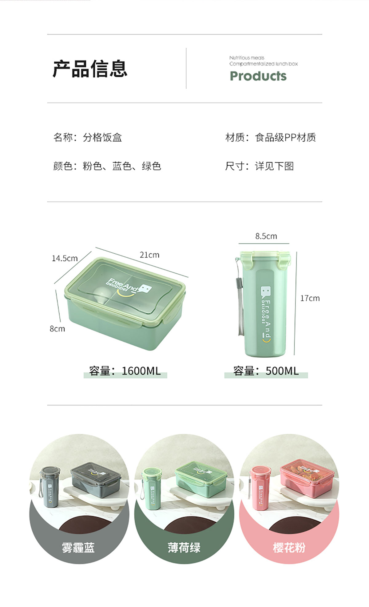 Size: 飯盒:210*145*80mm/1600ml 水壺: Φ85*170mm/500ml