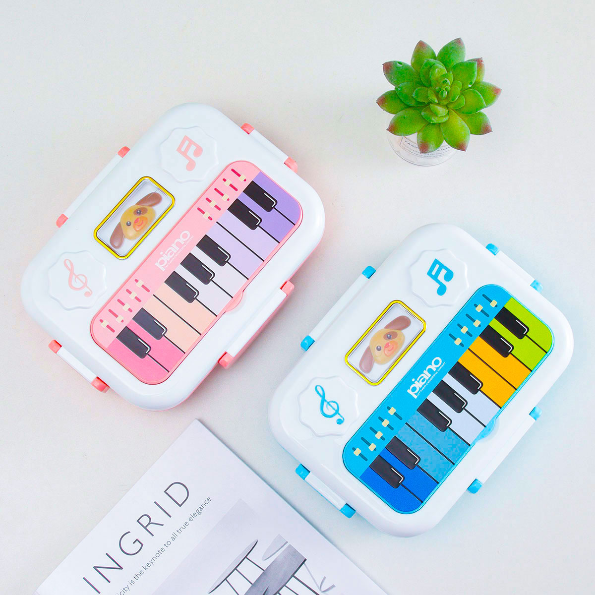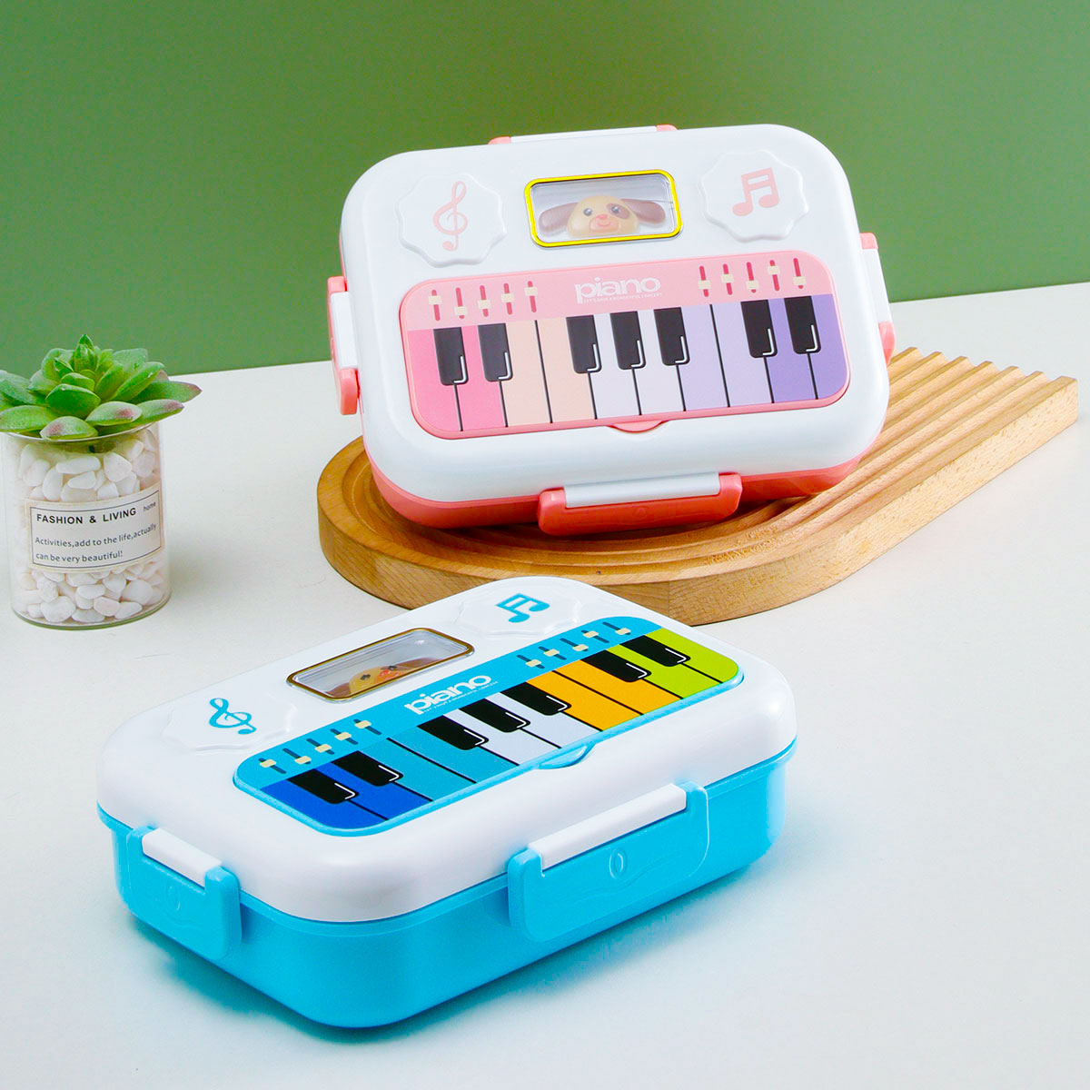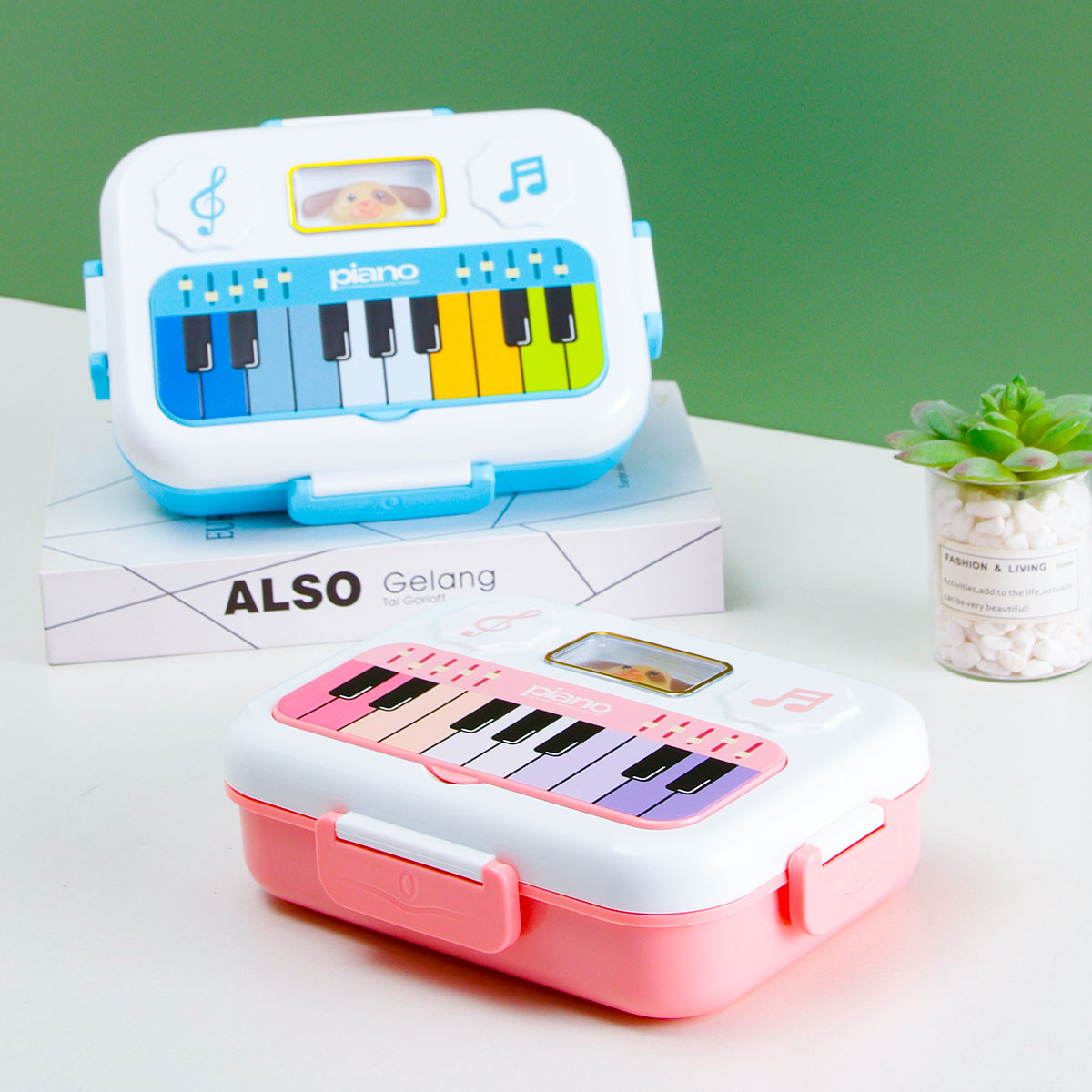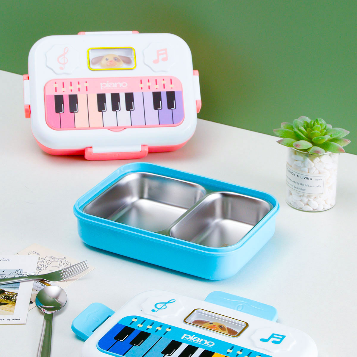 小鋼琴二格/三格不銹鋼飯盒(不銹鋼叉匙)