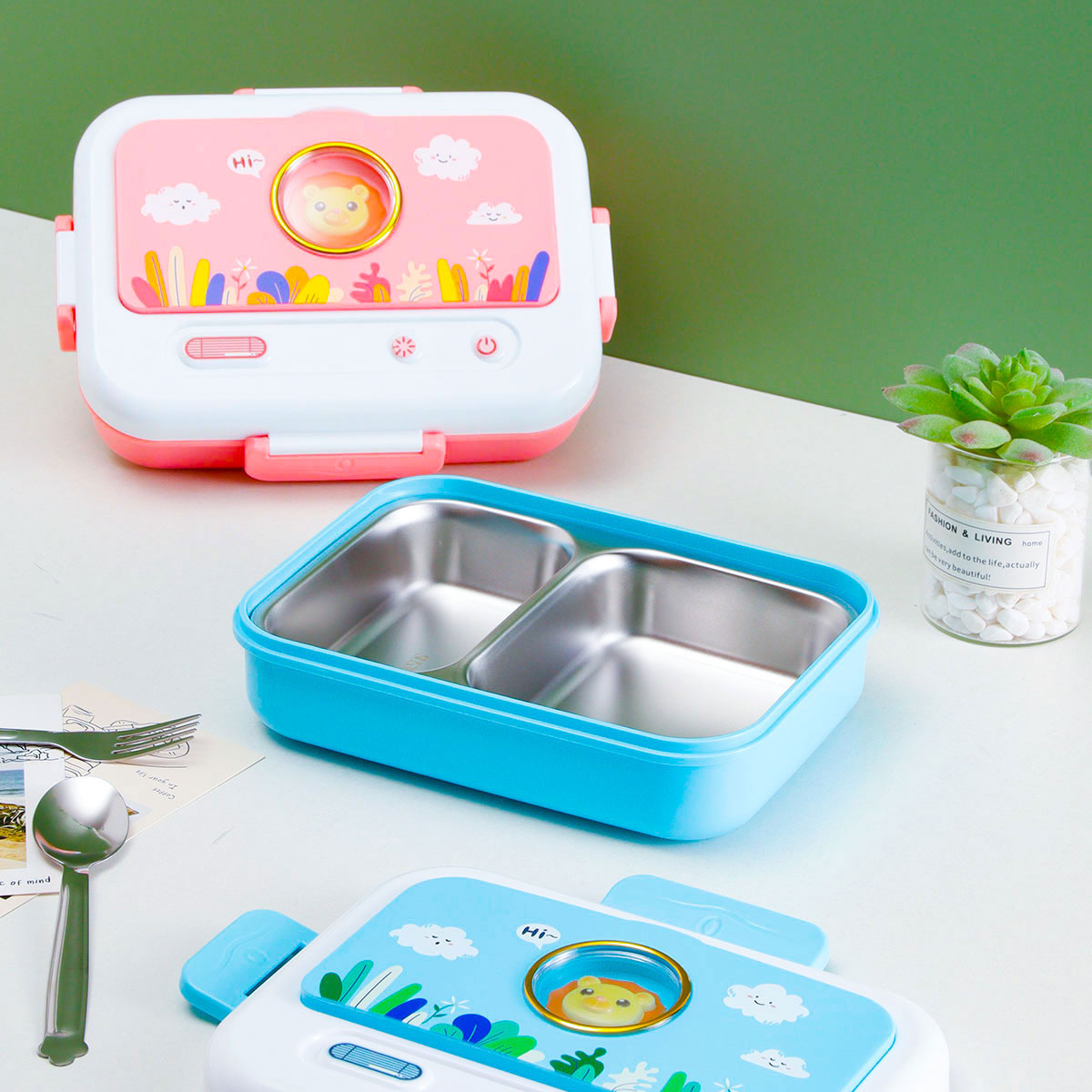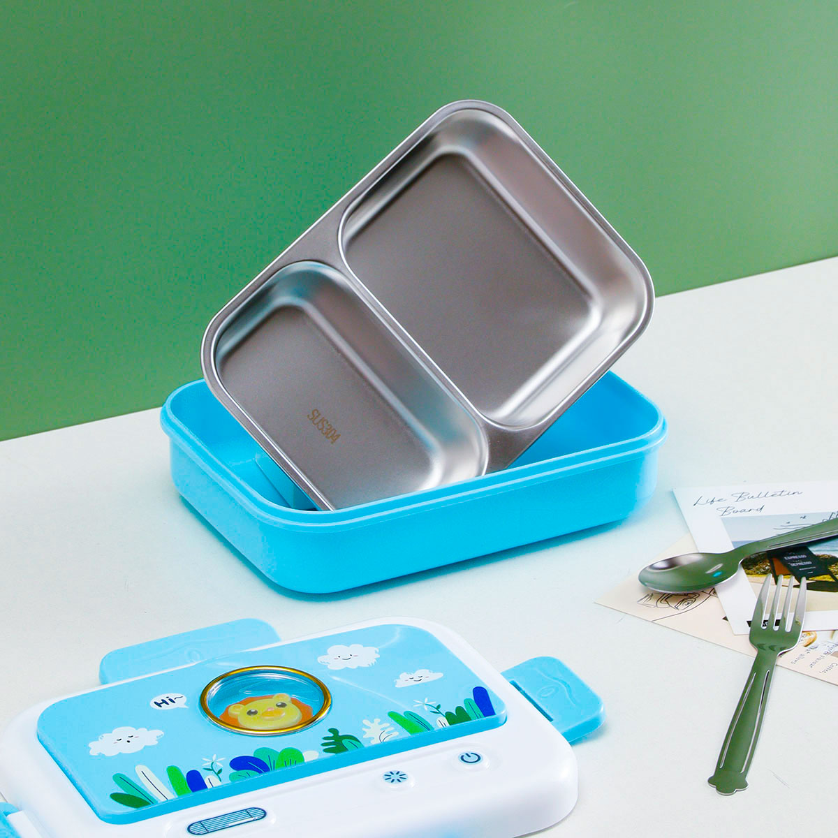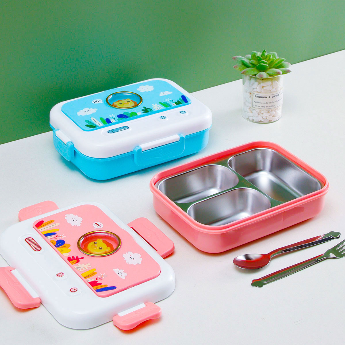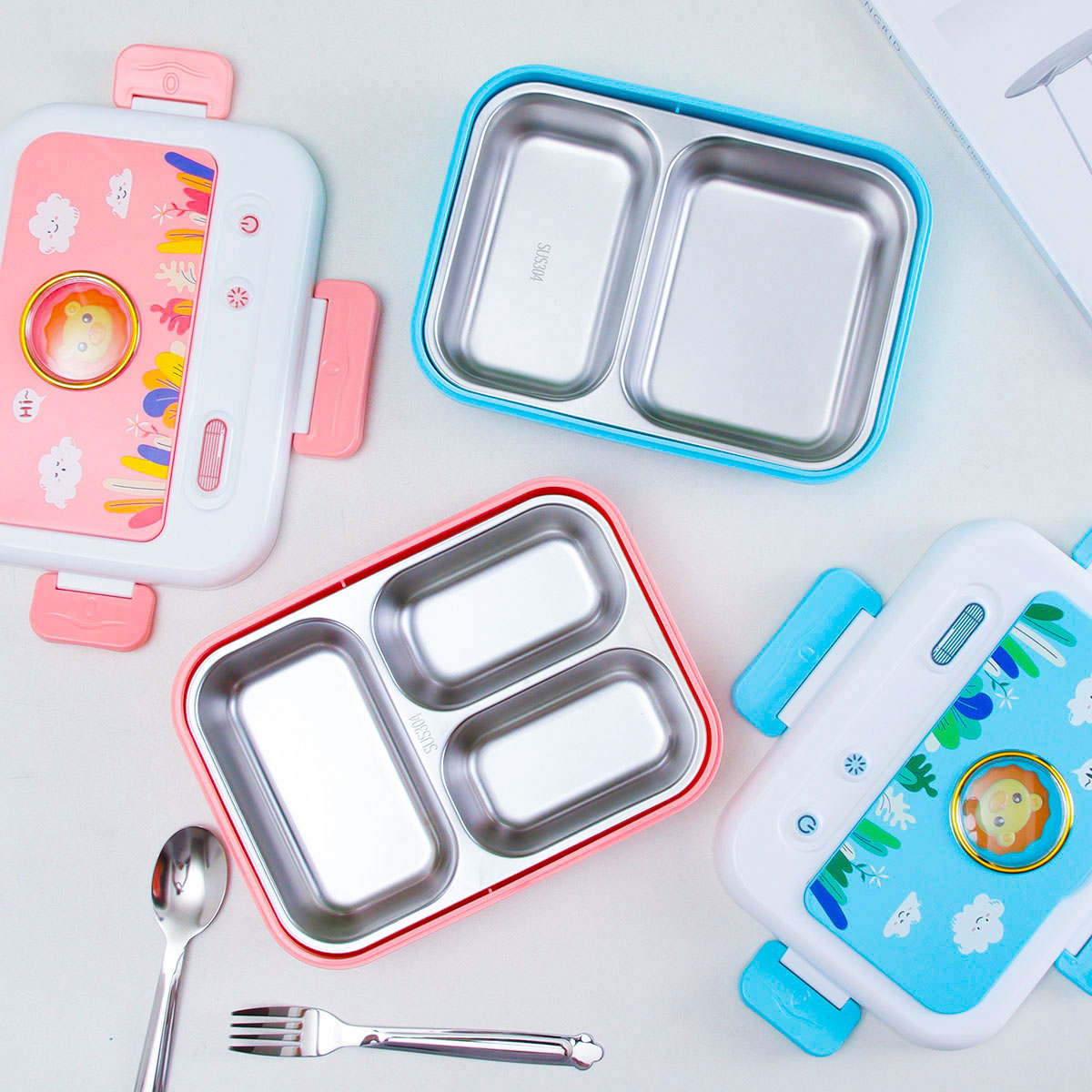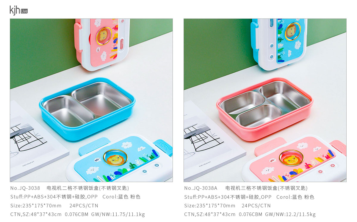 電視機(jī)二格/三格不銹鋼飯盒(不銹鋼叉匙)