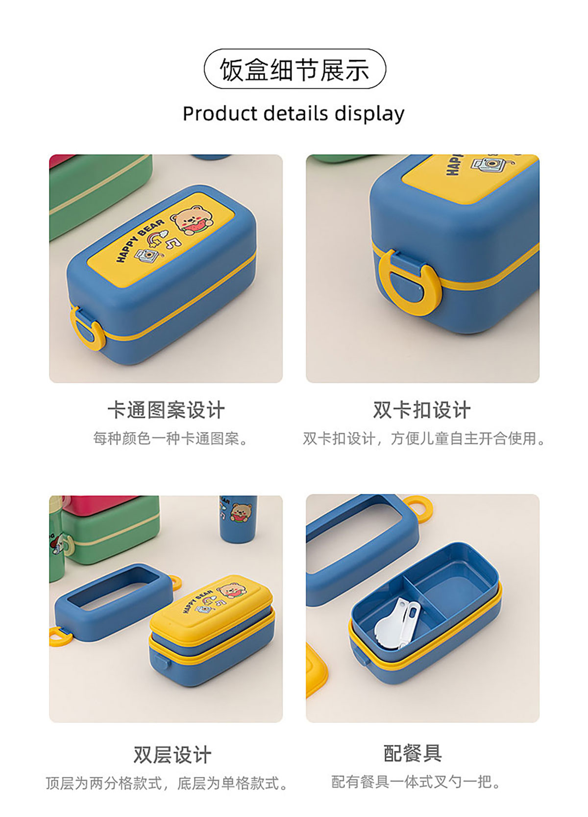 卡通小巧雙層分隔飯盒