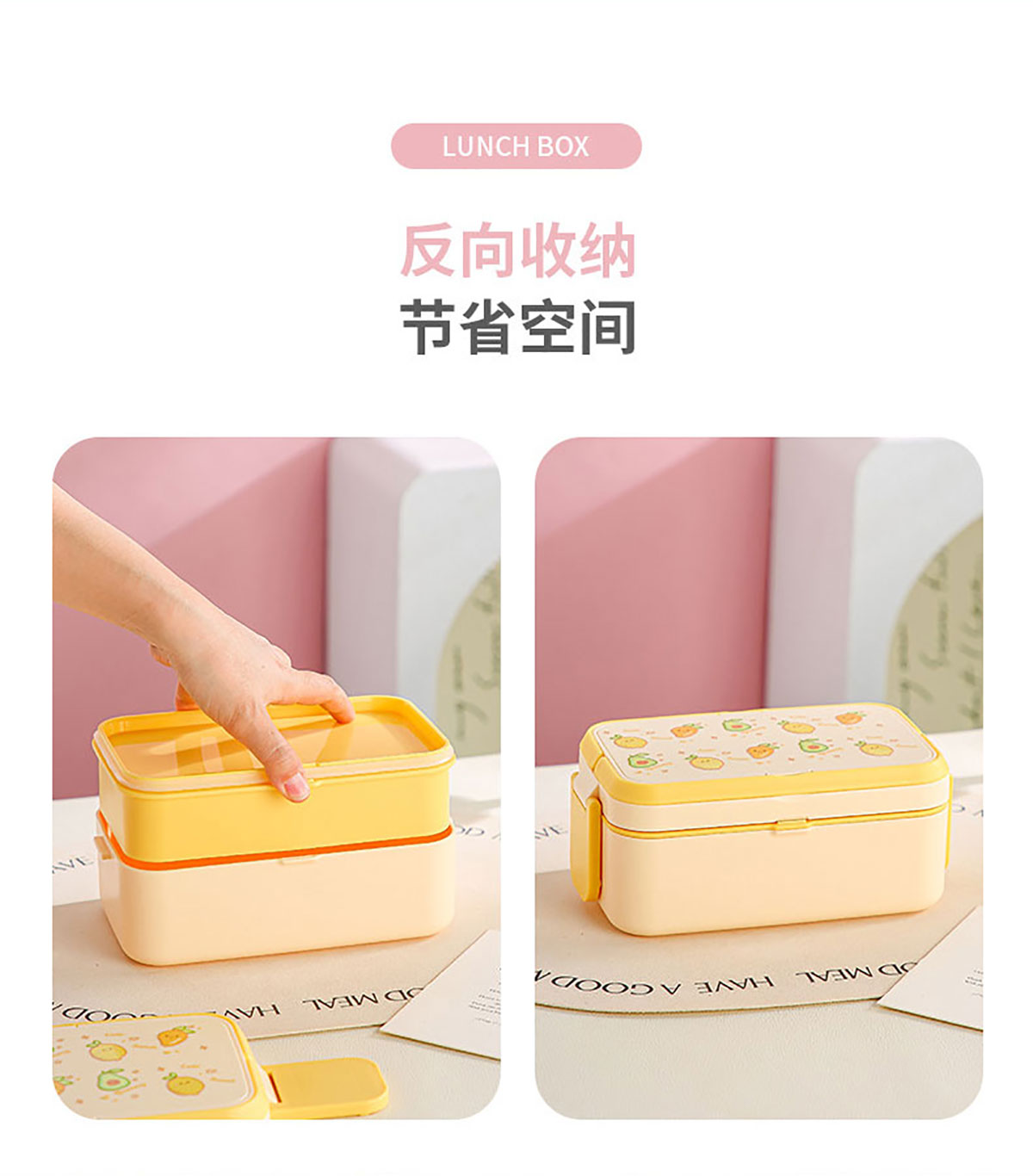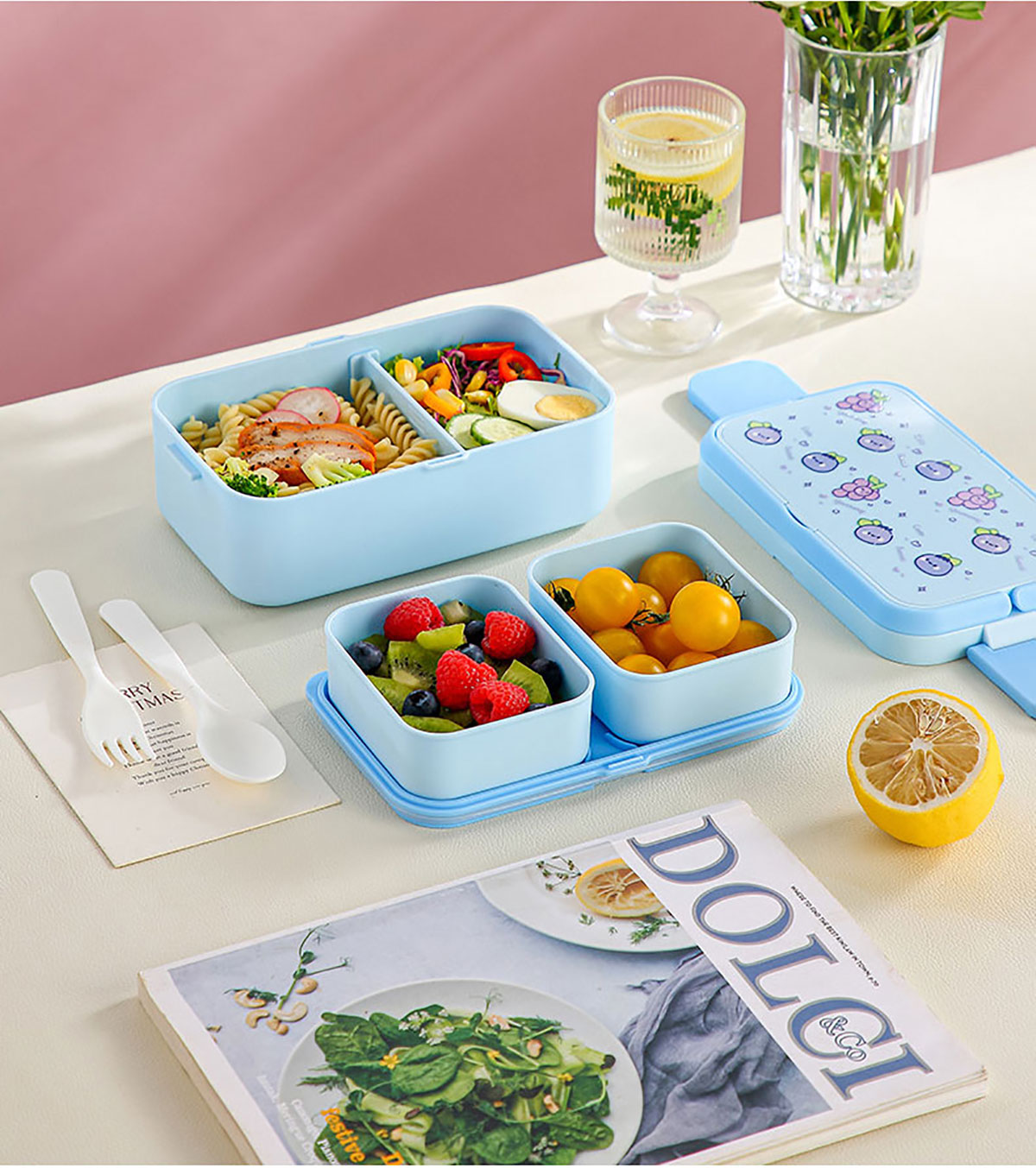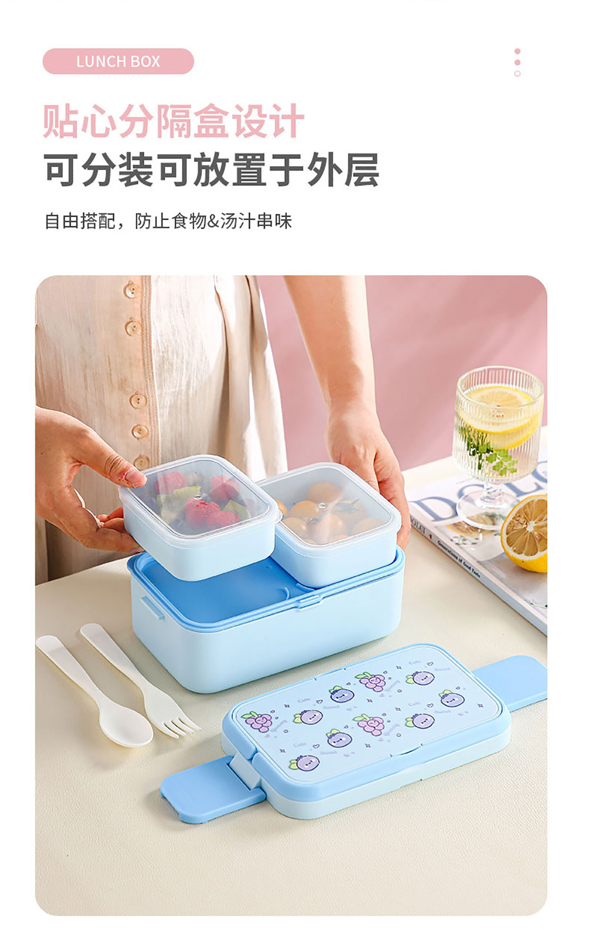 水果蜜語二合一可收納雙層飯盒(配叉勺)1200+760ml/1200+290×2ml