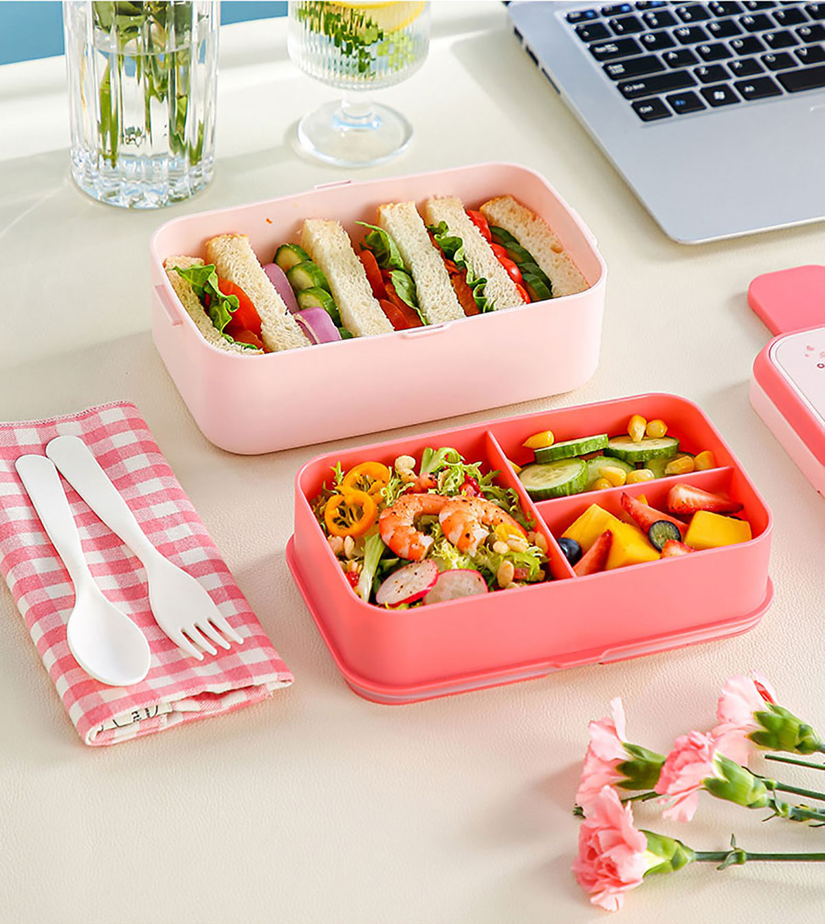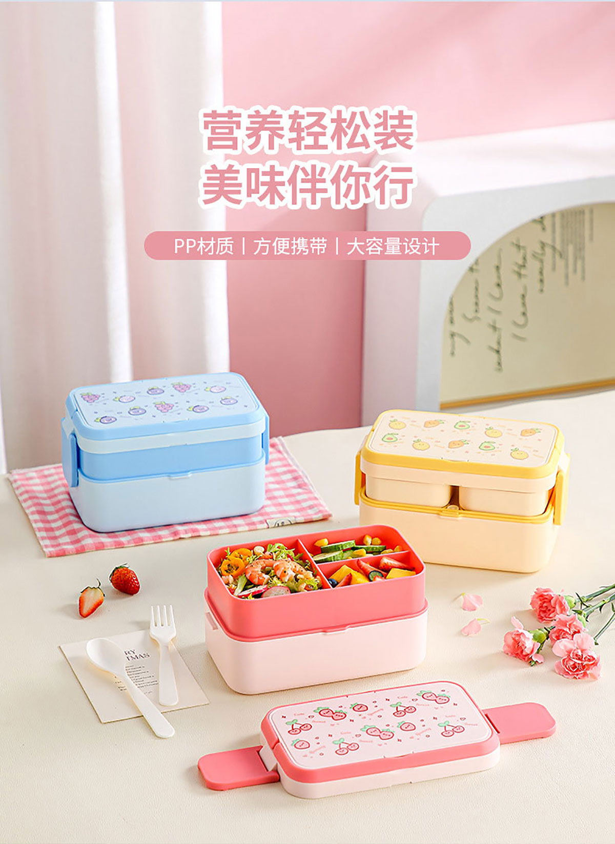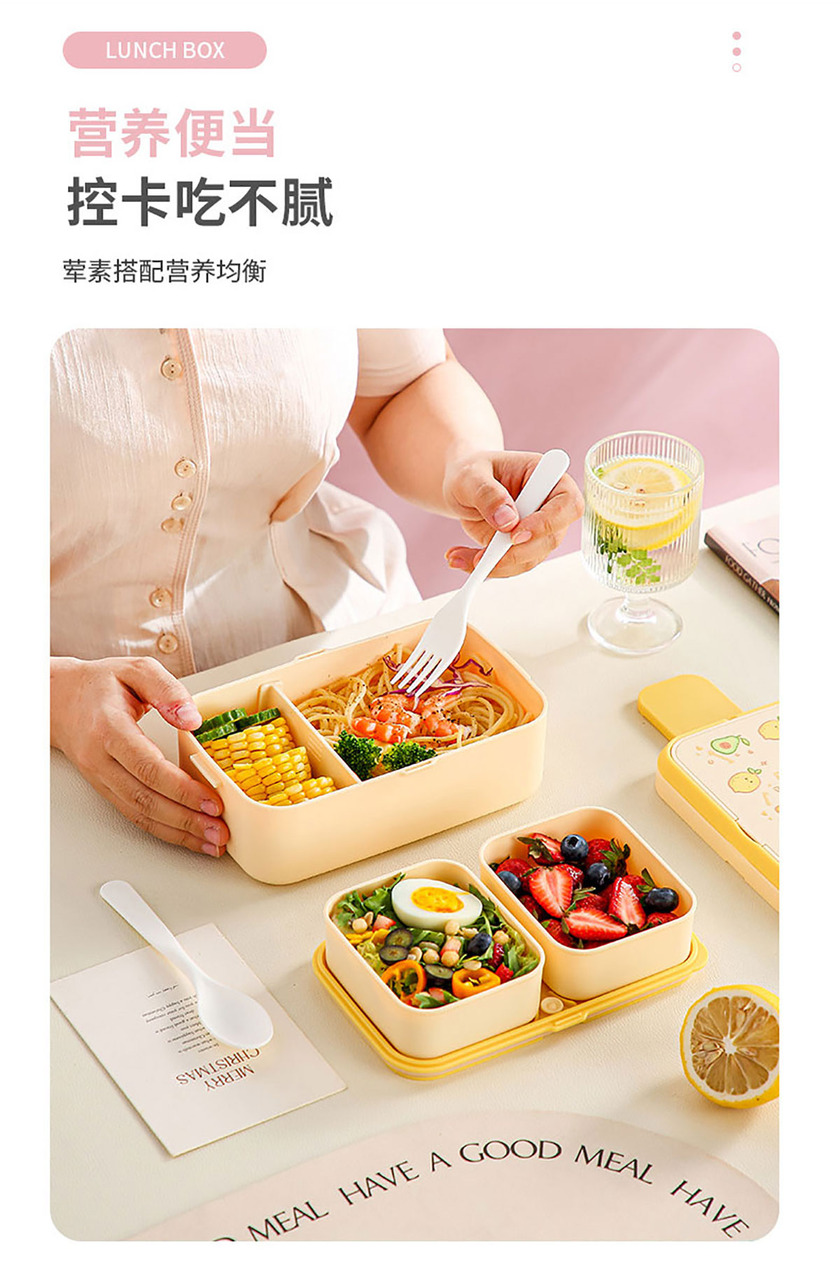 水果蜜語二合一可收納雙層飯盒(配叉勺)1200+760ml/1200+290×2ml