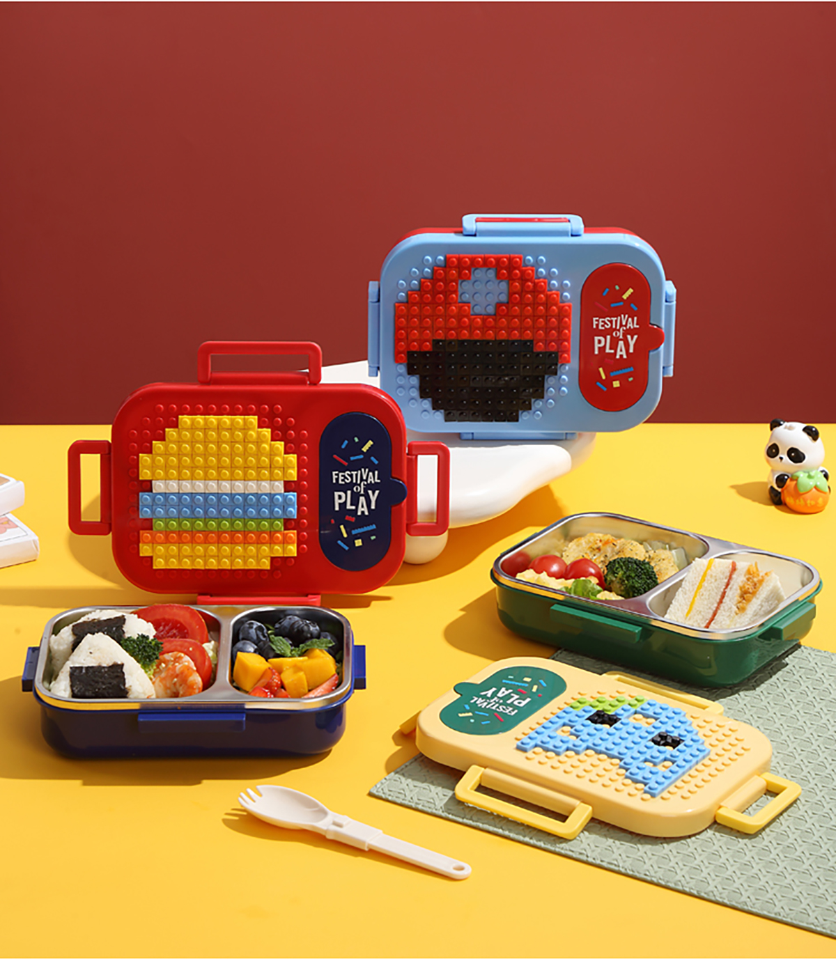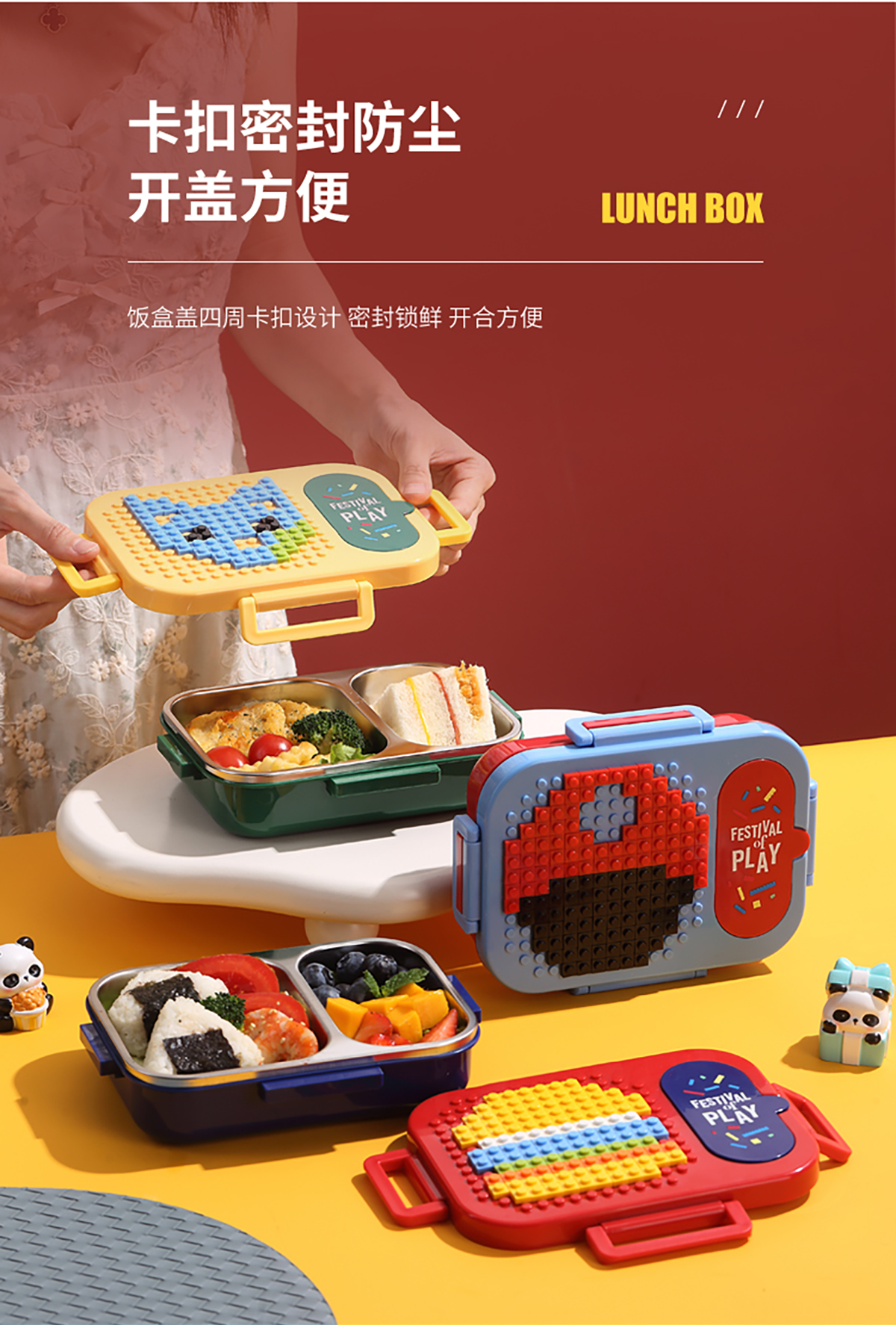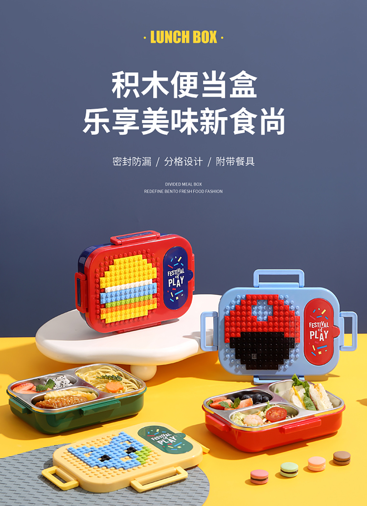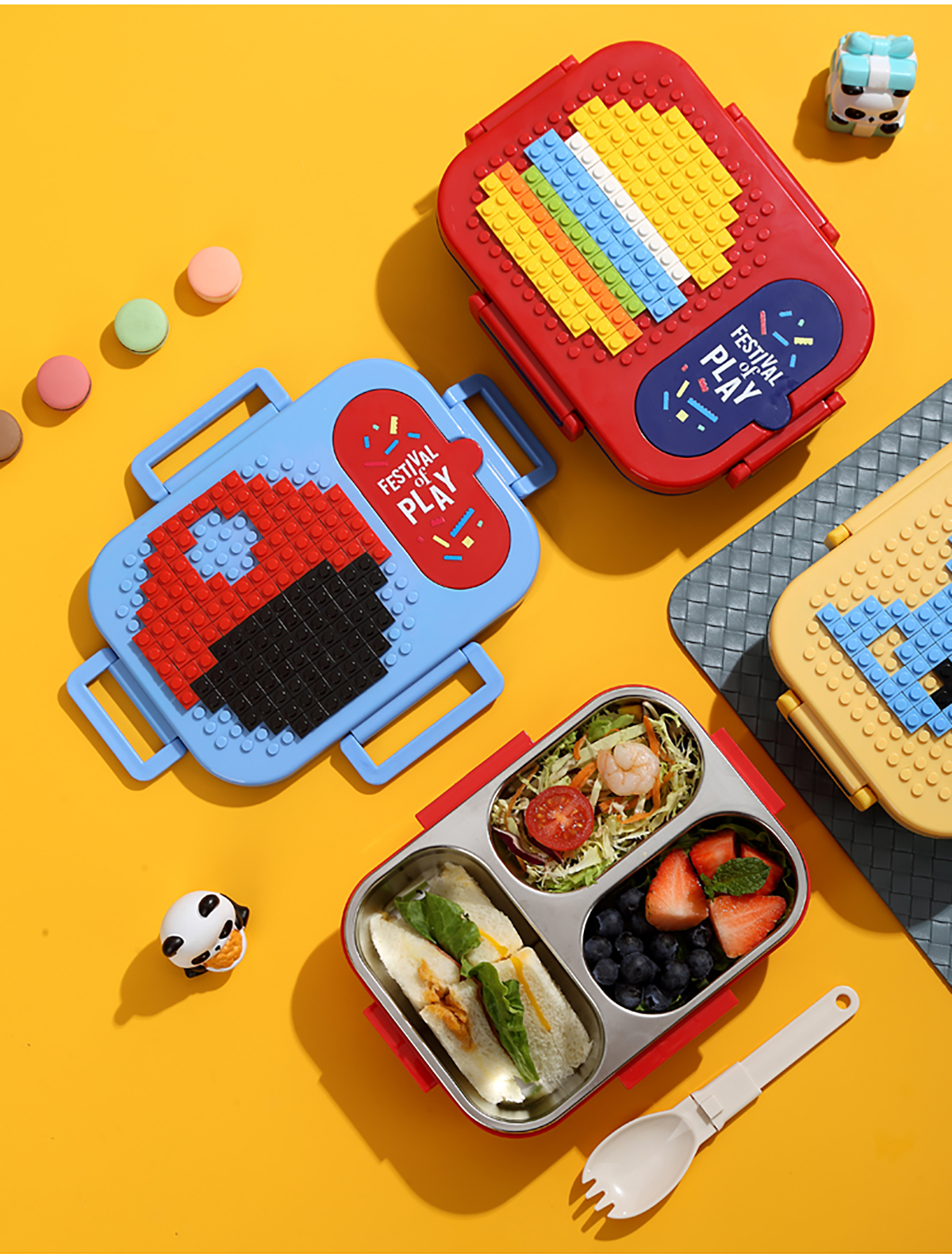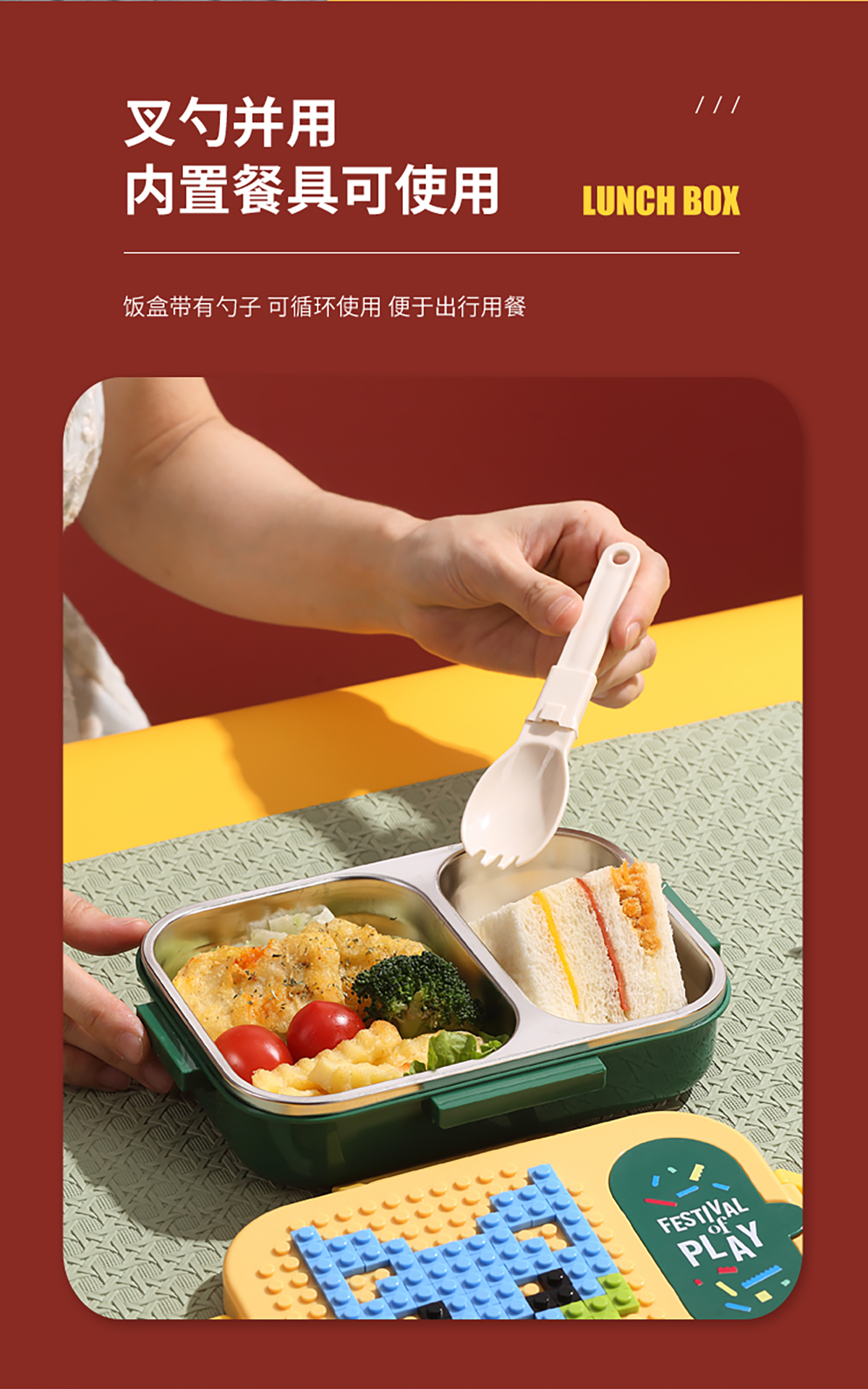 600ml 獨(dú)立密封積木不銹鋼餐盒2格/3格 (配PP折疊湯勺)