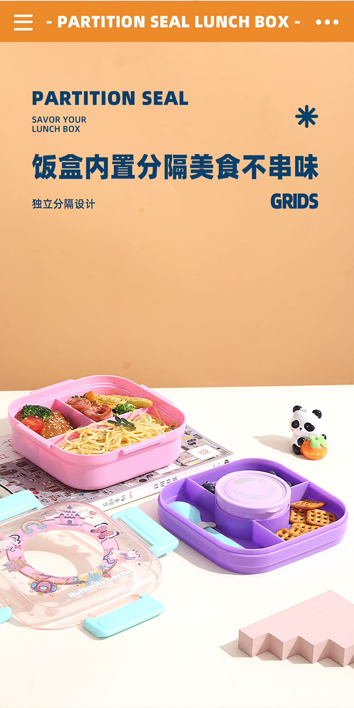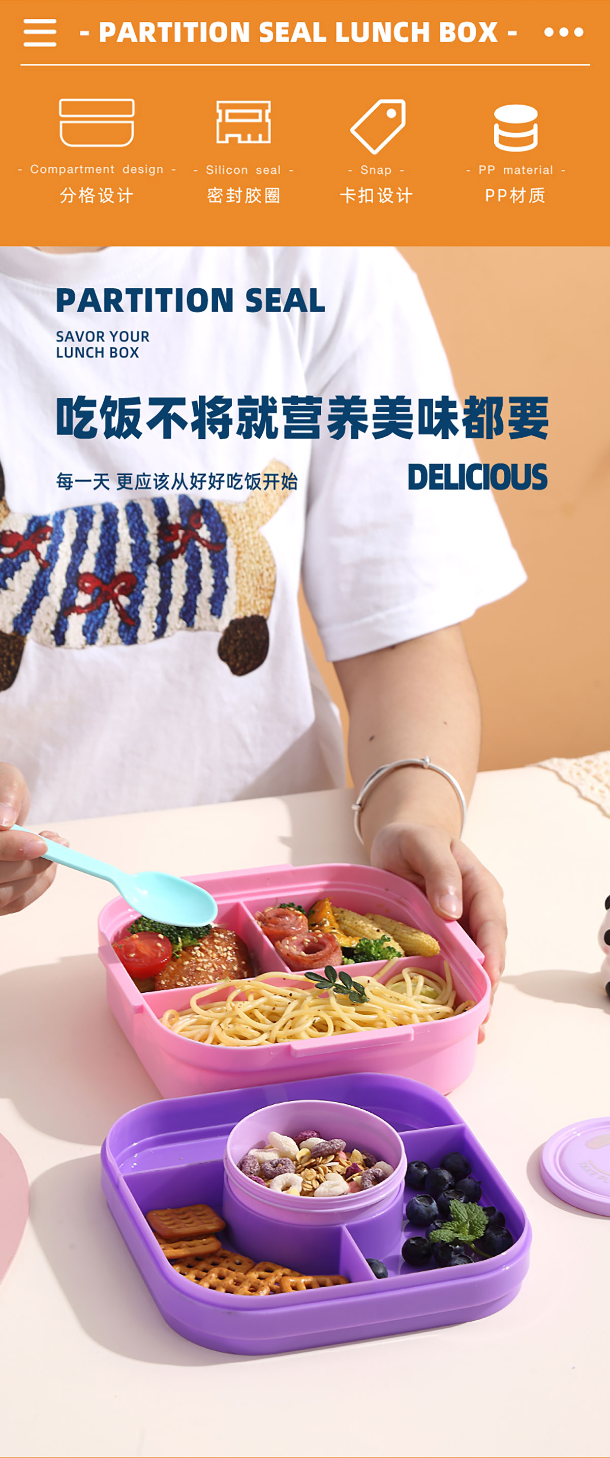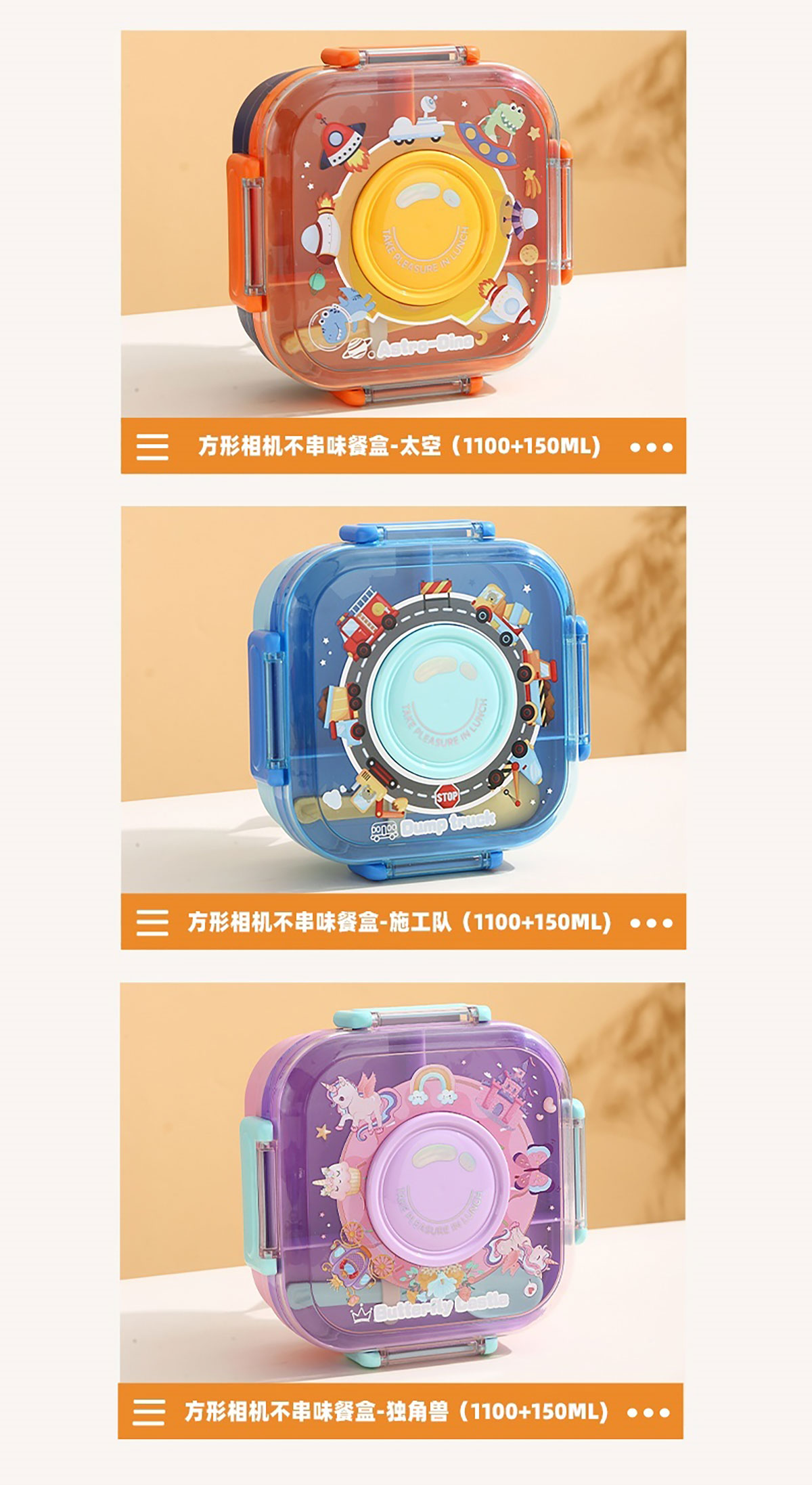 相機不串味餐盒(方形塑料三格1100ml+碗150ml+PP勺)