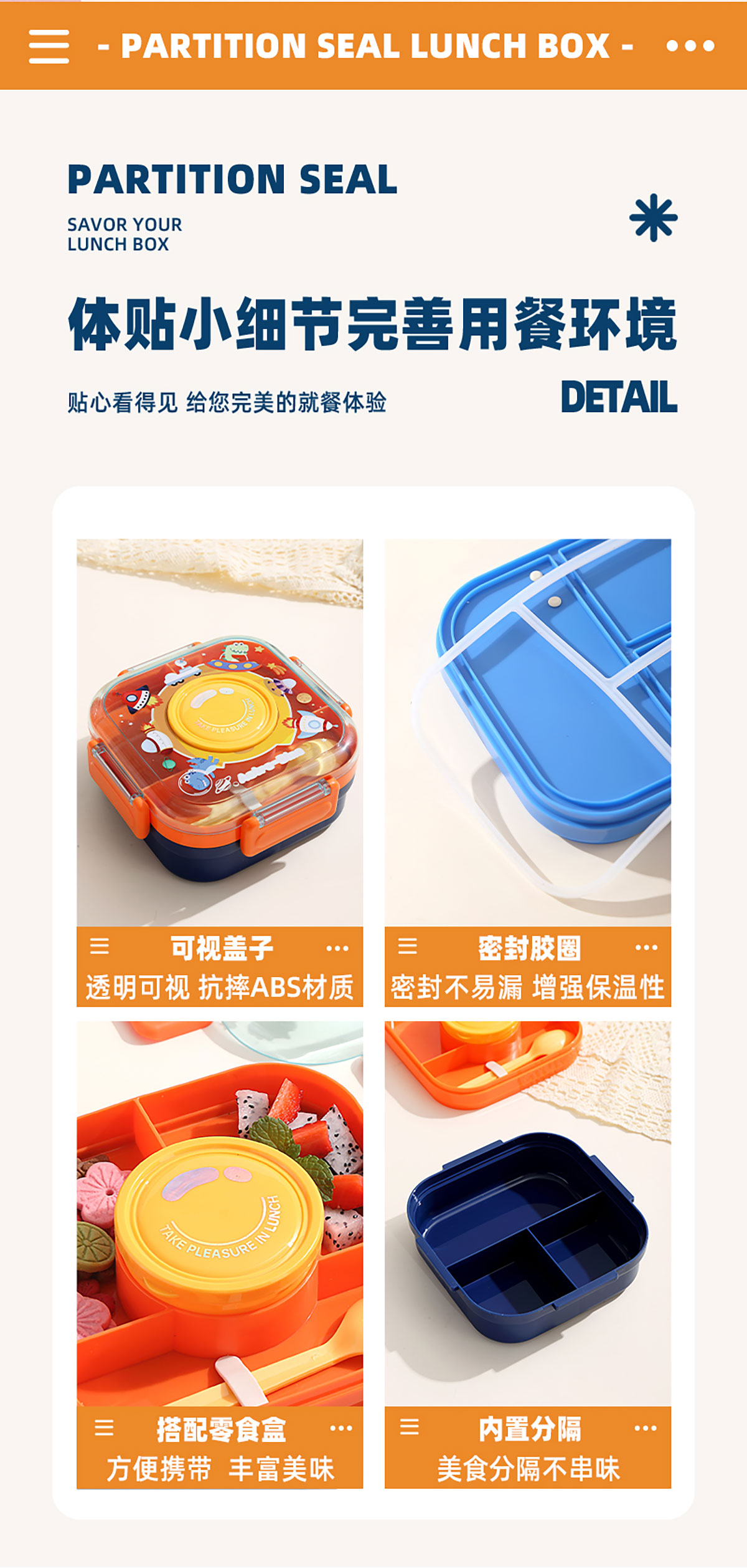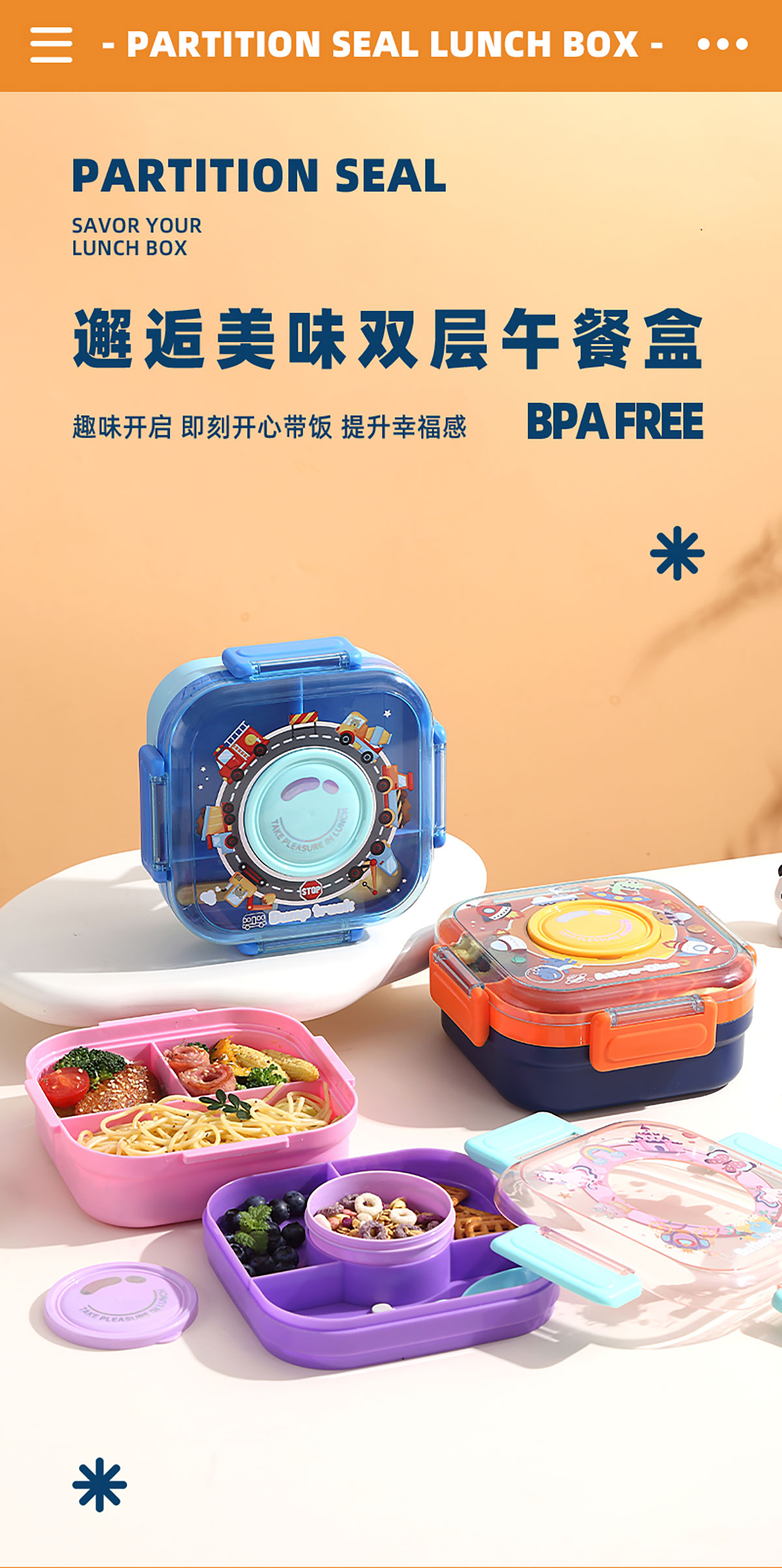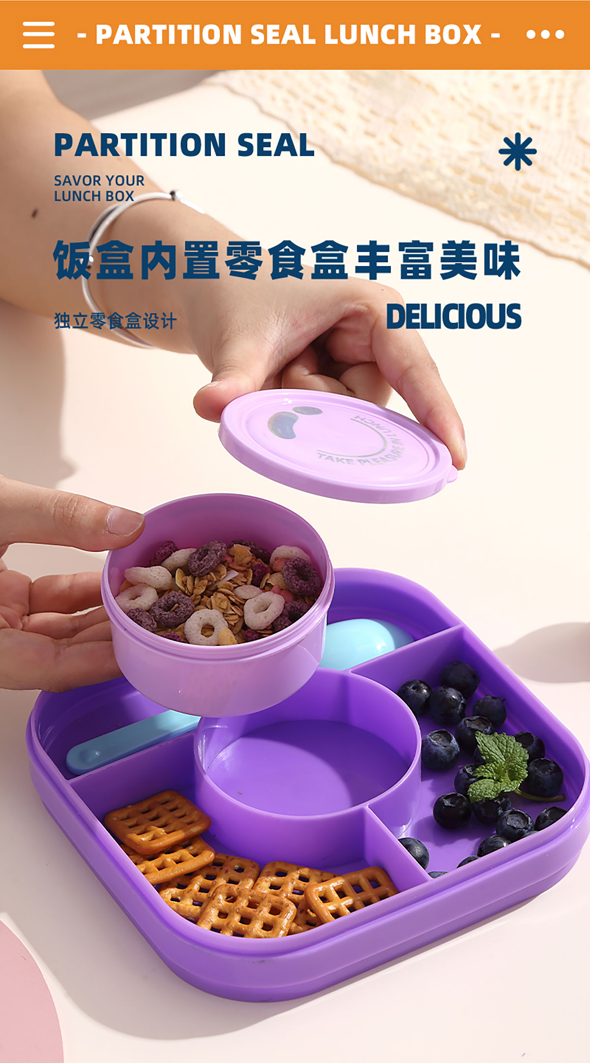相機不串味餐盒(方形塑料三格1100ml+碗150ml+PP勺)