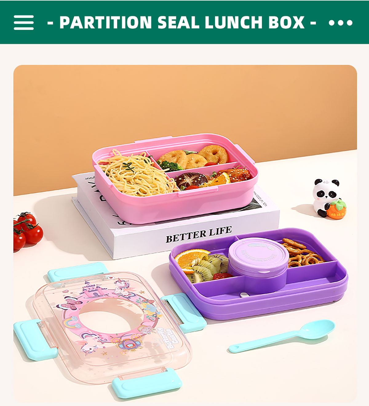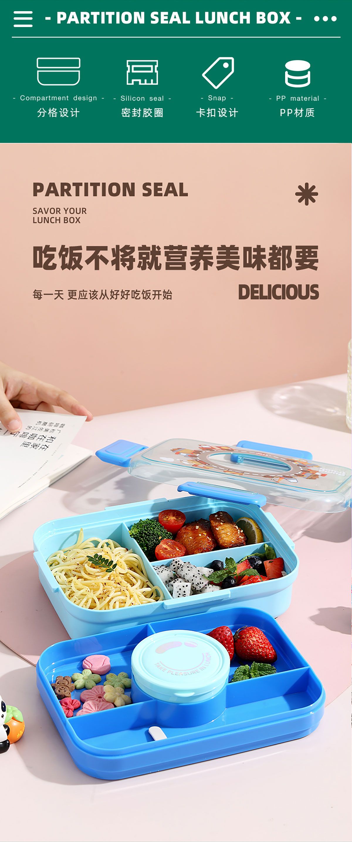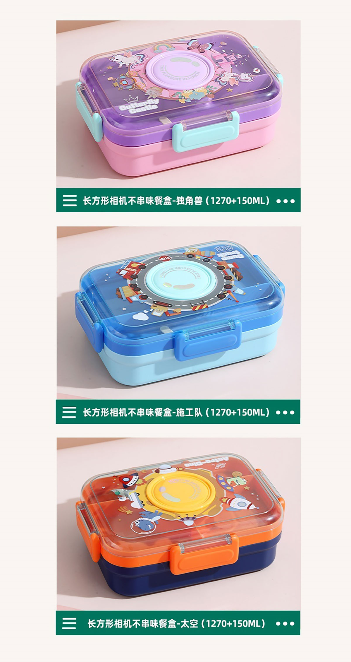相機(jī)不串味餐盒(長(zhǎng)方形塑料三格1270ml+碗150ml+PP勺)