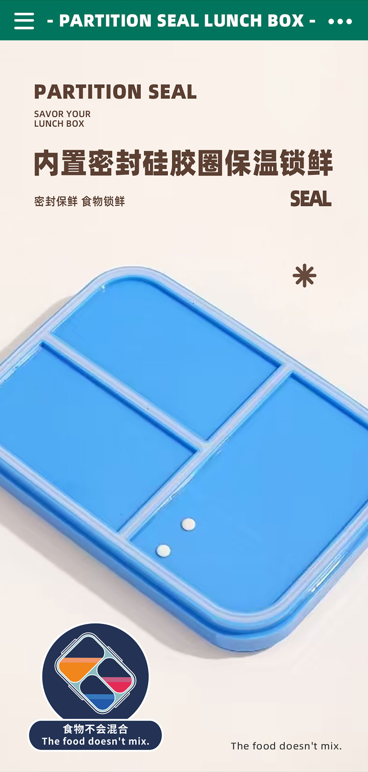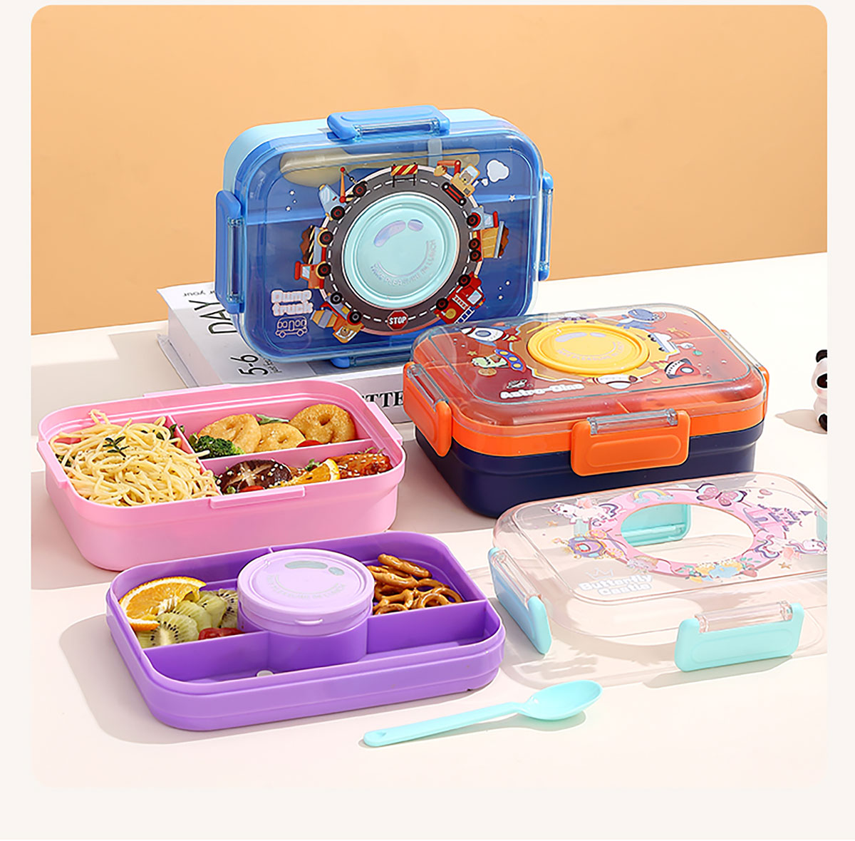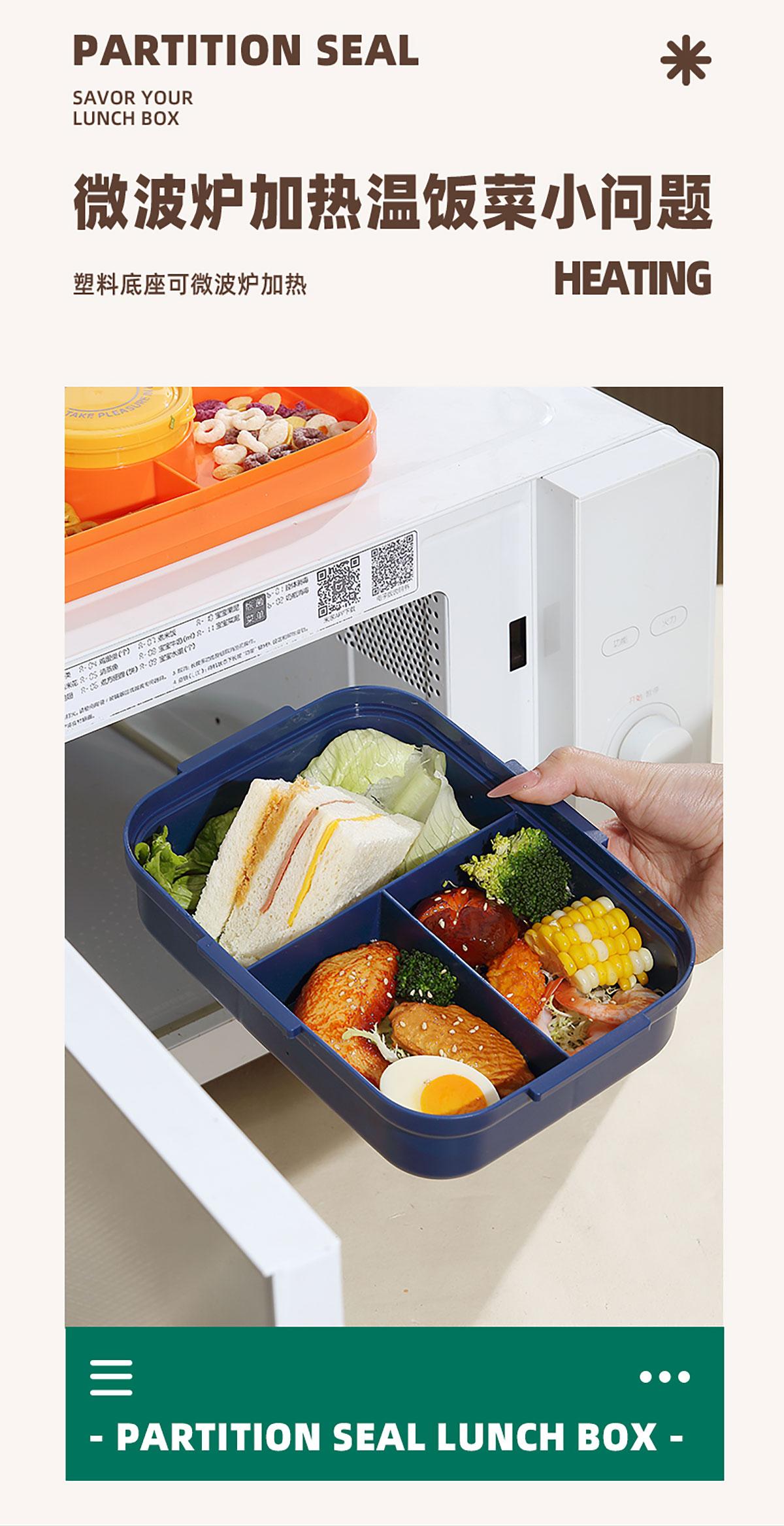 相機(jī)不串味餐盒(長(zhǎng)方形塑料三格1270ml+碗150ml+PP勺)