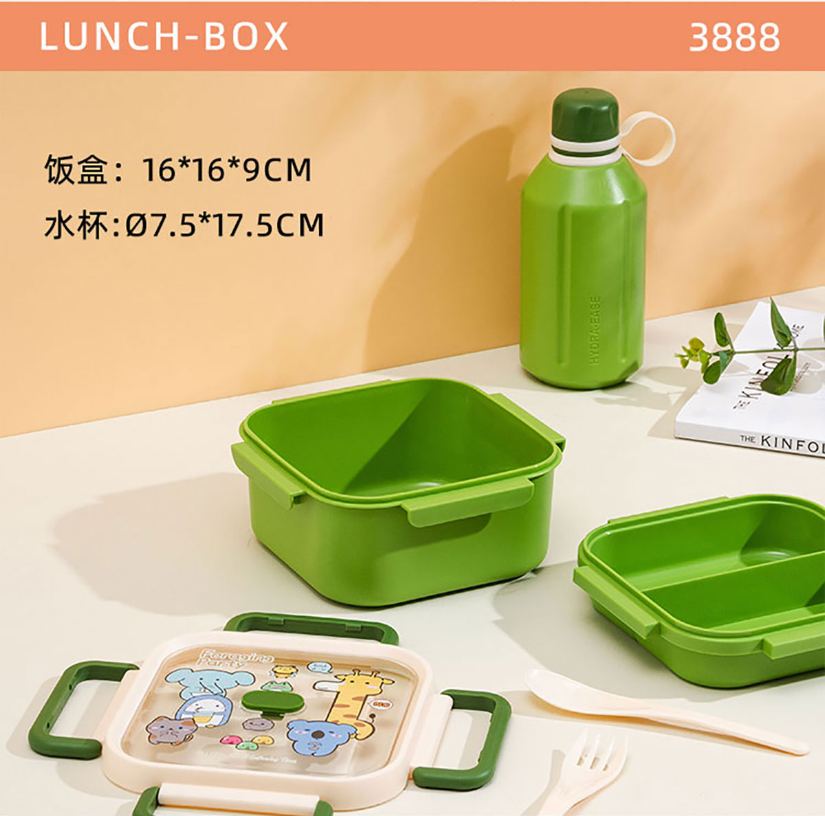 ZY-3888:飯盒:160*160*90mm/1100ml 水壺:?75*175mm/500ml