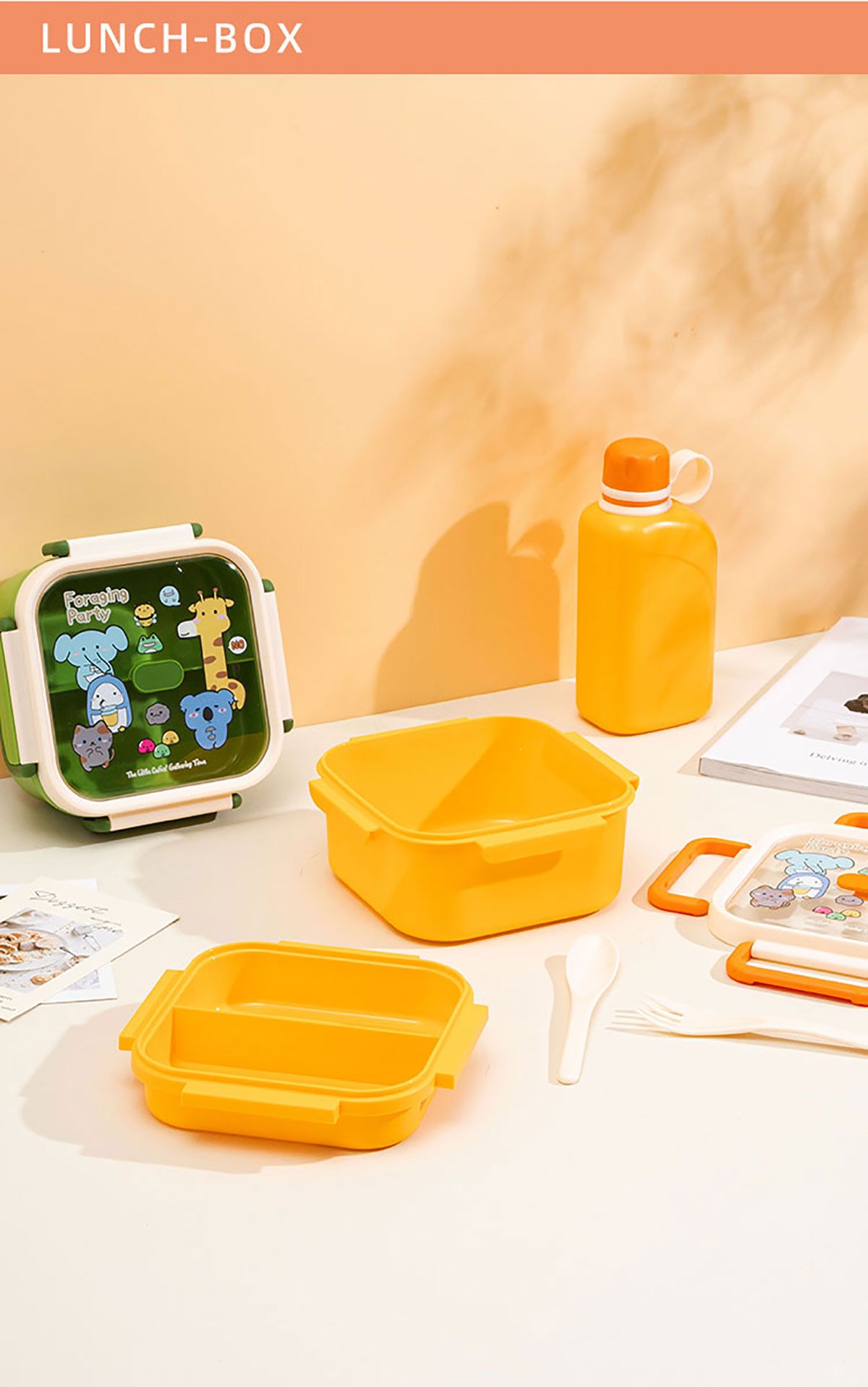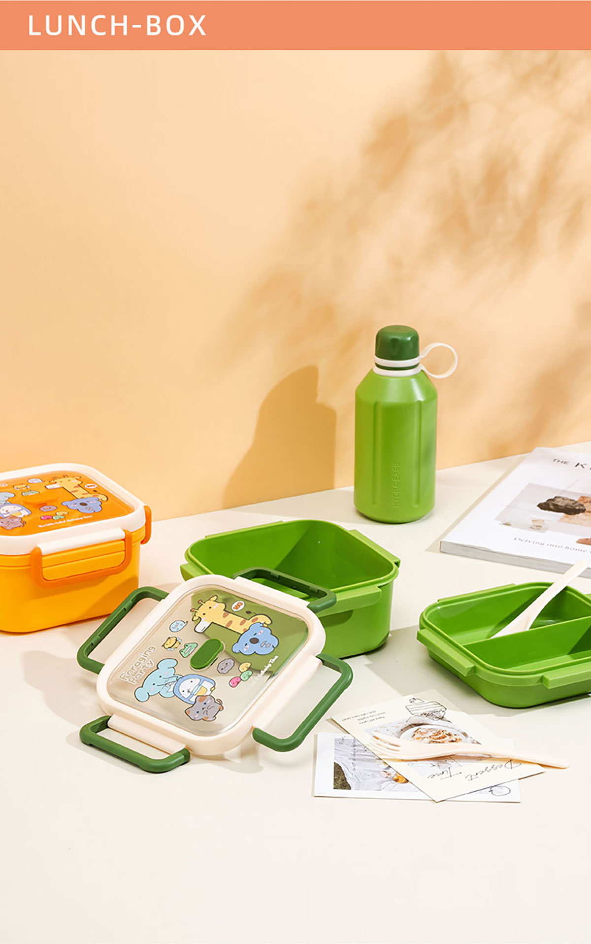 尚趣正方雙層飯盒(1100ml)/+圓形/方形運動水壺(500ml)