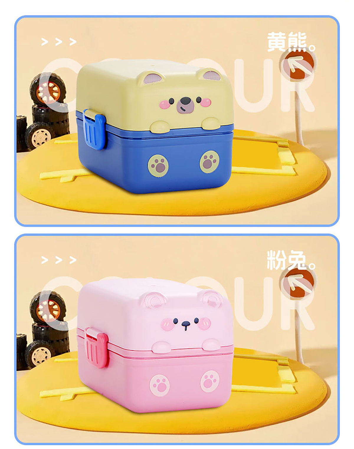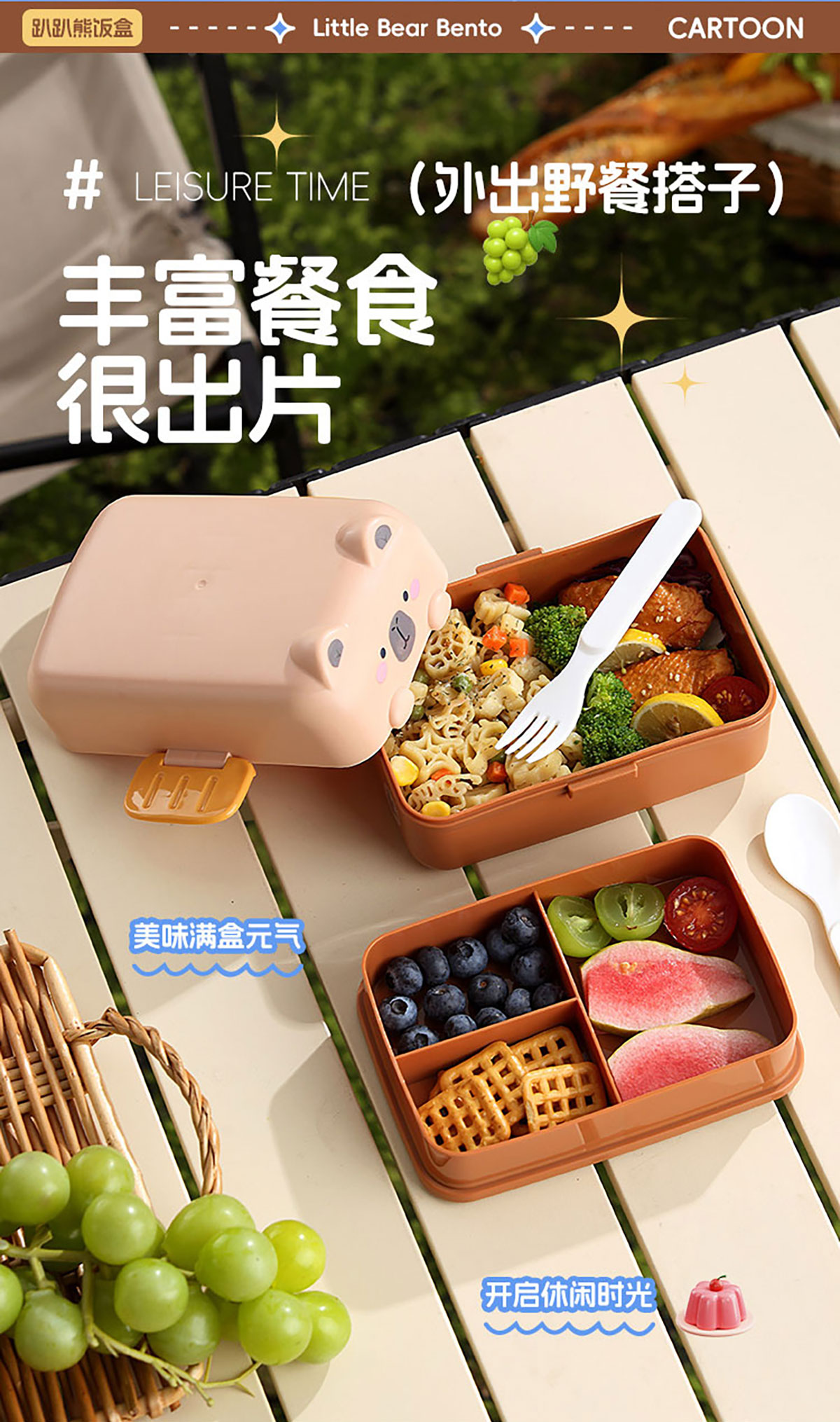 趴趴熊雙層飯盒上375ml+下800ml=1175ml