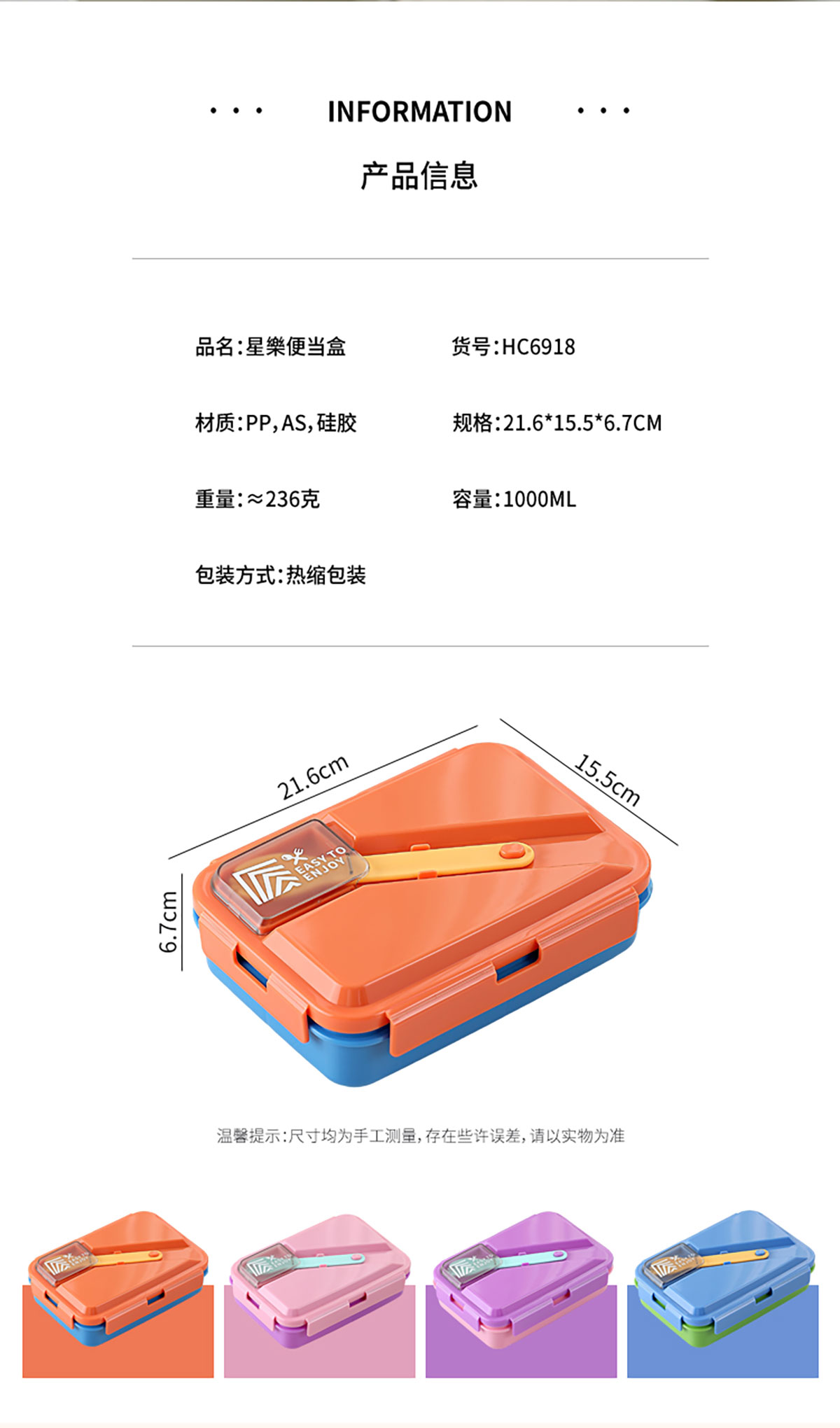 Size: 216*155*67mm/1000ml