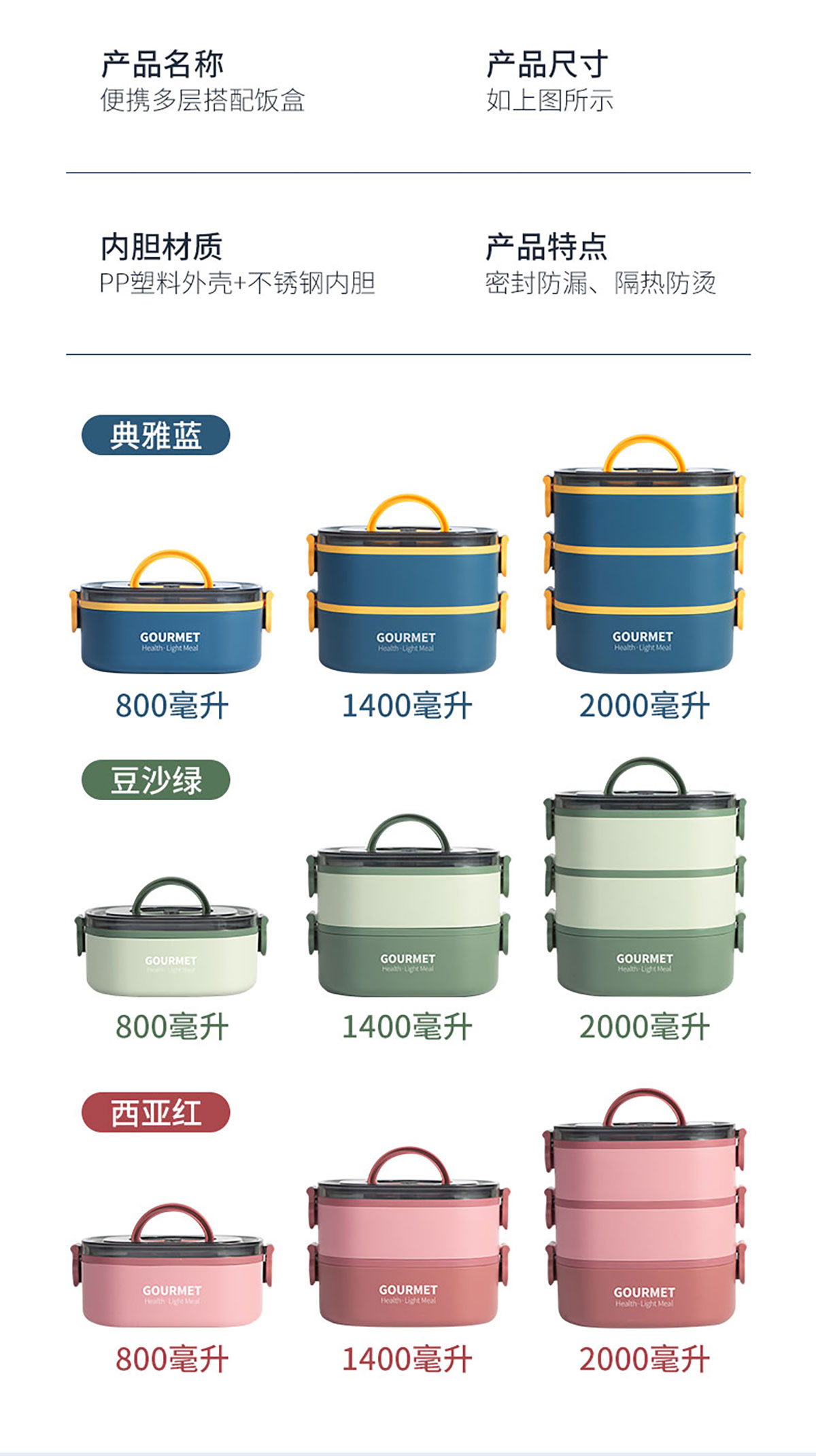 Size: SSY-A18B(單層):195*140*76mm/800ml