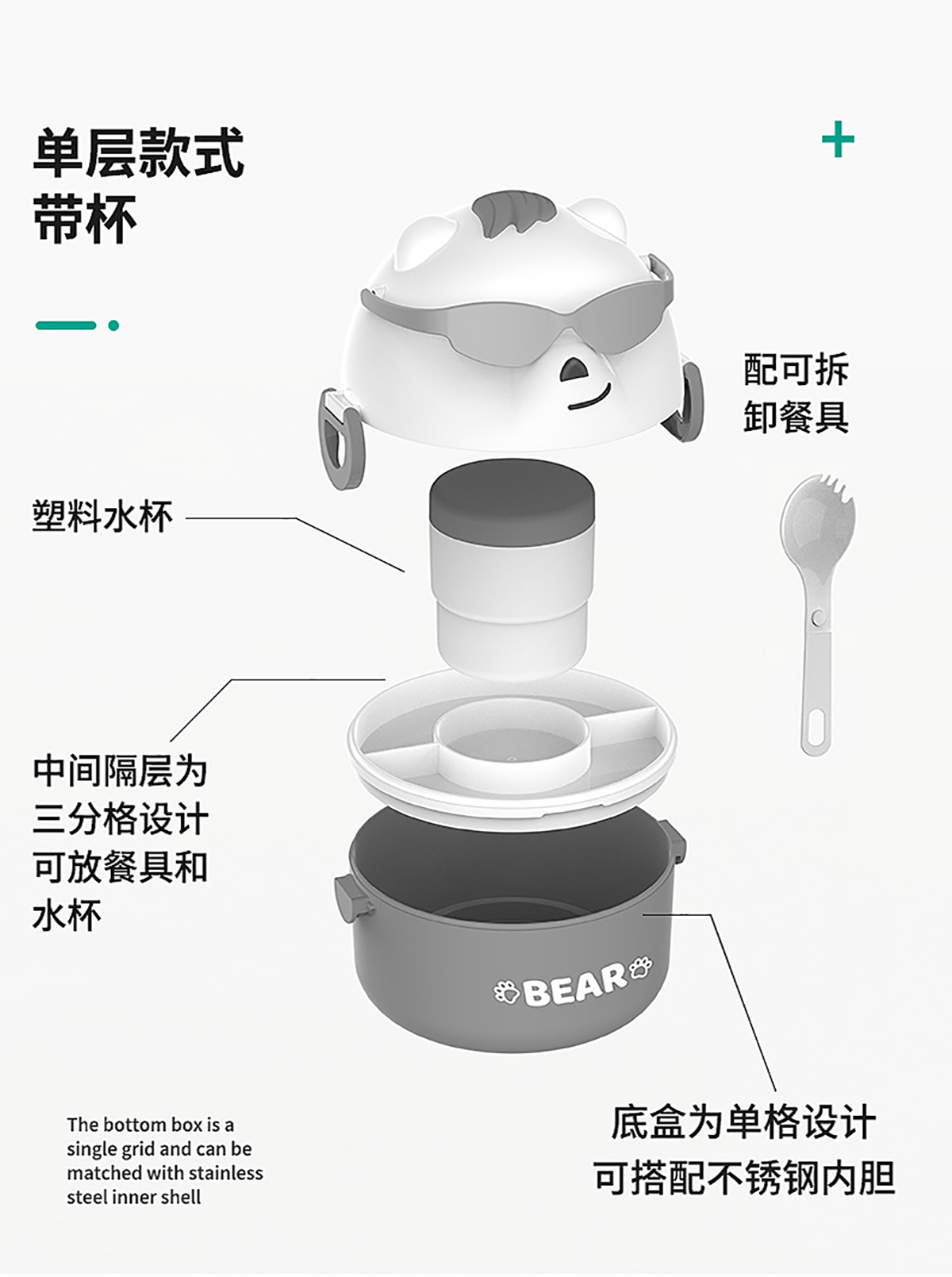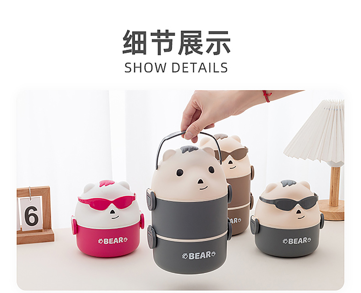 墨鏡熊單層/單層加水杯/雙層/雙層加水杯便當盒